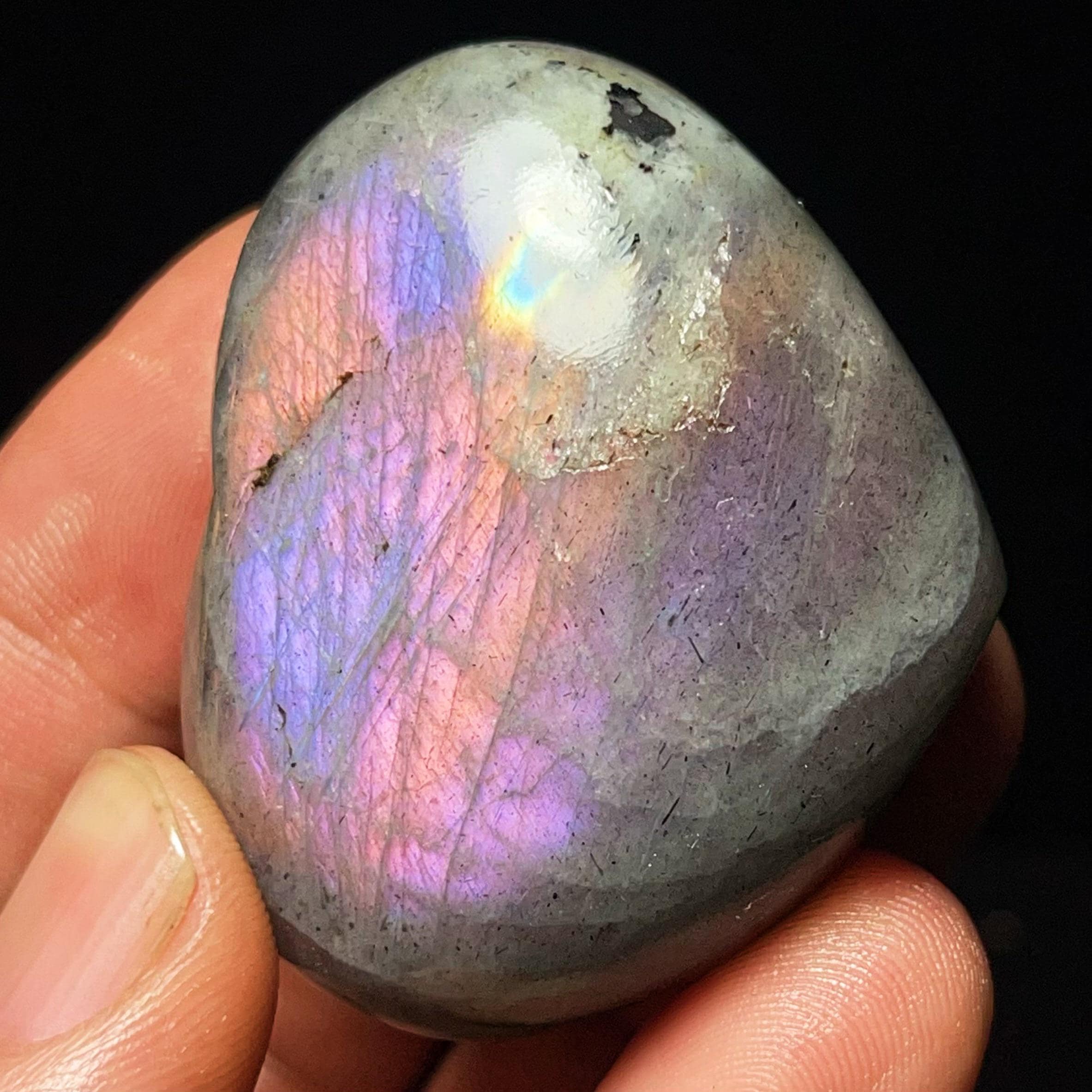 Natural Labradorite Heart: Carved Quartz Crystal, Home Decor, Reiki Healing L7159