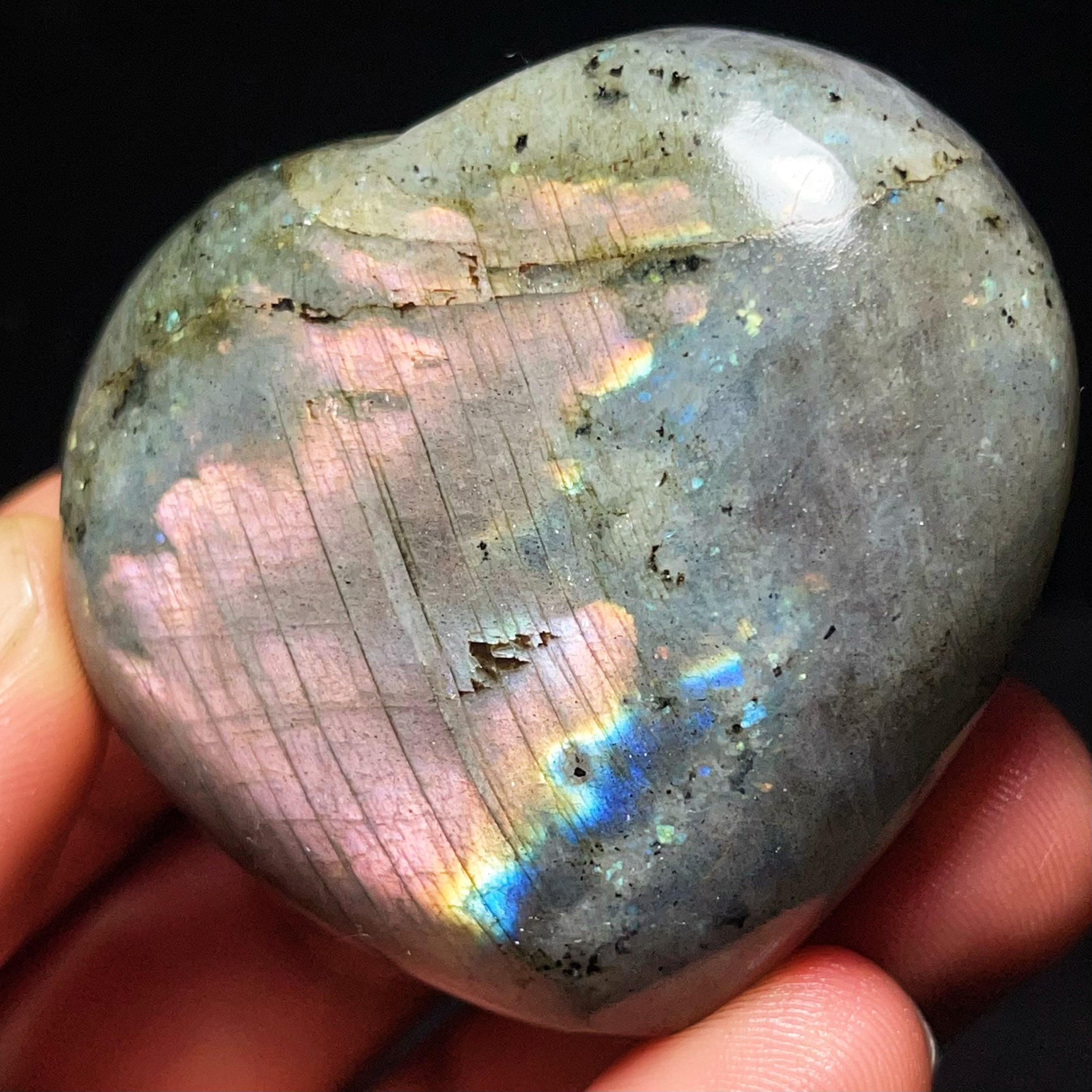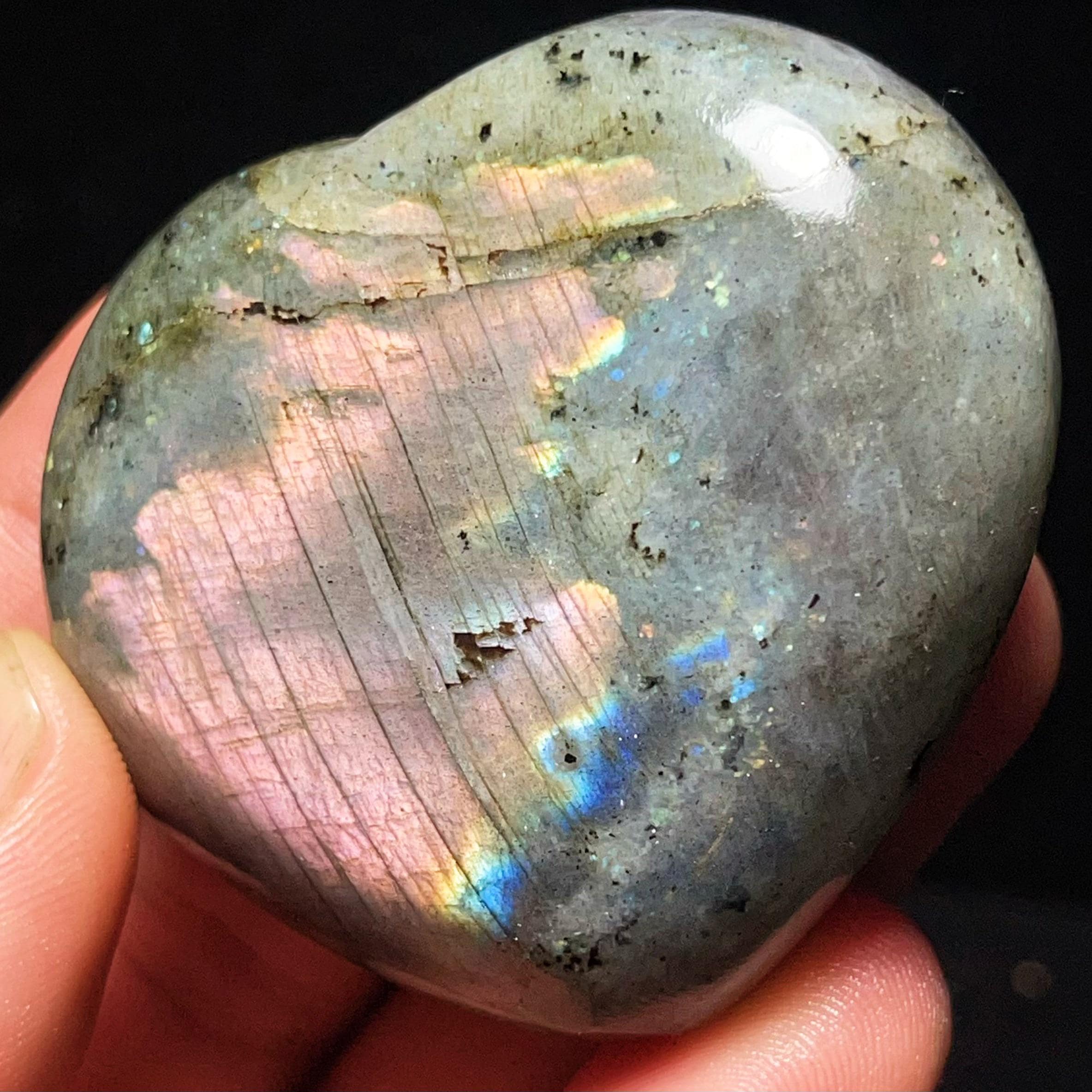 Natural Labradorite Heart: Carved Quartz Crystal, Home Decor, Reiki Healing L7165