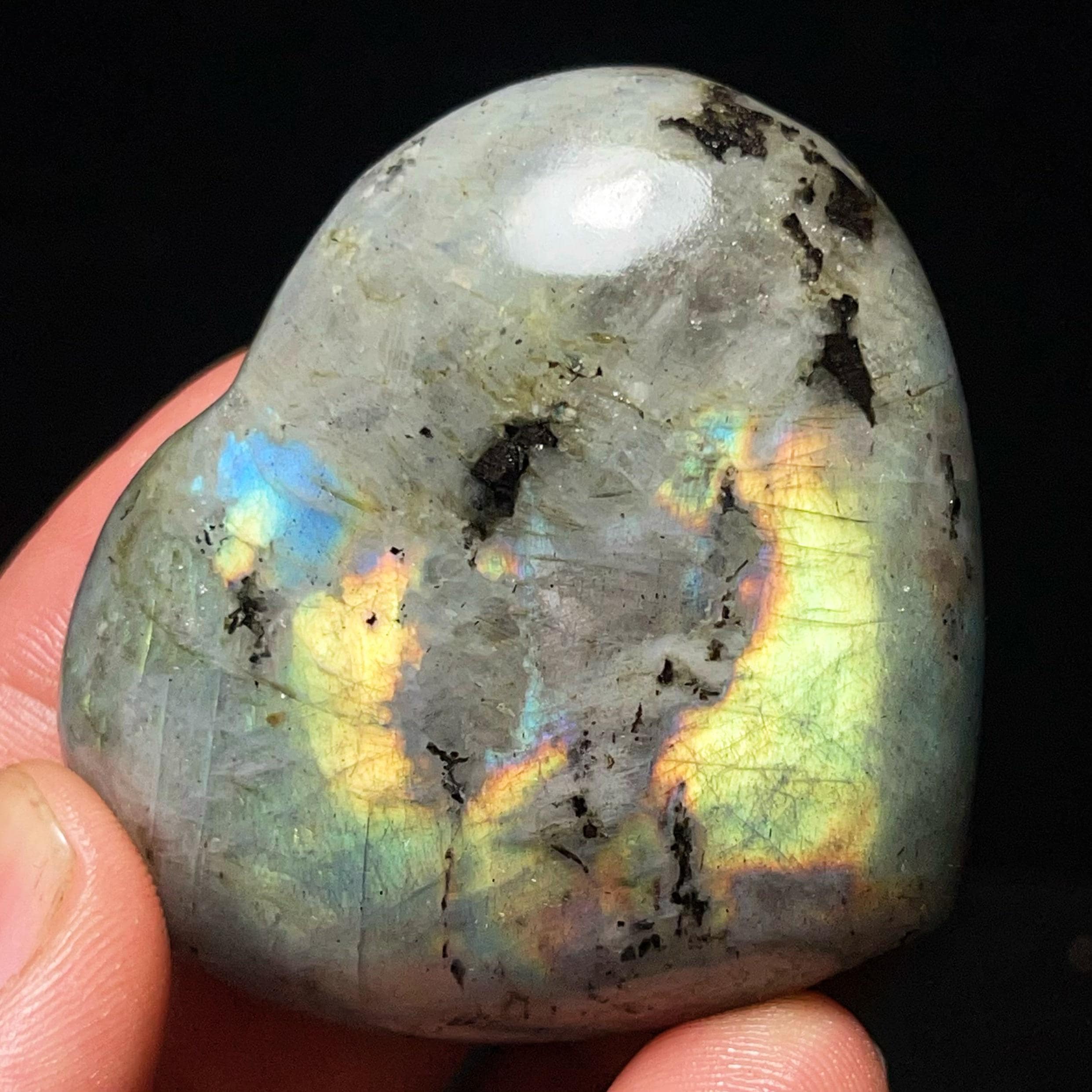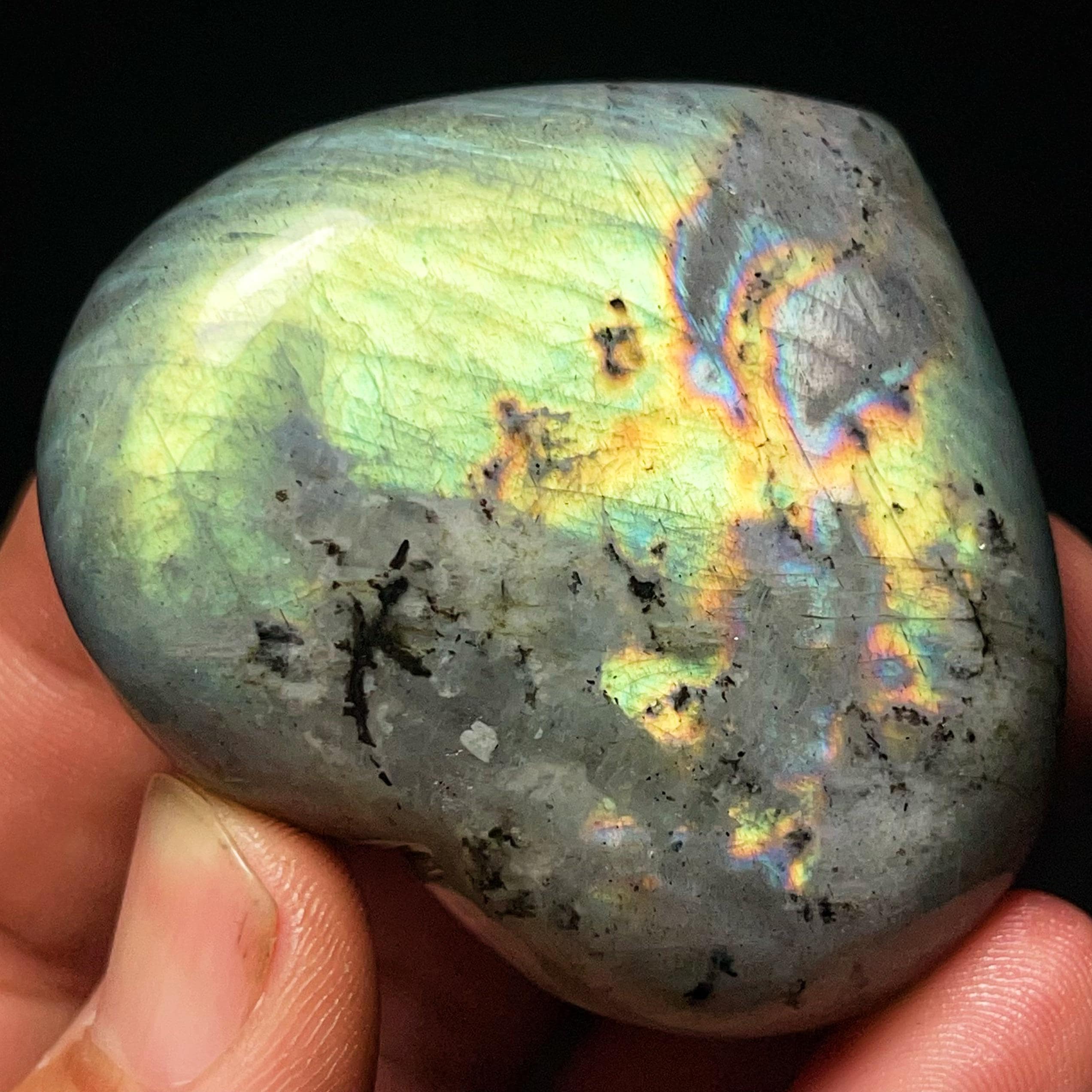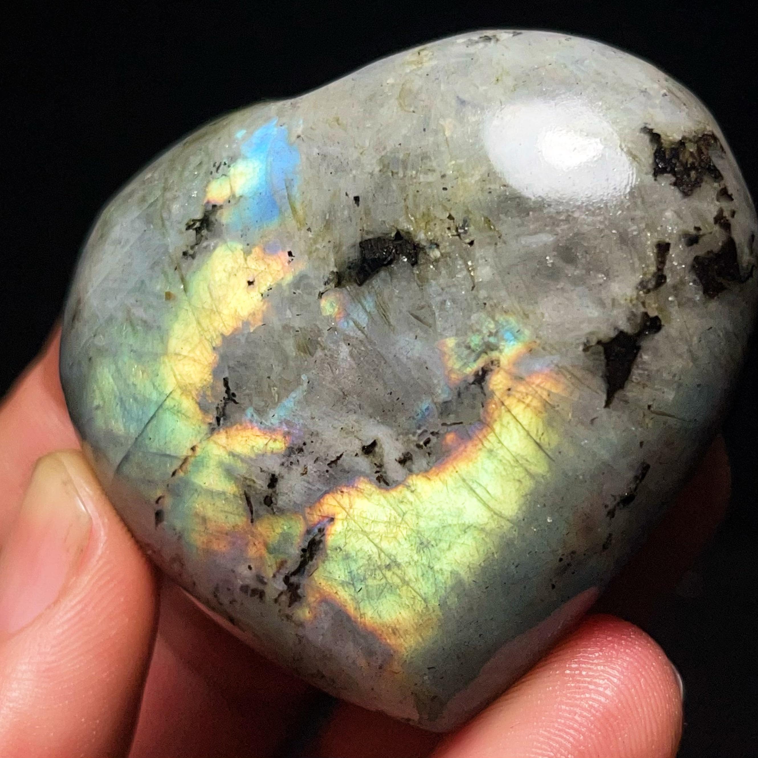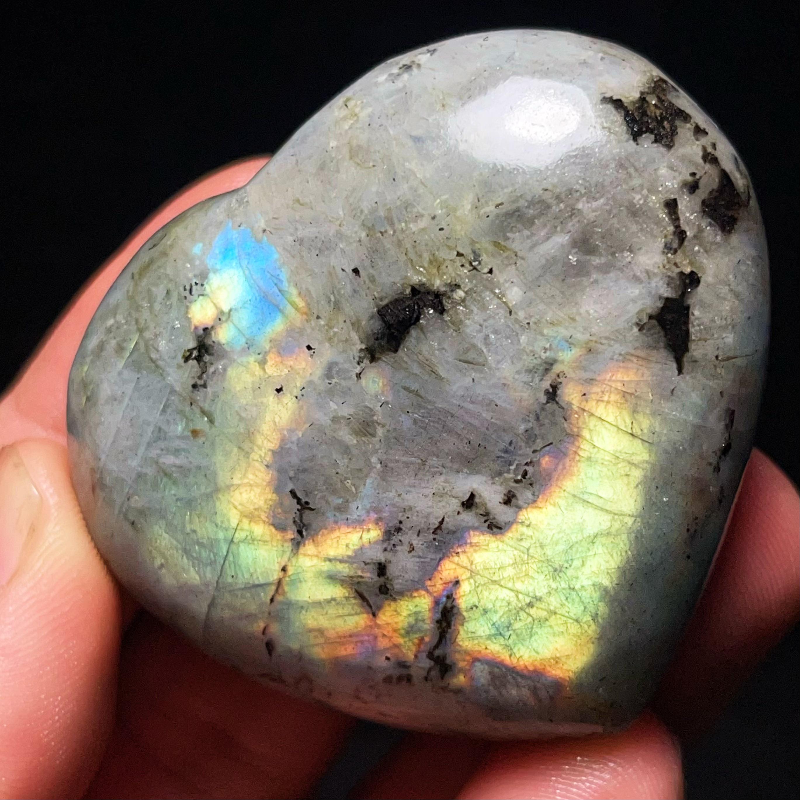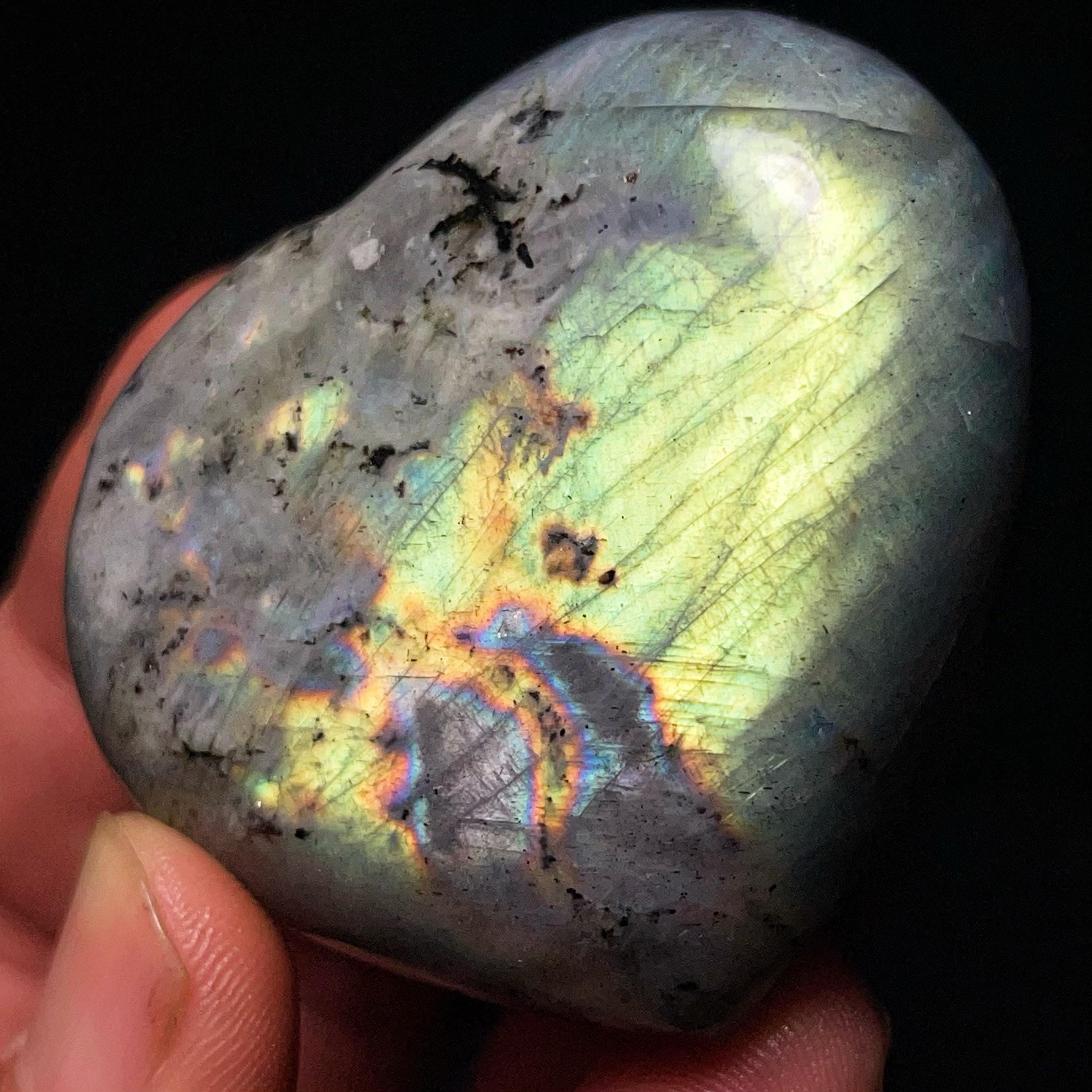 Natural Labradorite Heart Crystal: Polished Gemstone Palm Stone L7166