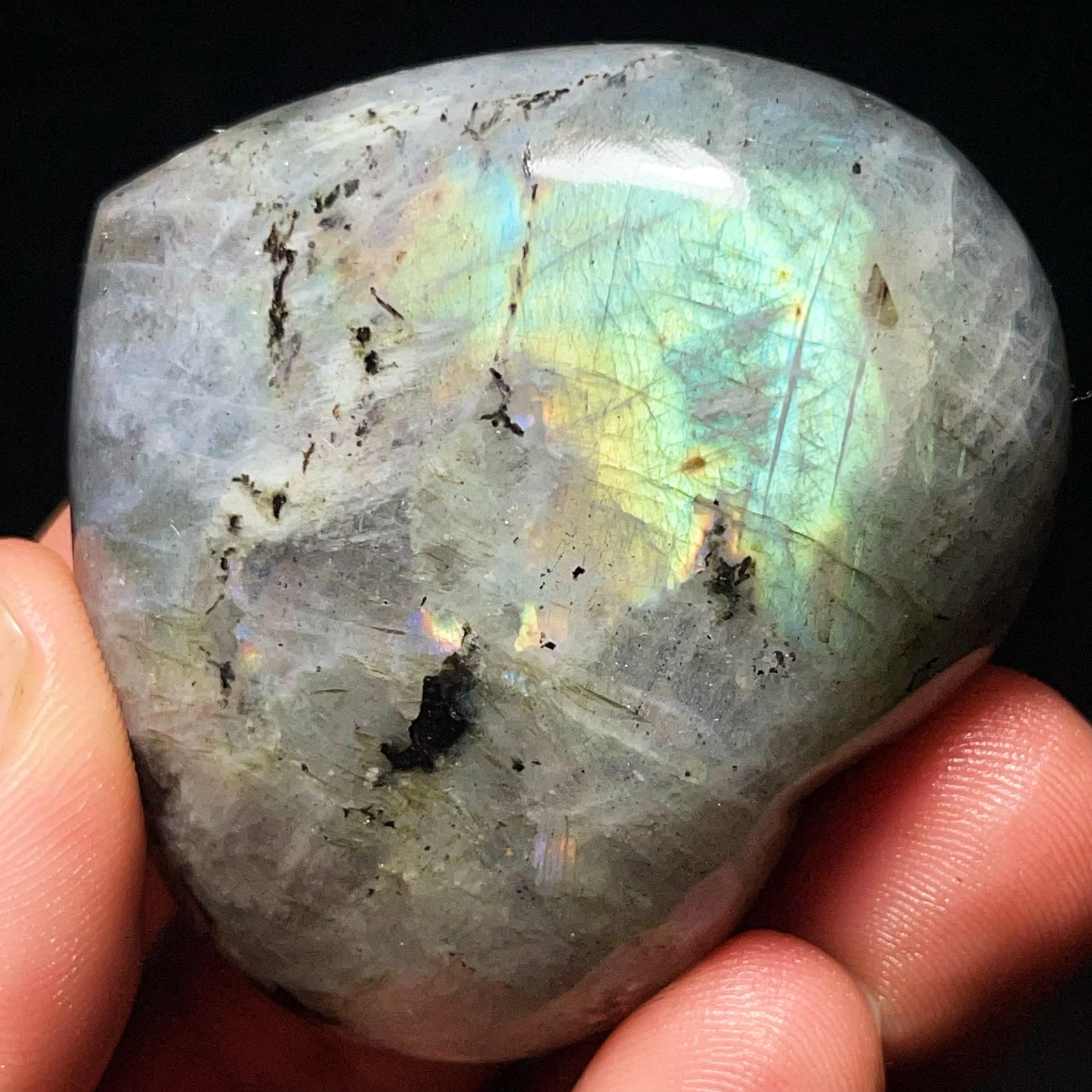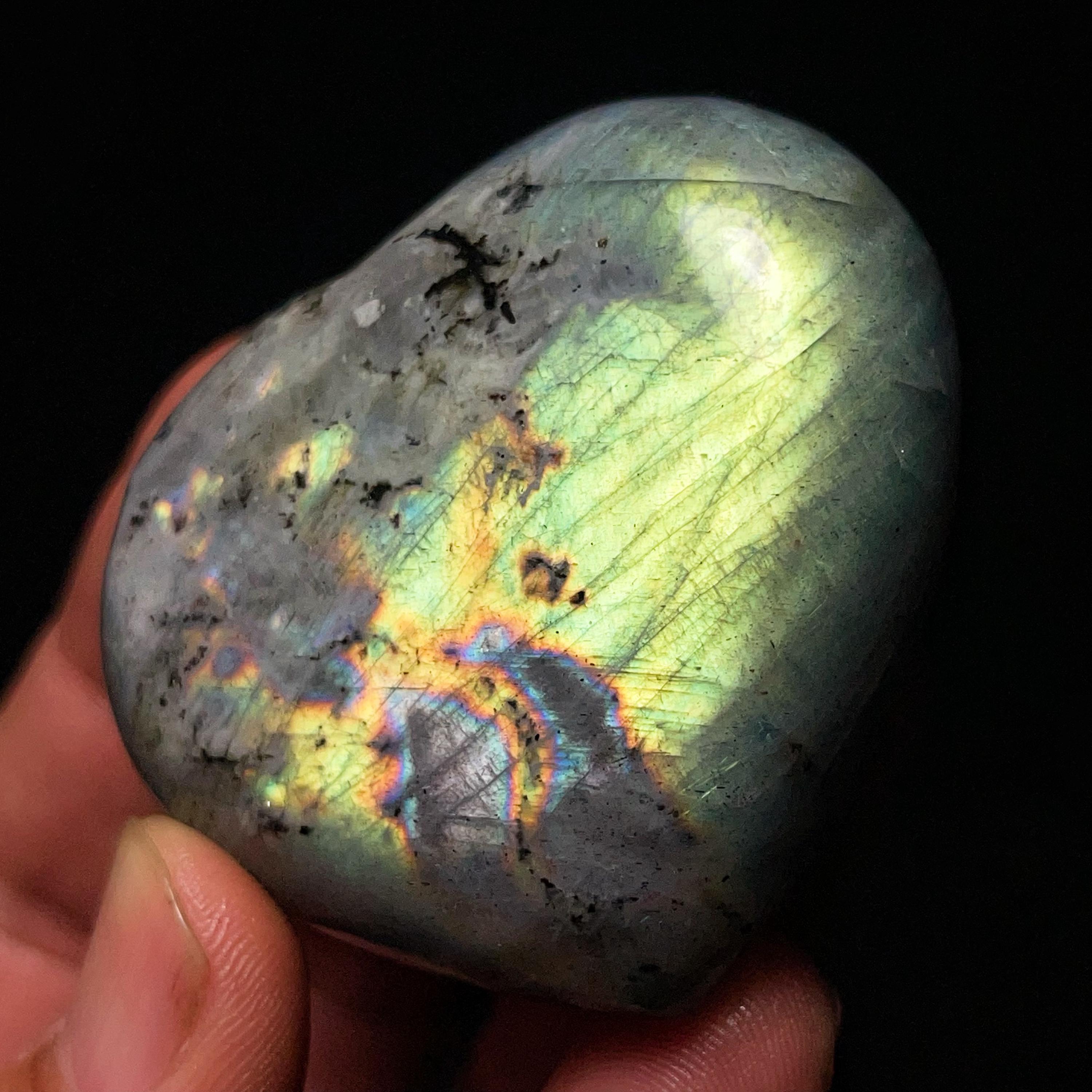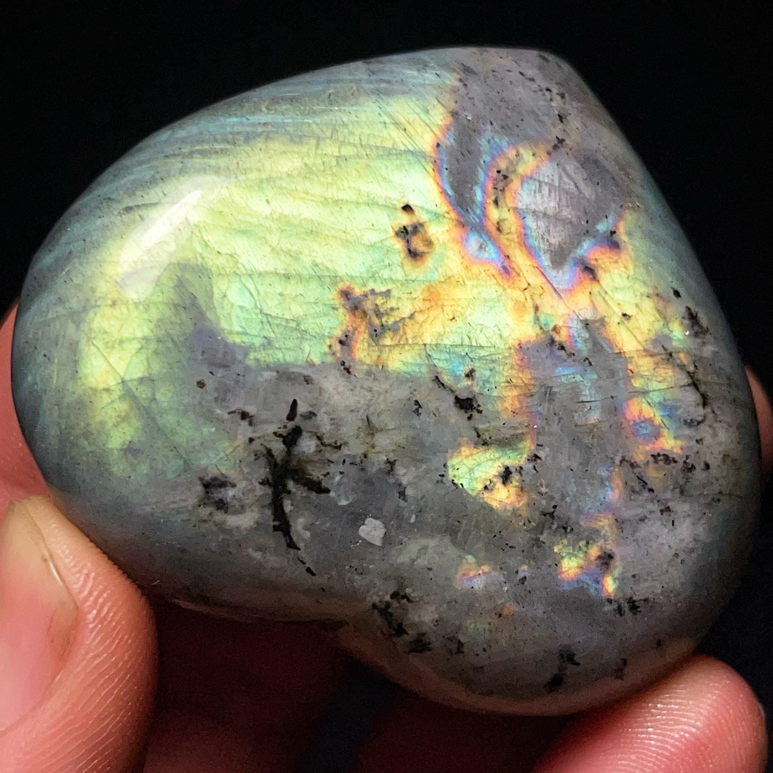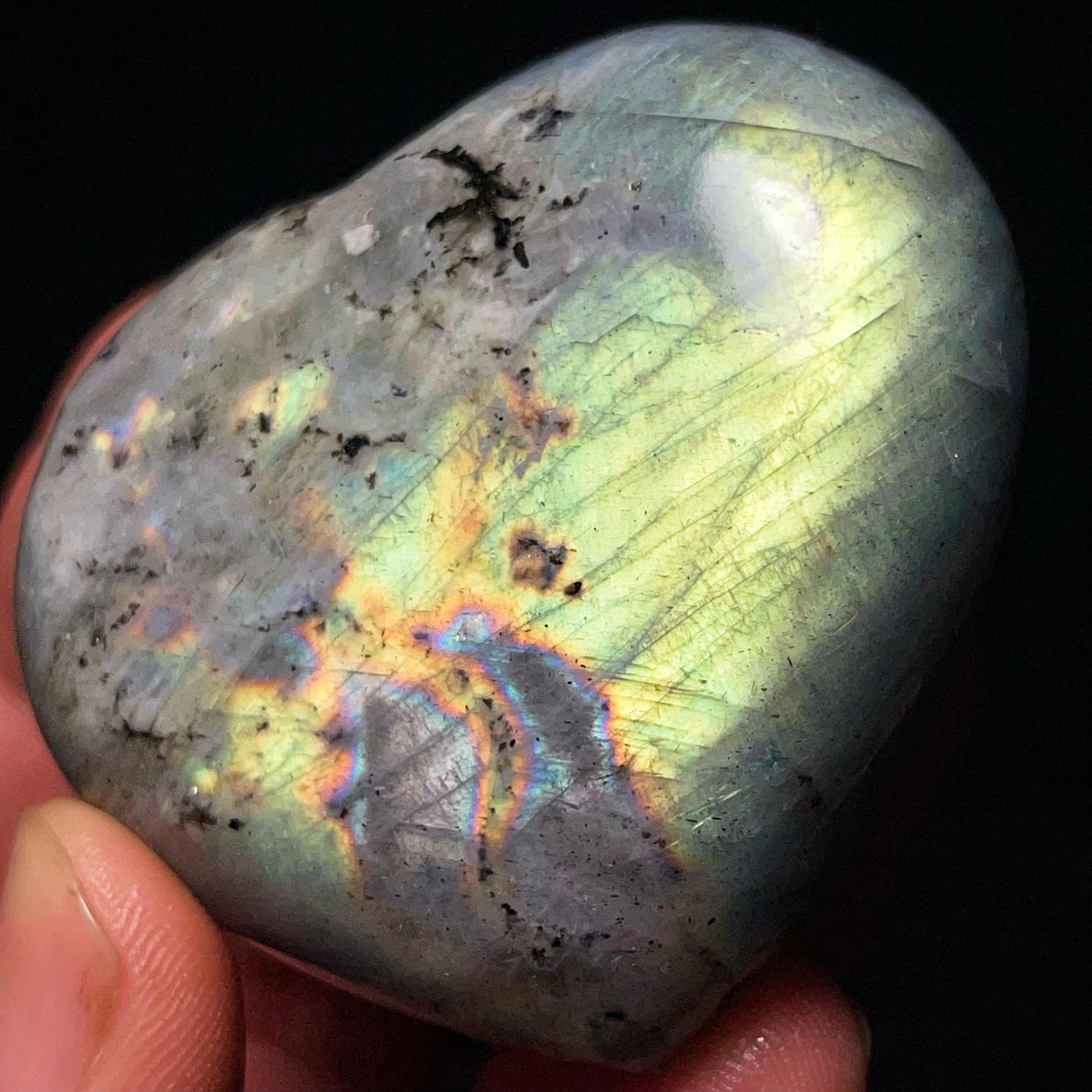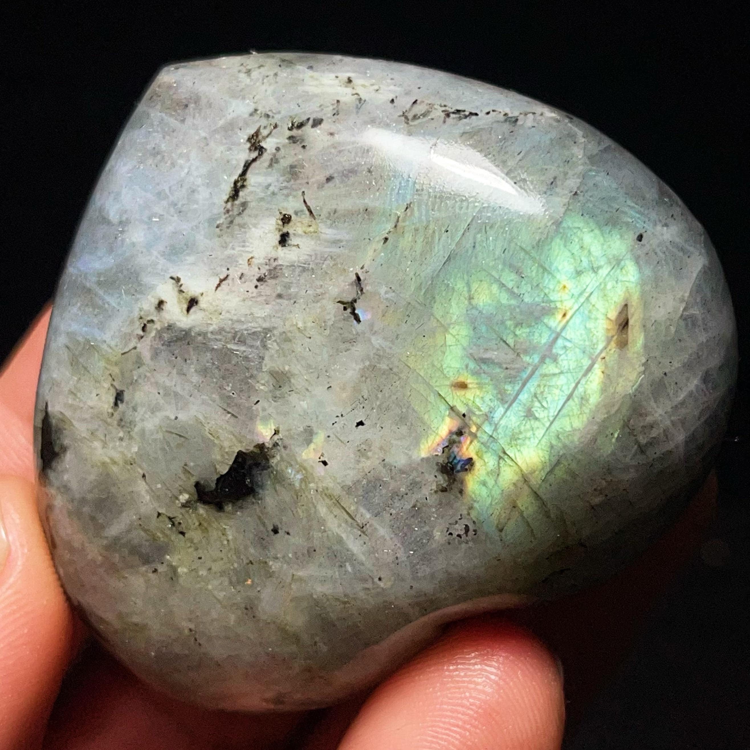 Natural Labradorite Heart Crystal: Polished Gemstone Palm Stone L7166
