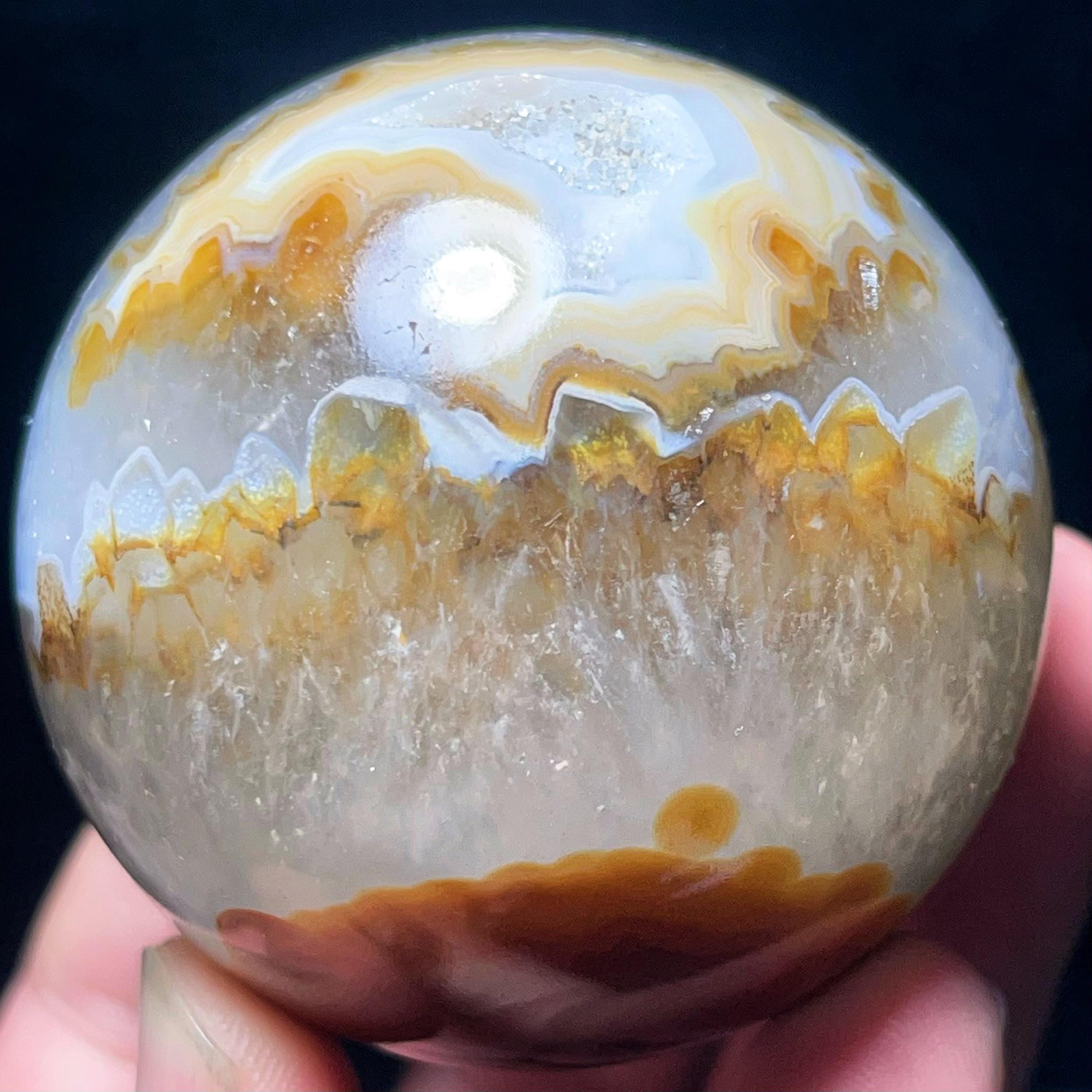 Natural Agate cave crystal cave sphere Reiki Chakra Healing L7327