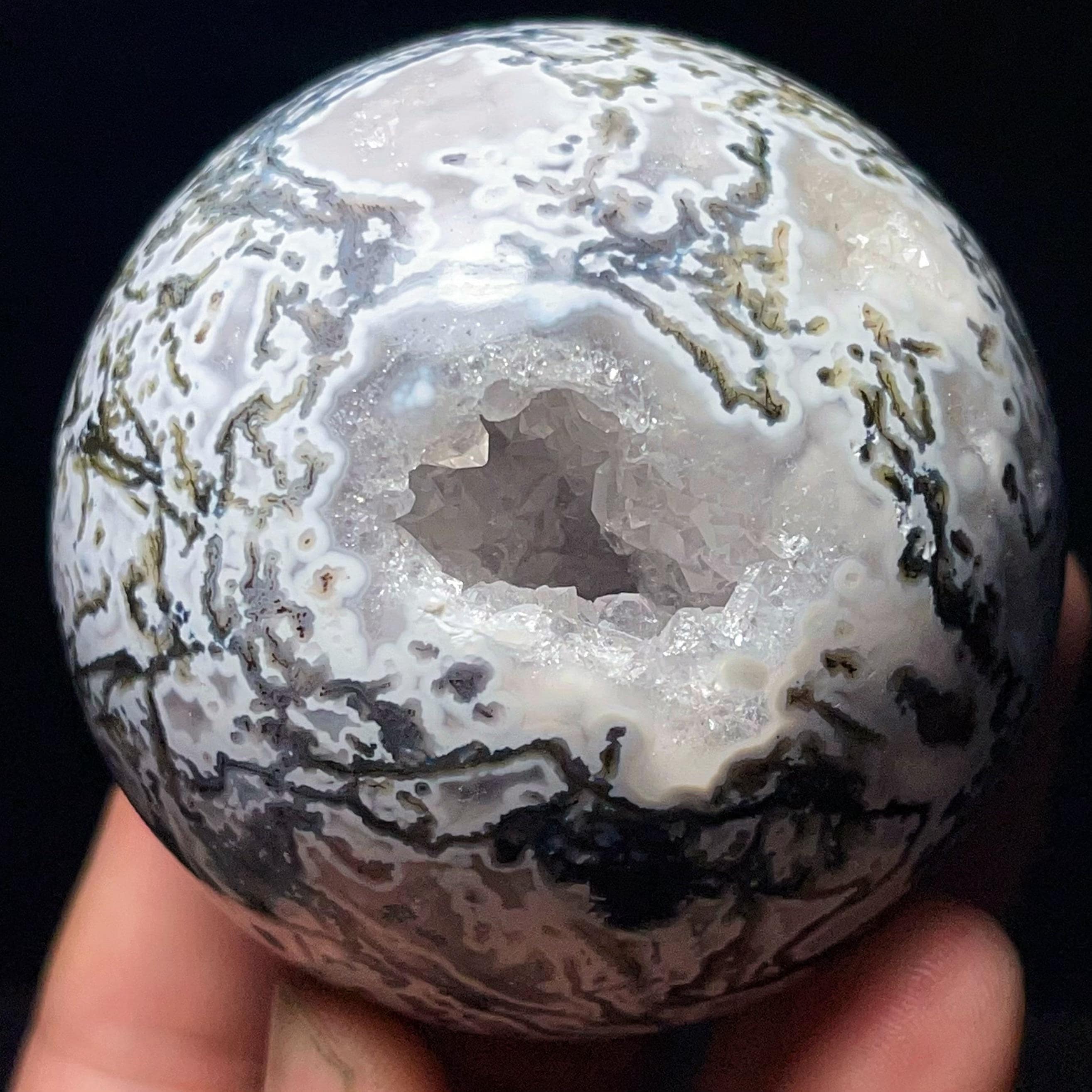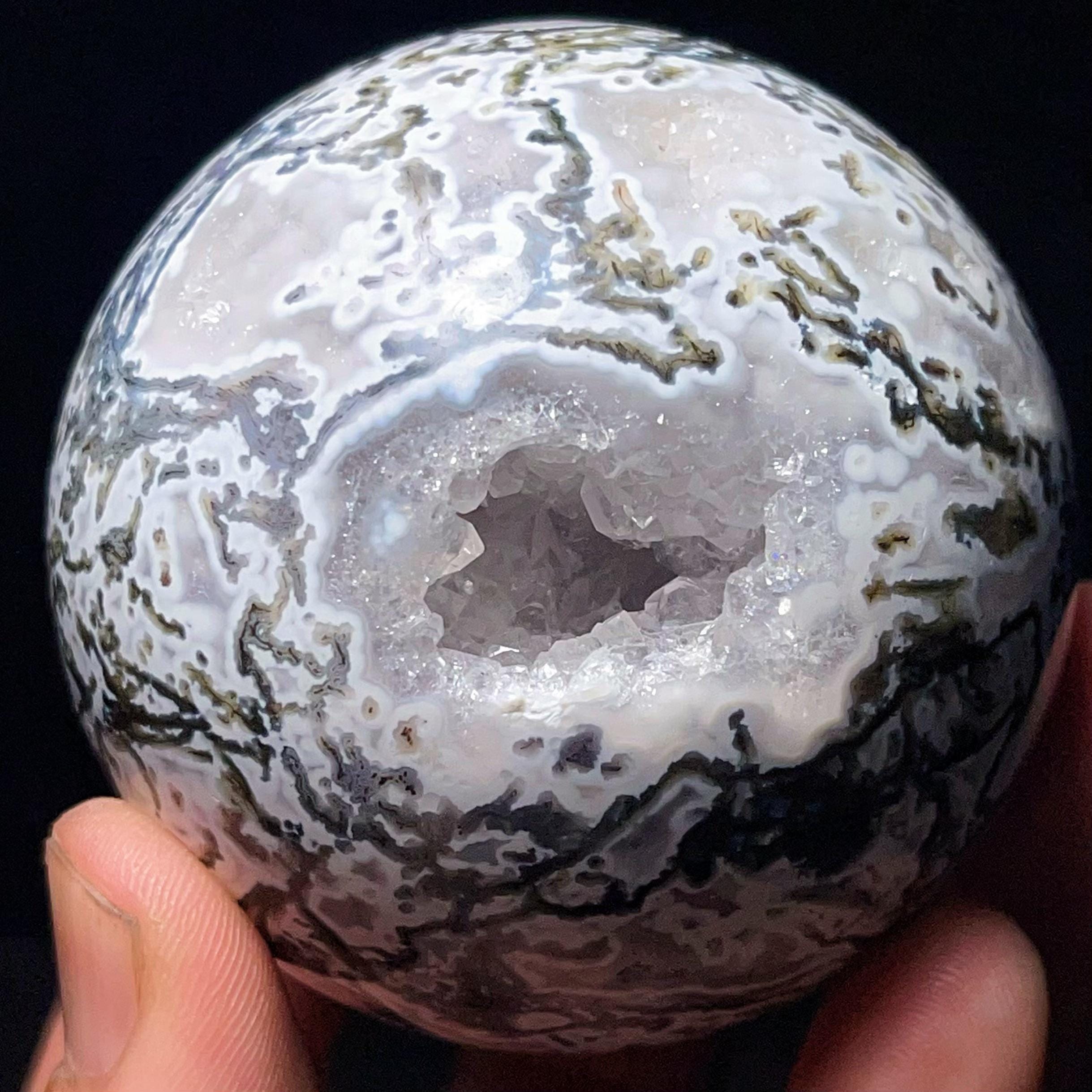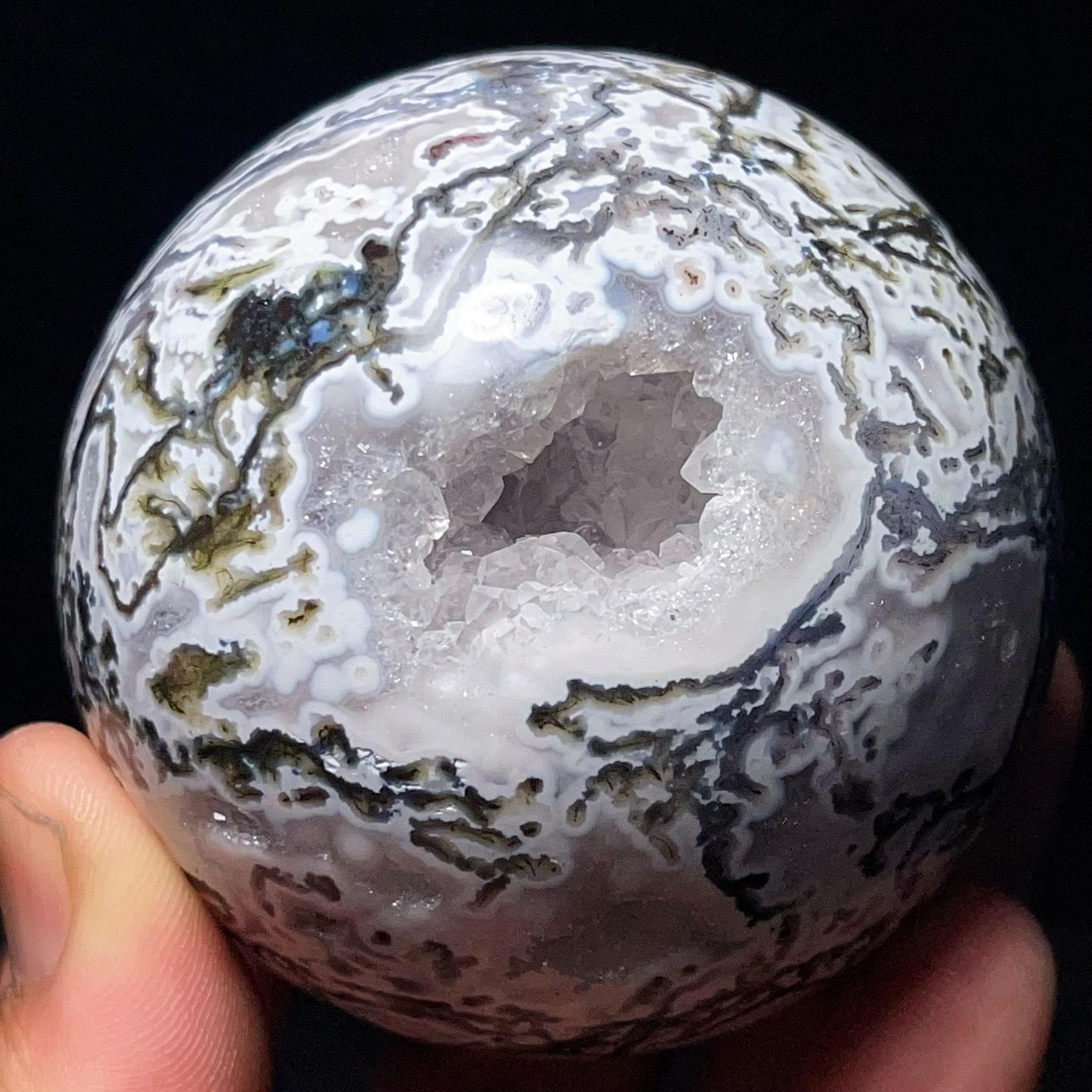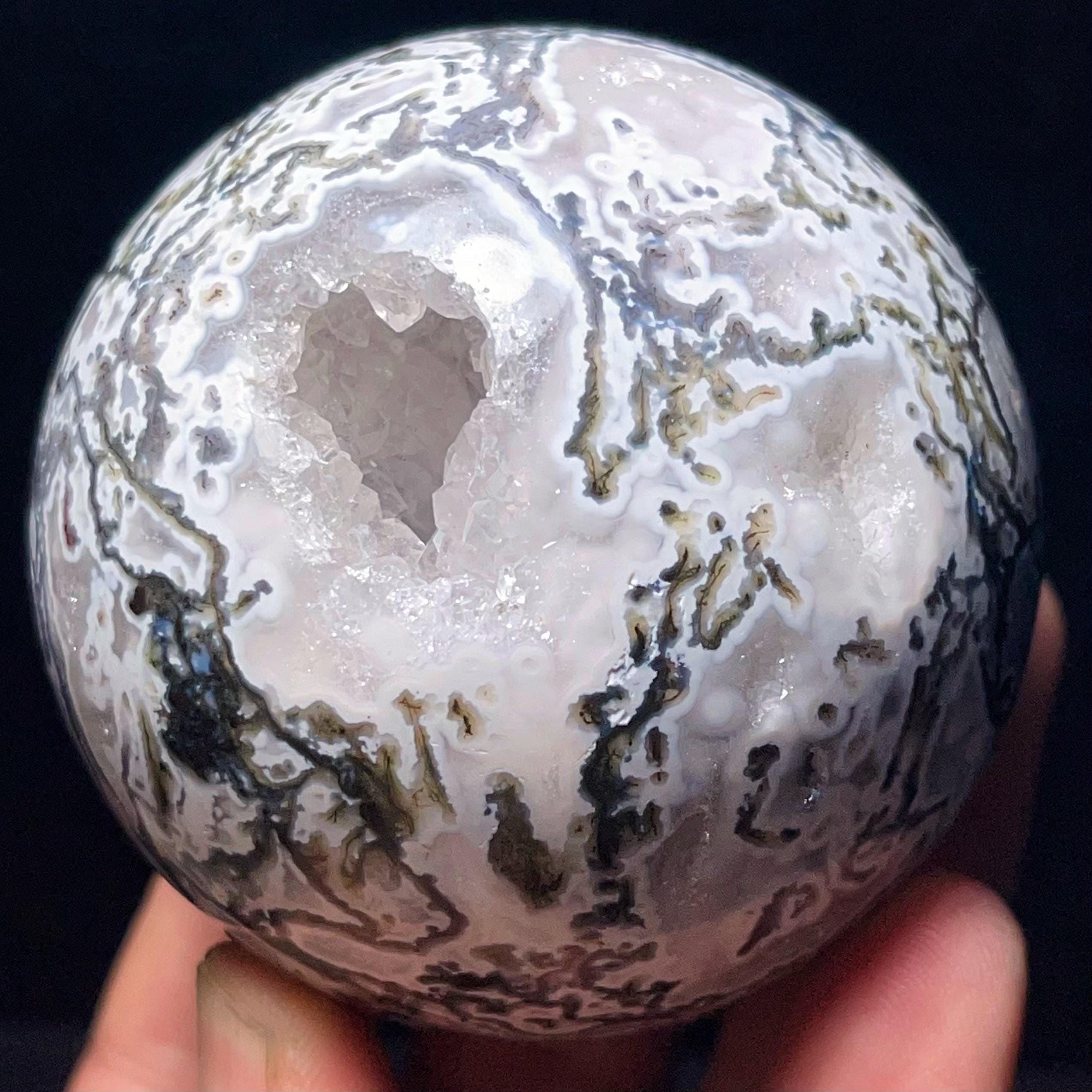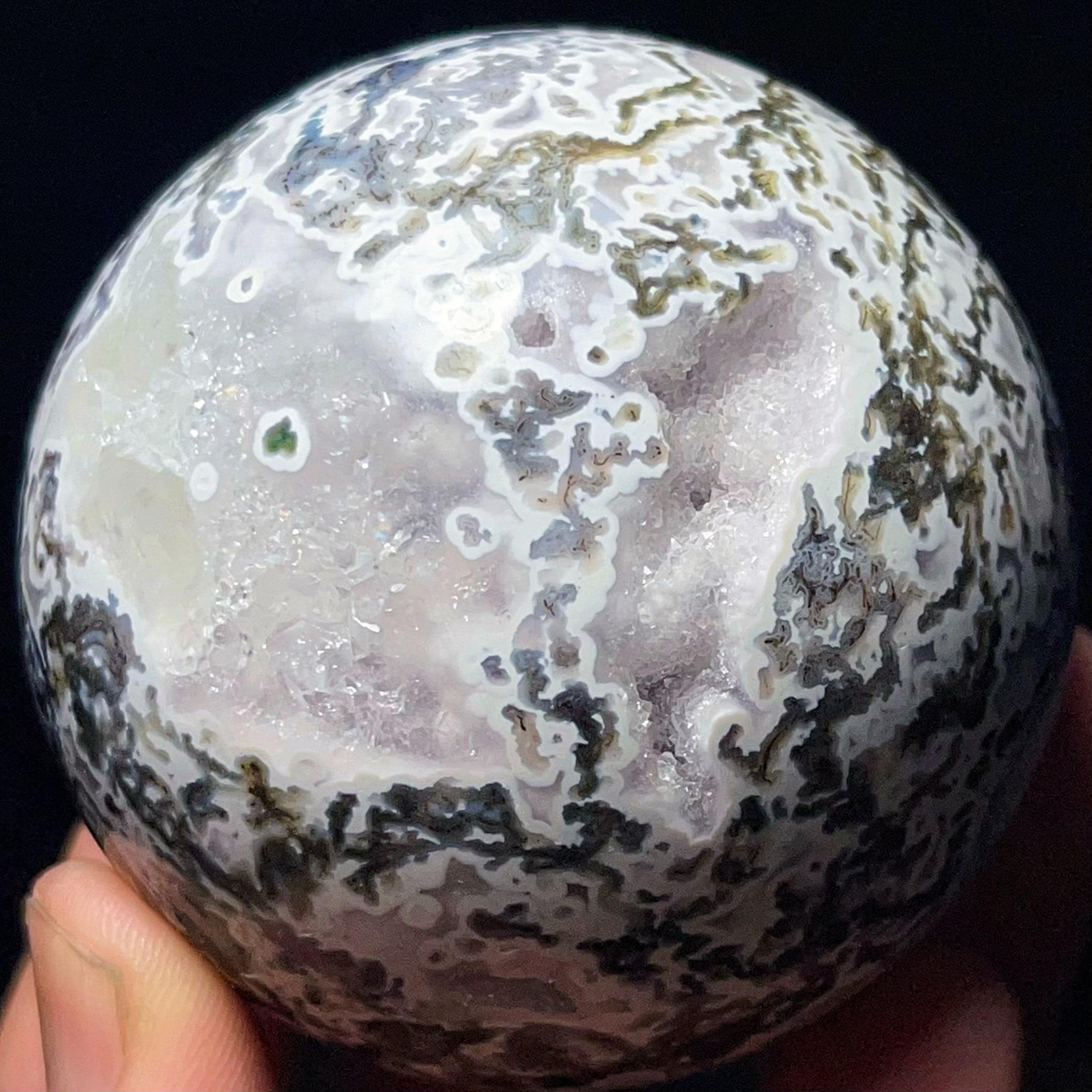Natural Moss Agate Crystal Cave Agate Sphere: Chakra Reiki Meditation Stone L7351