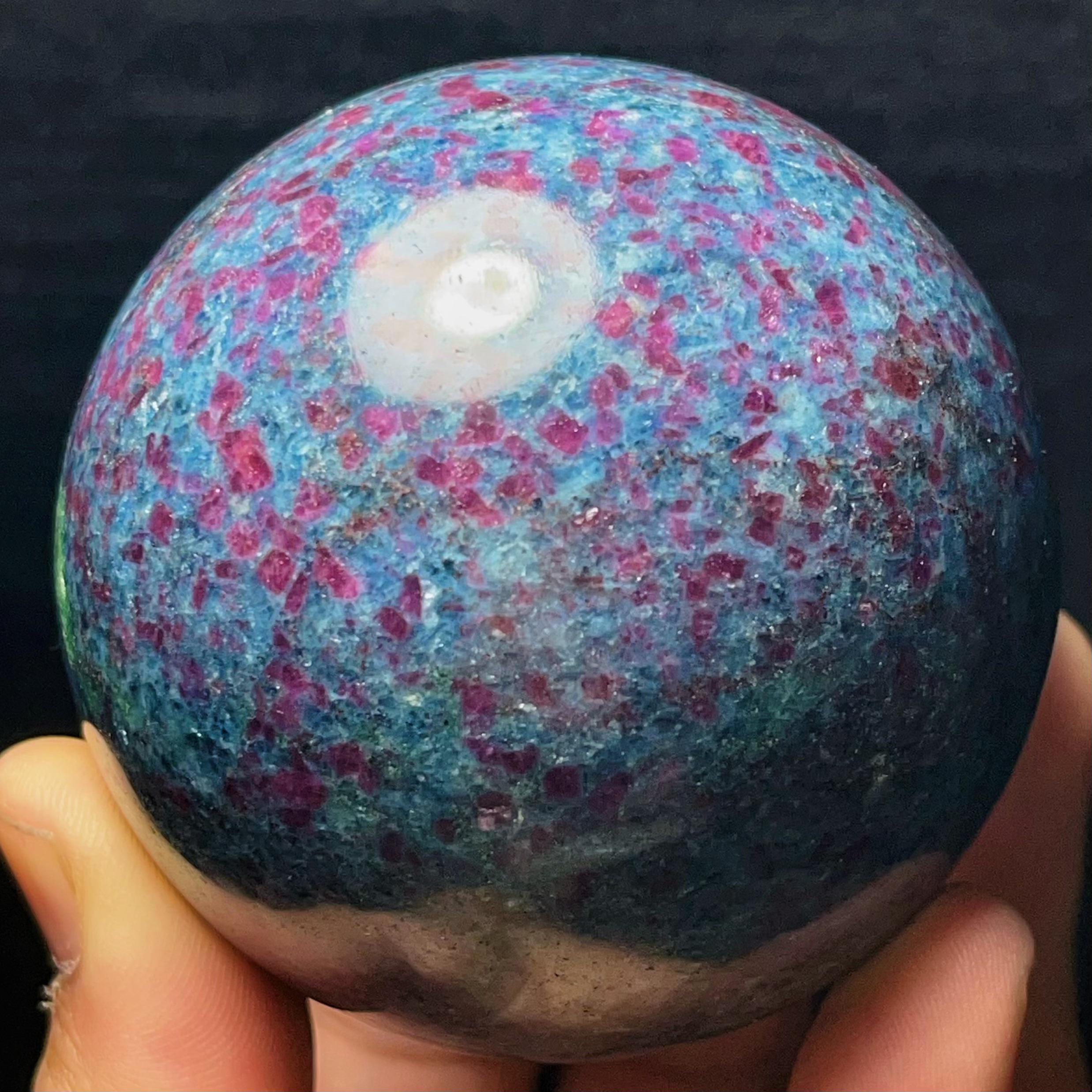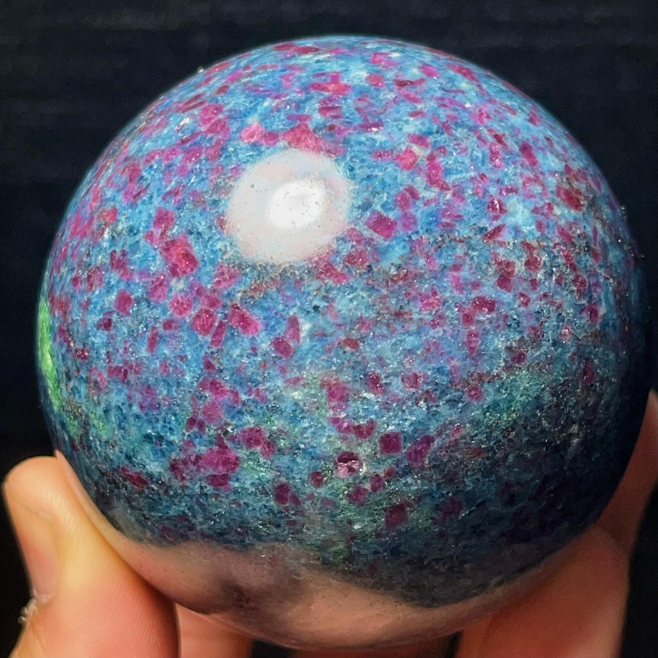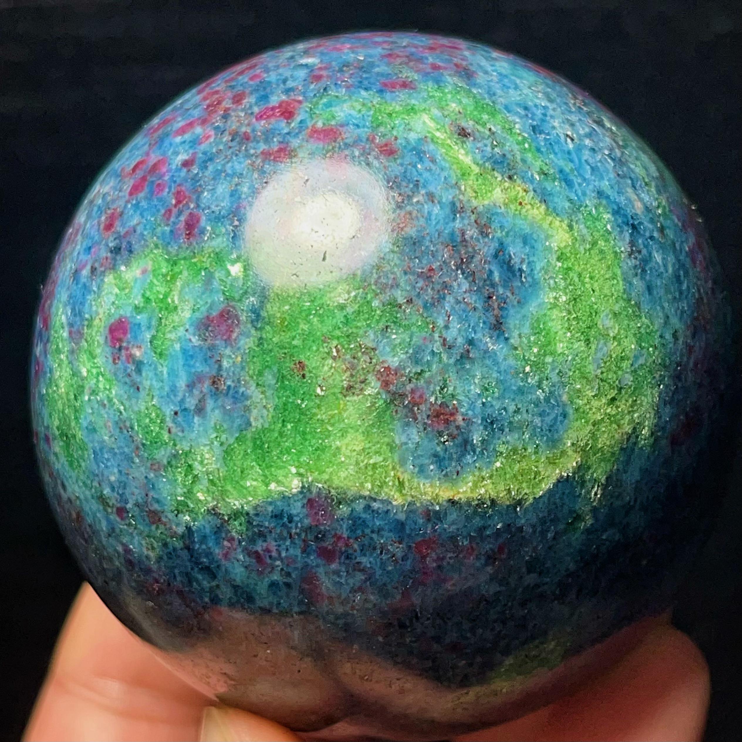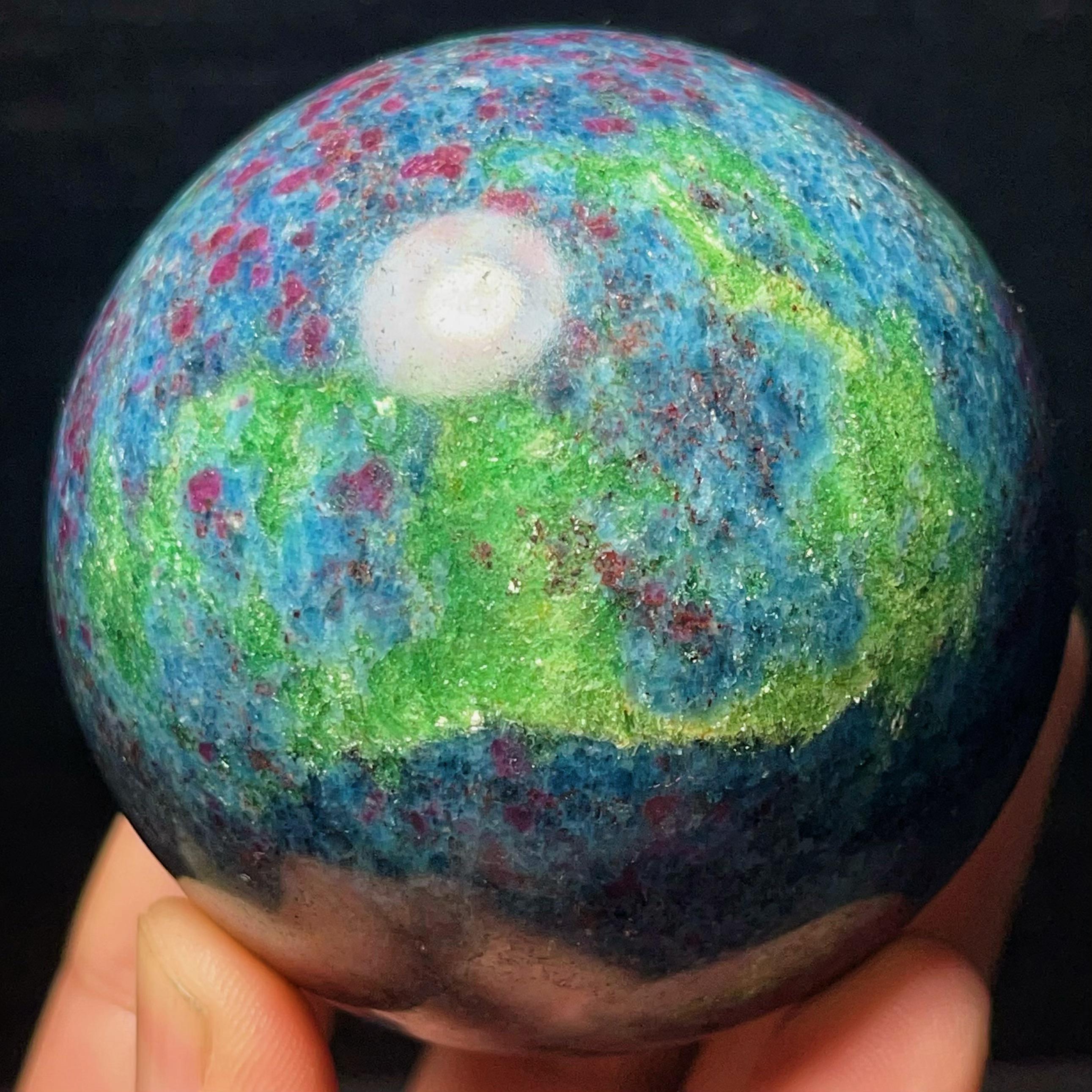 Natural Rare Ruby Symbiotic Crystal Ball: Red-Blue-Green Healing Stone L7383