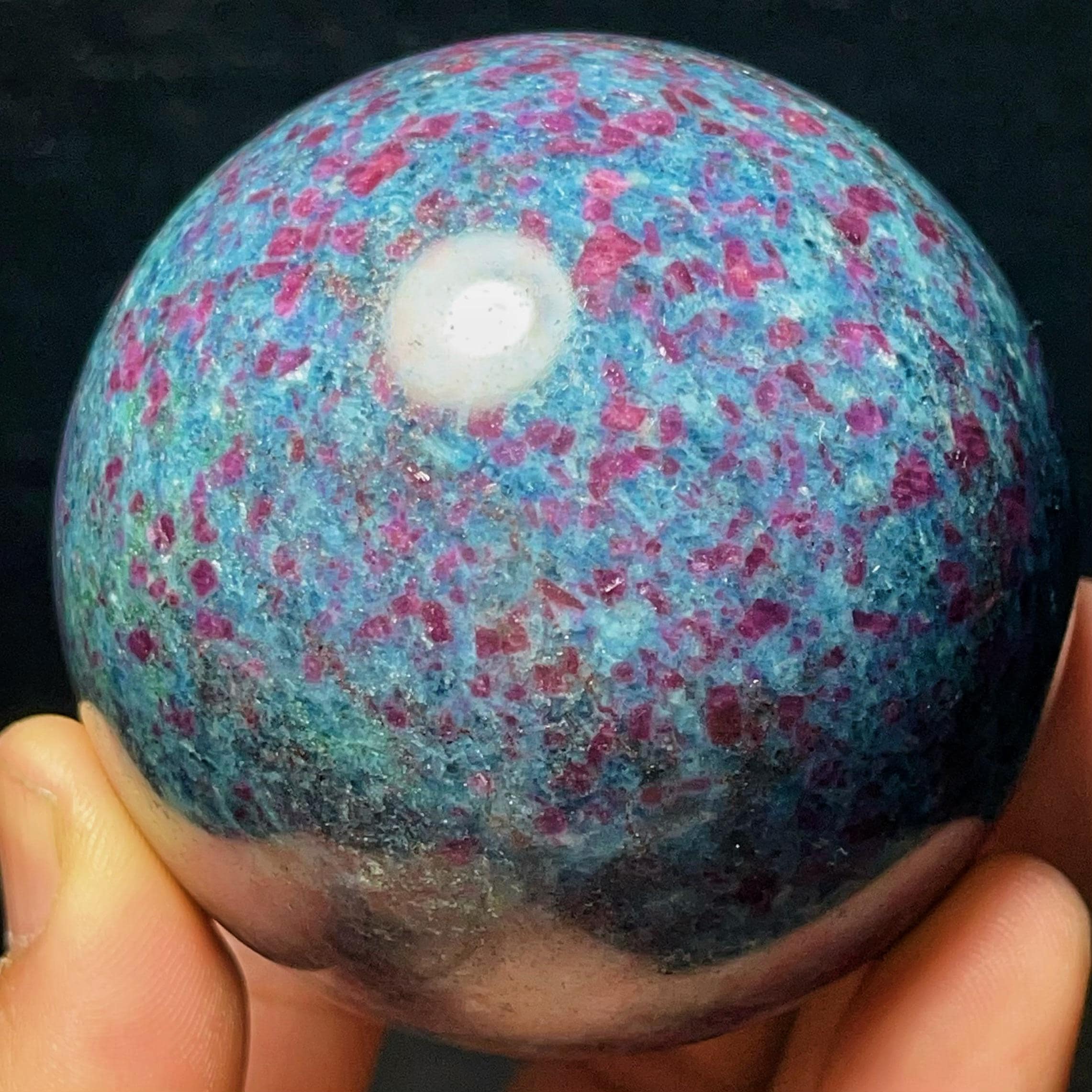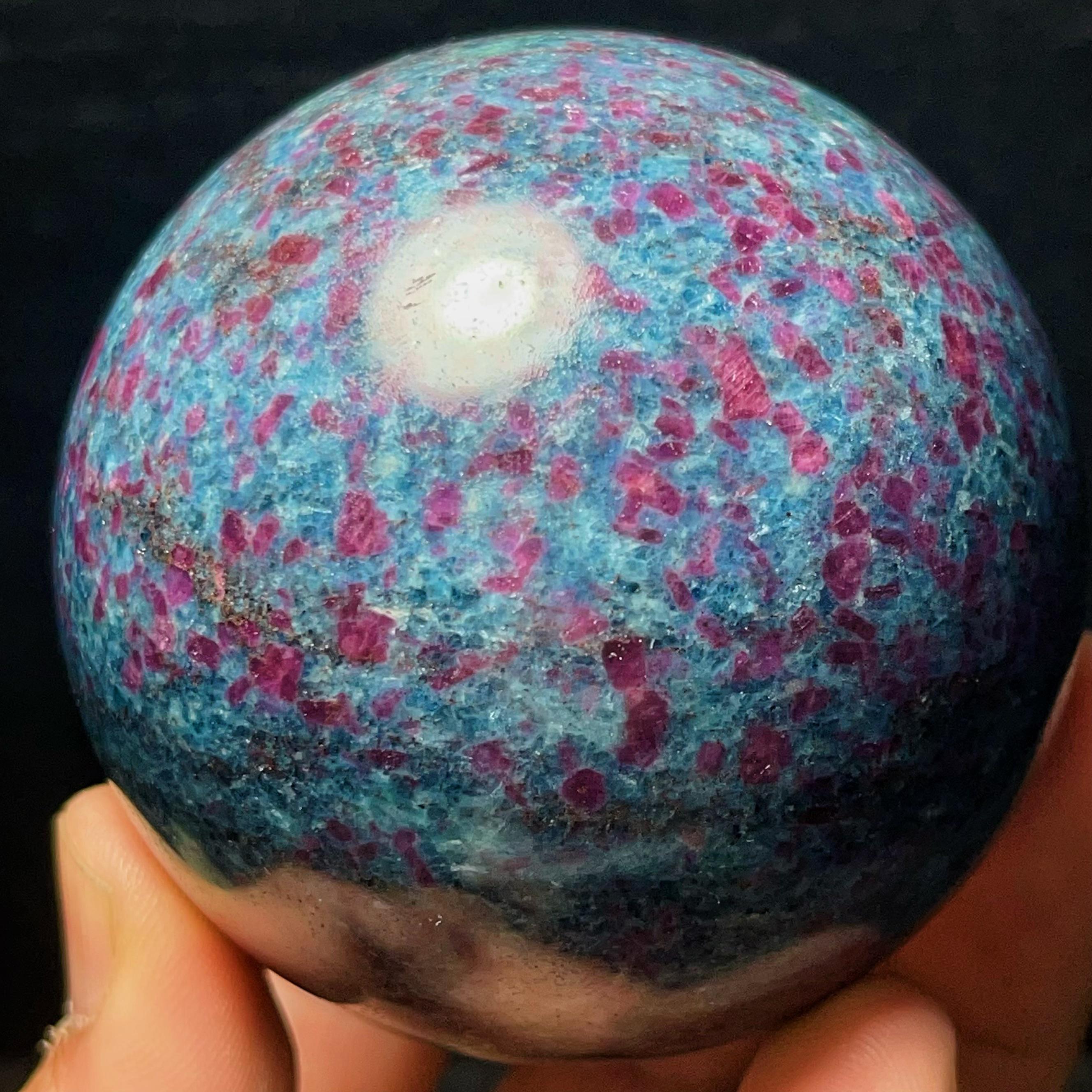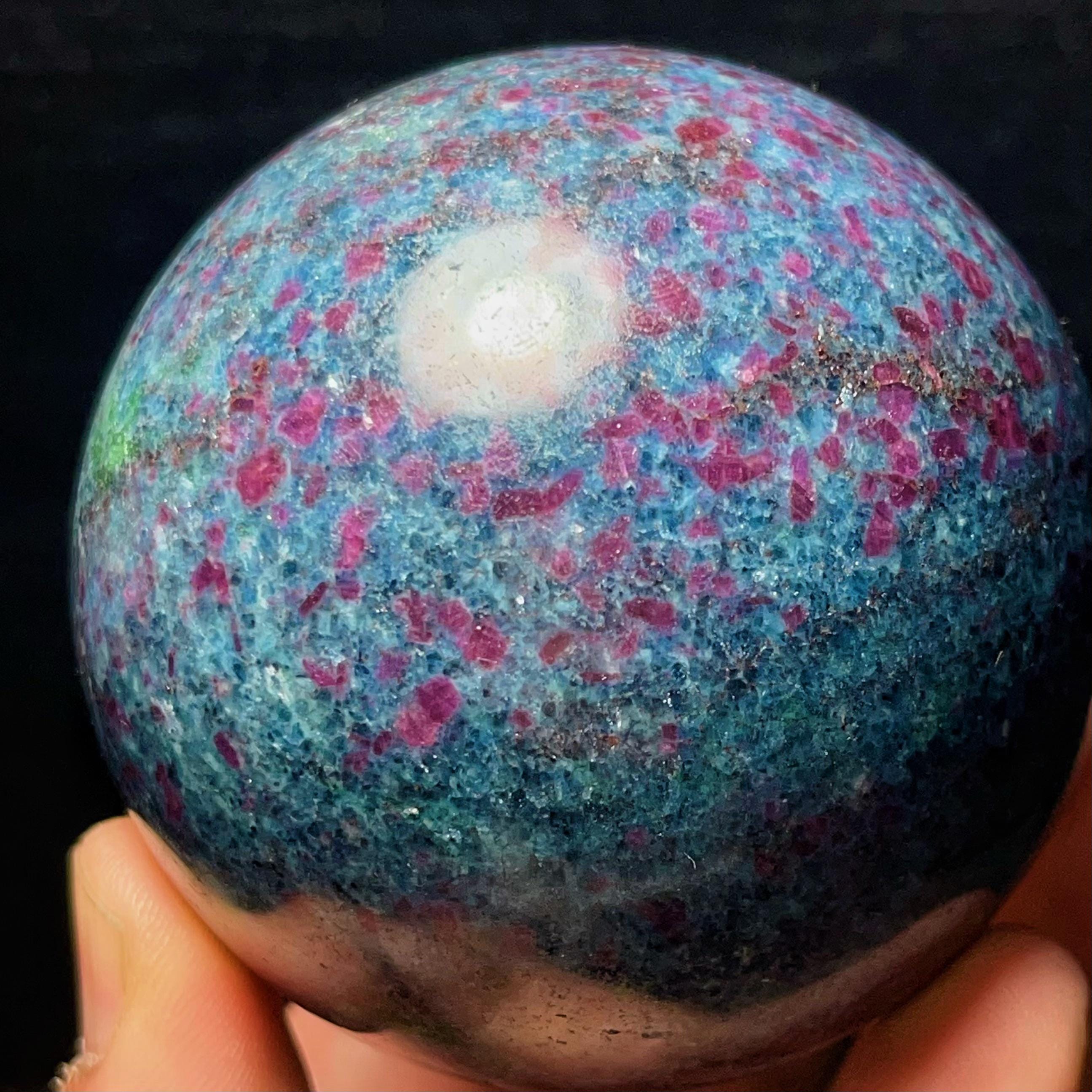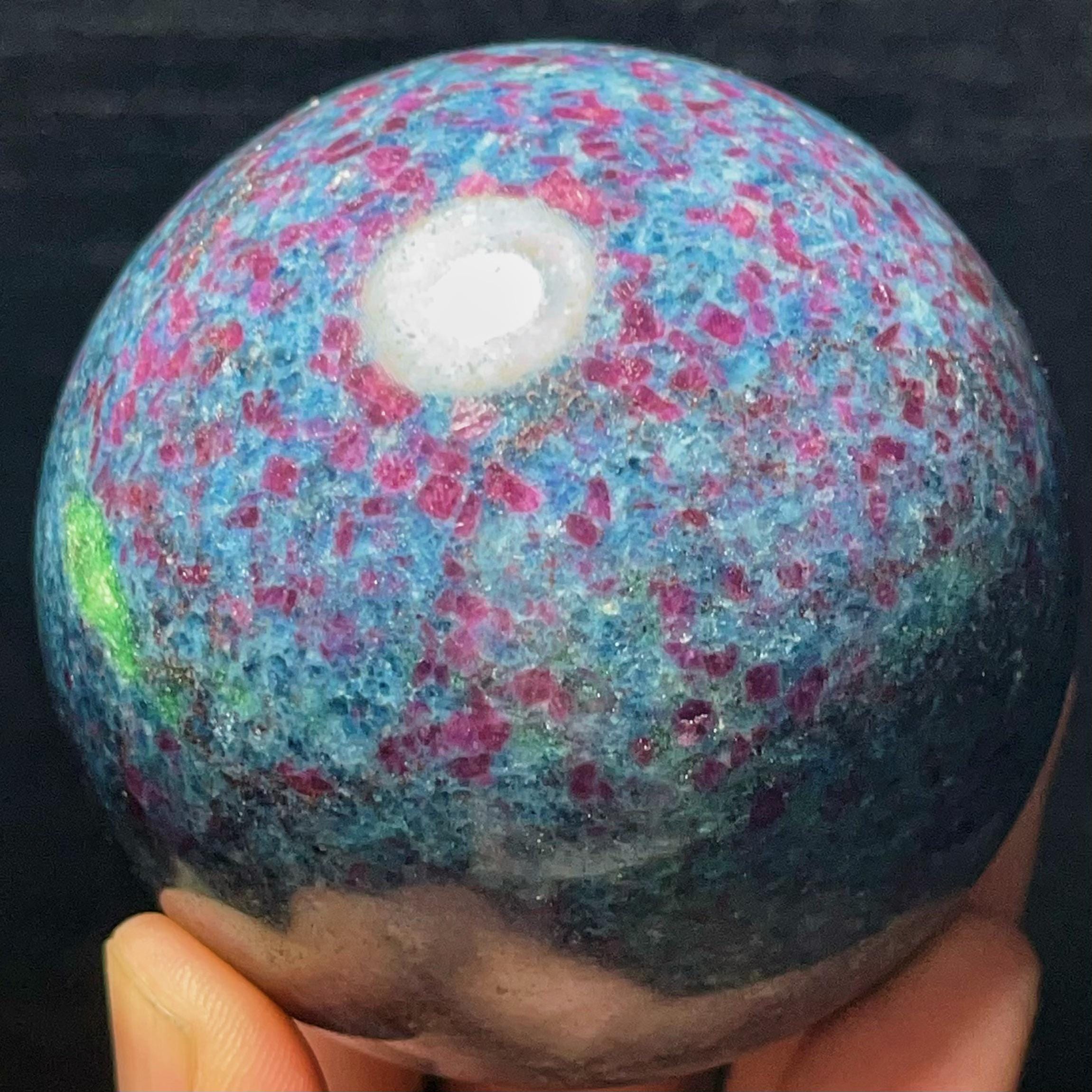 Natural Rare Ruby Symbiotic Crystal Ball: Red-Blue-Green Healing Stone L7383