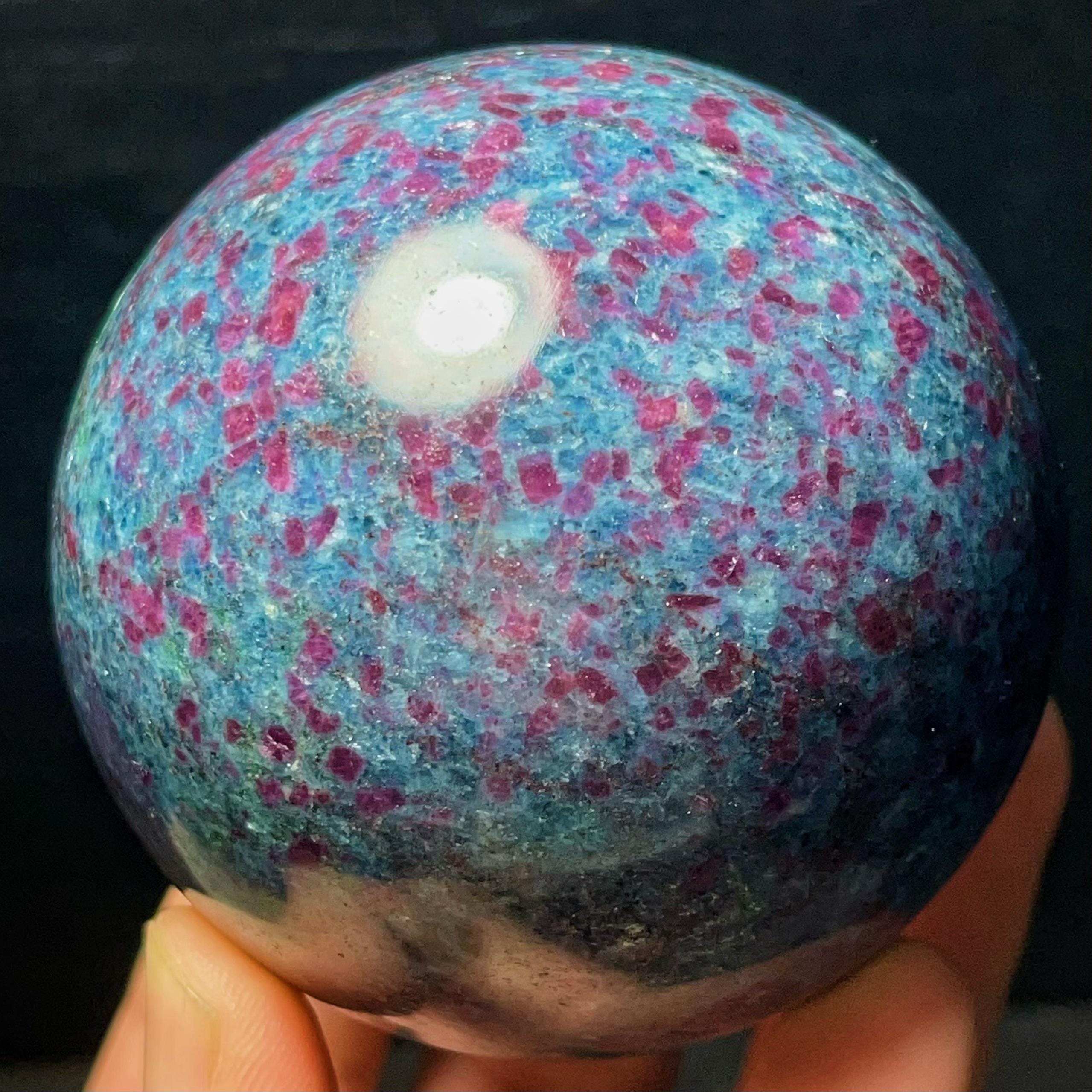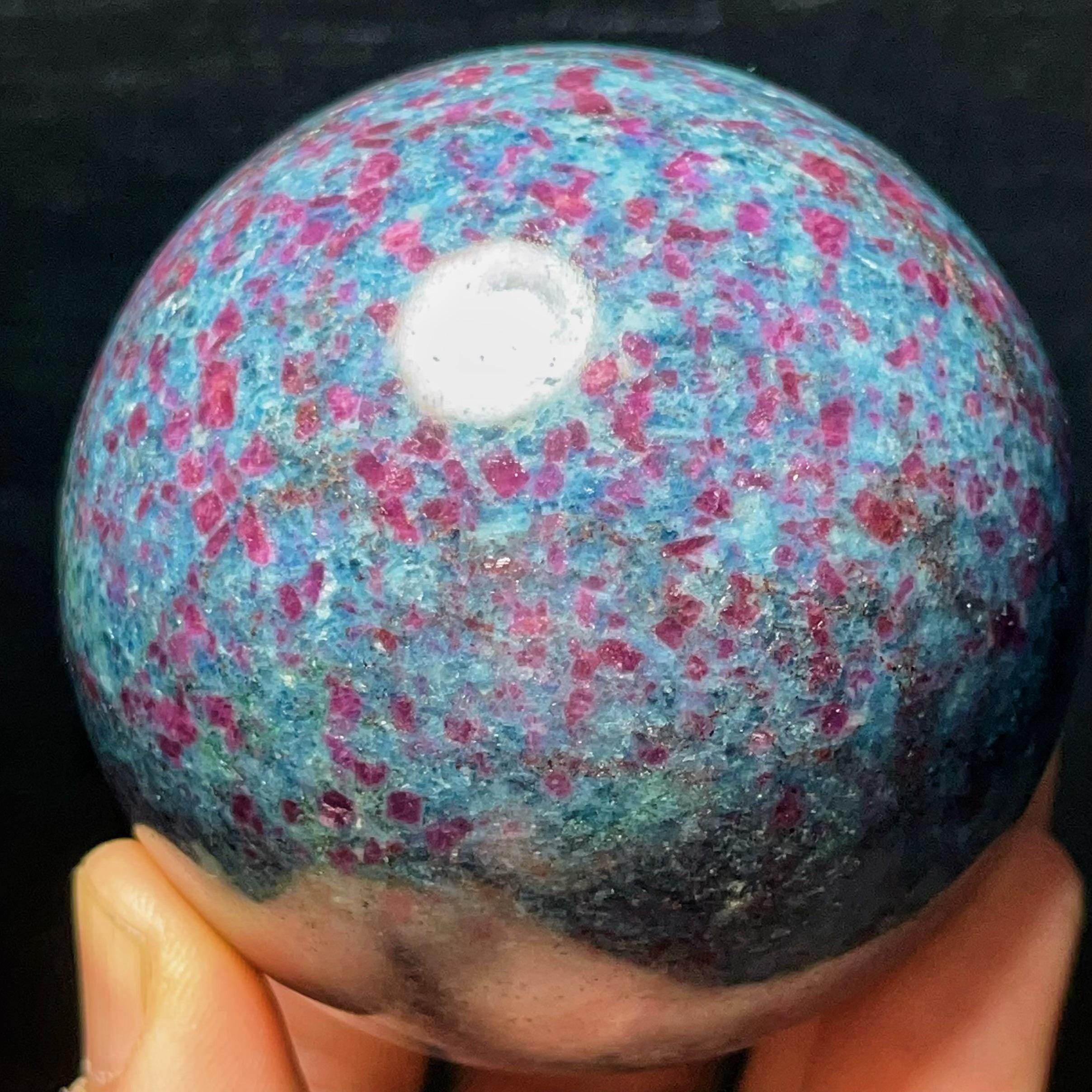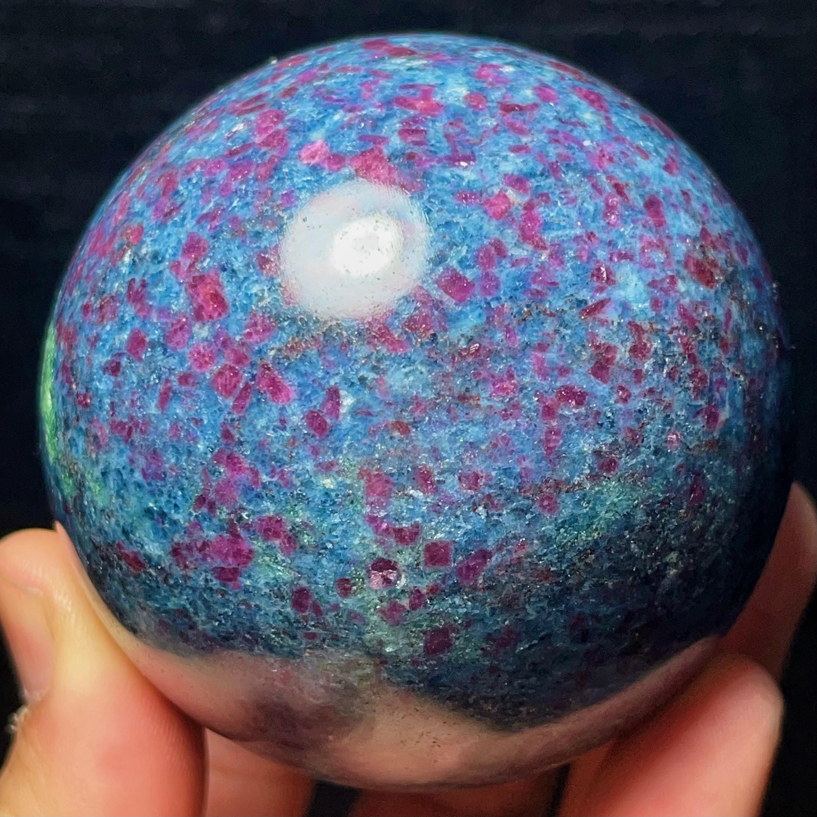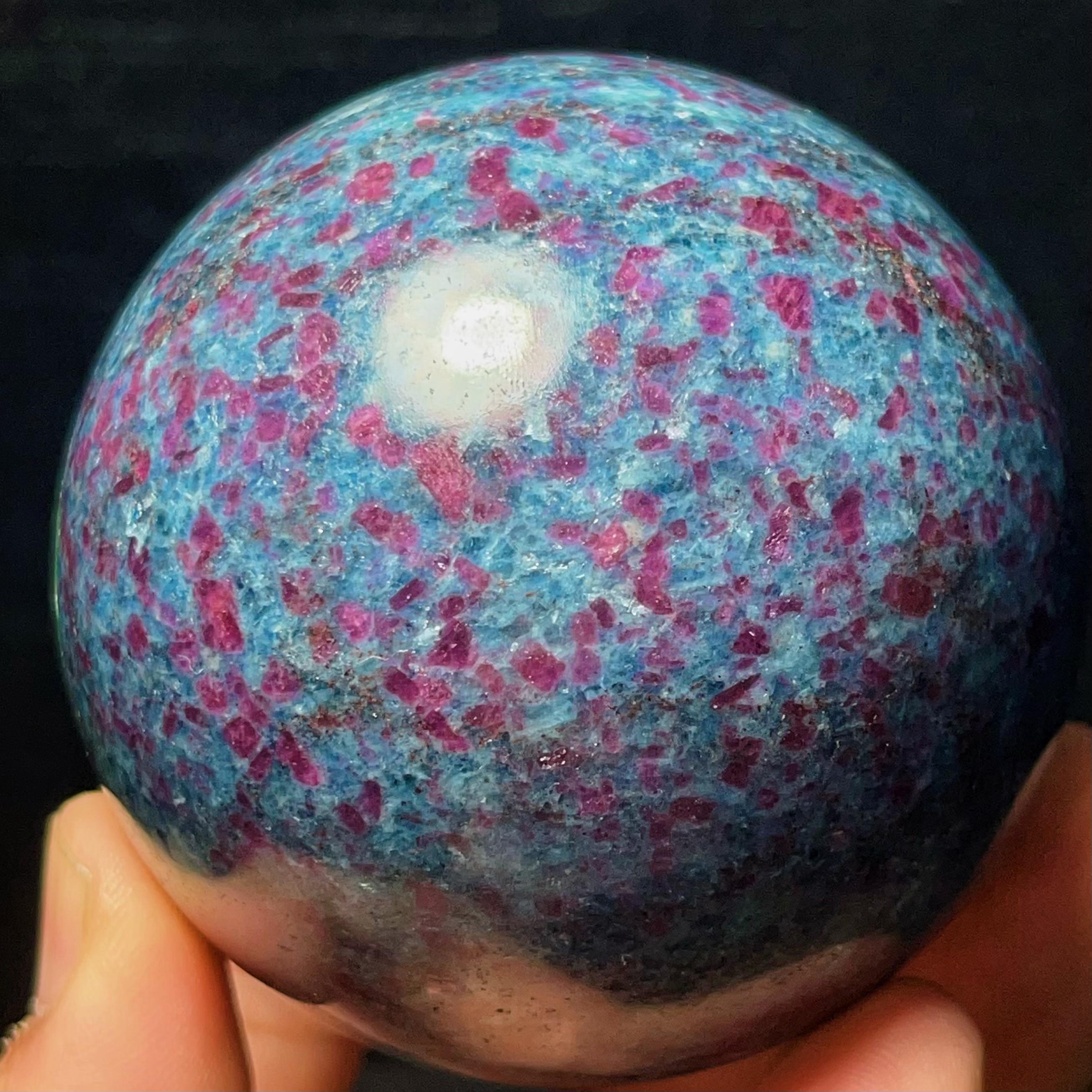 Natural Rare Ruby Symbiotic Crystal Ball: Red-Blue-Green Healing Stone L7383
