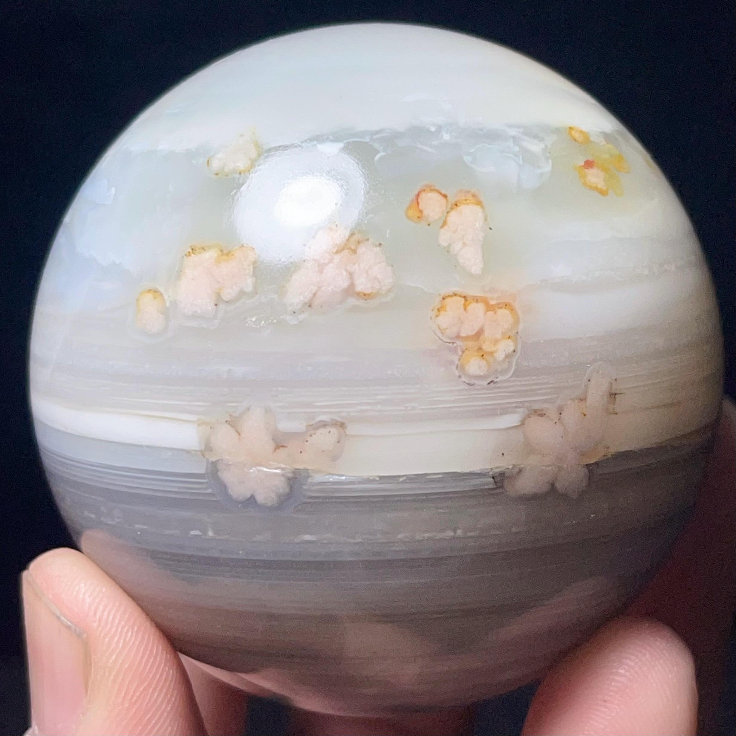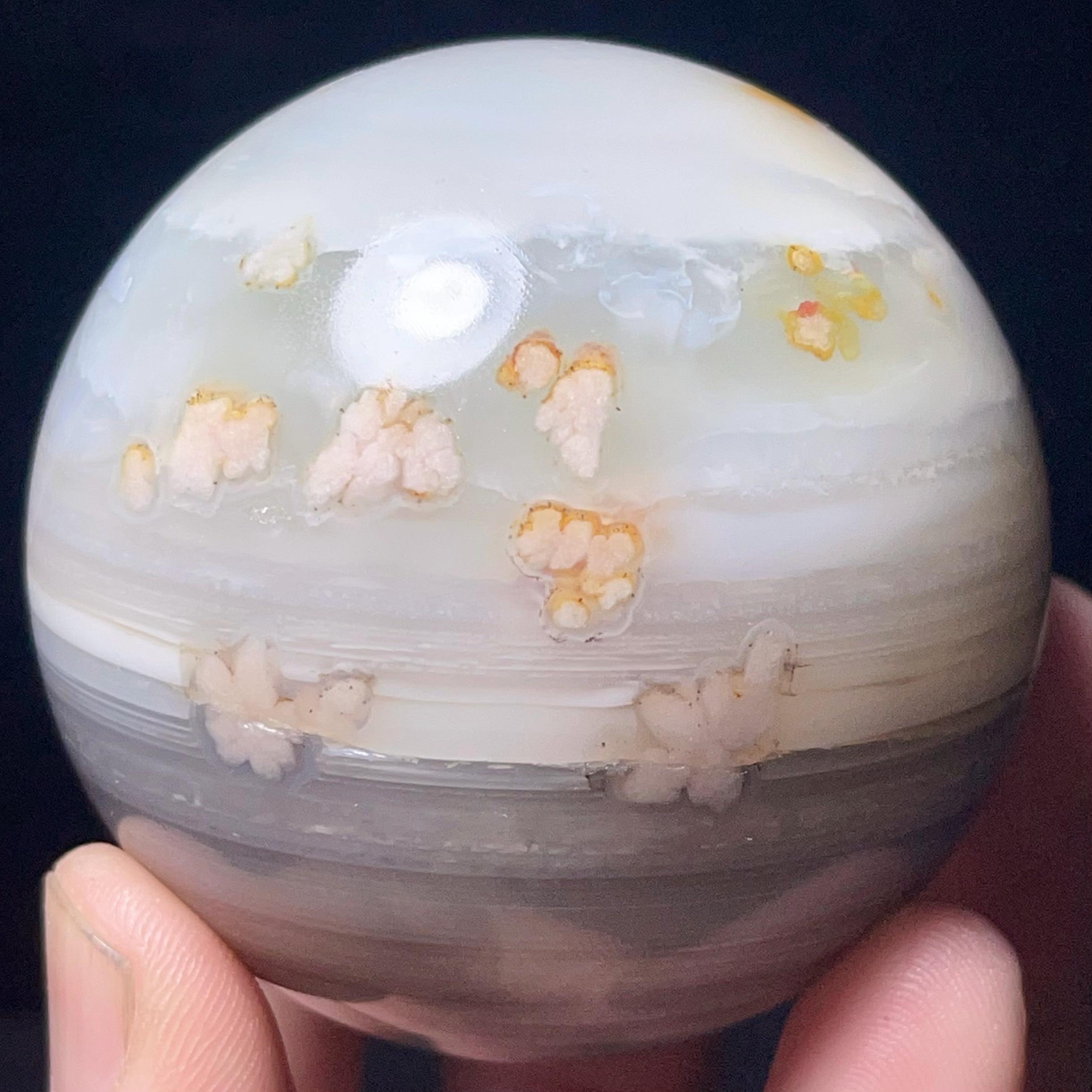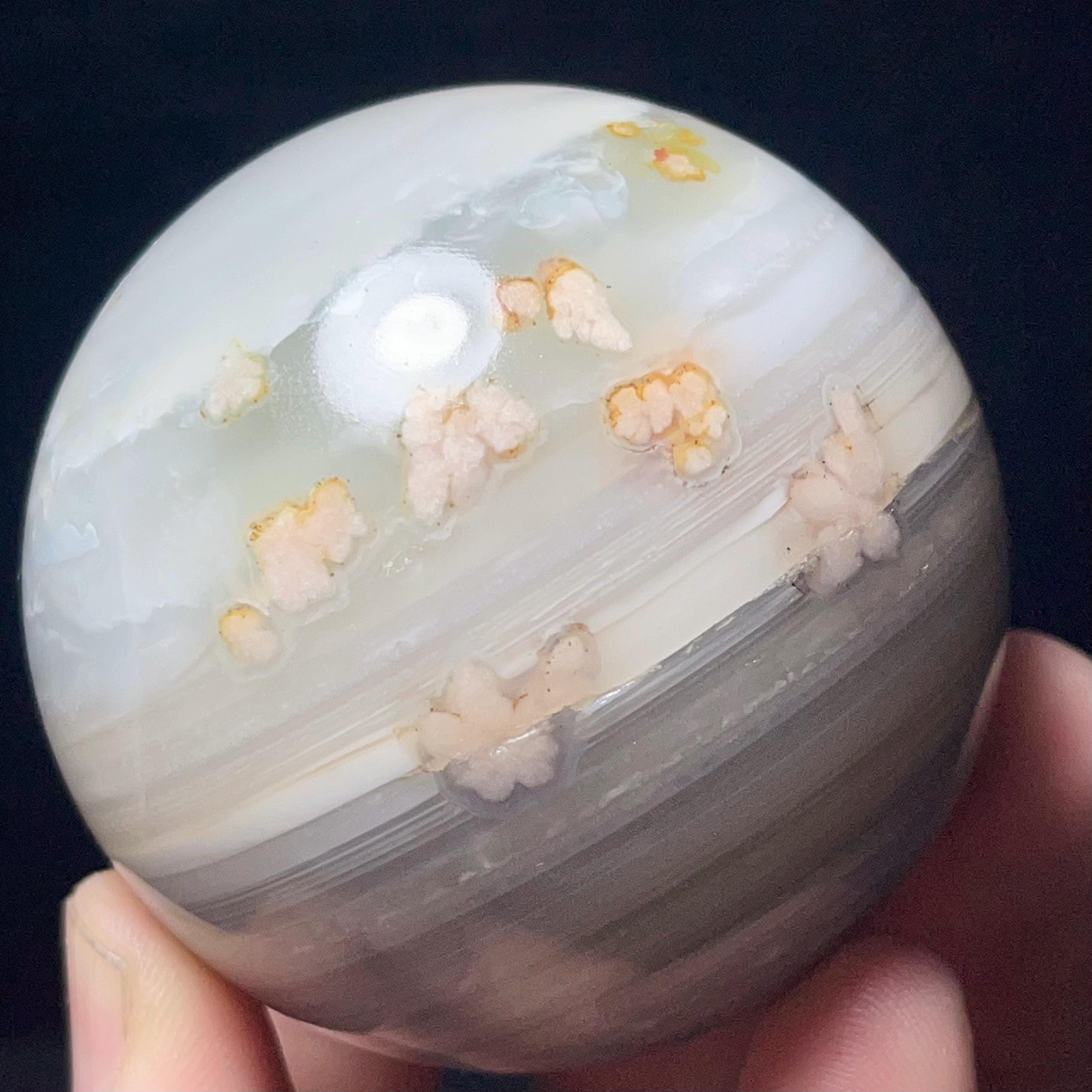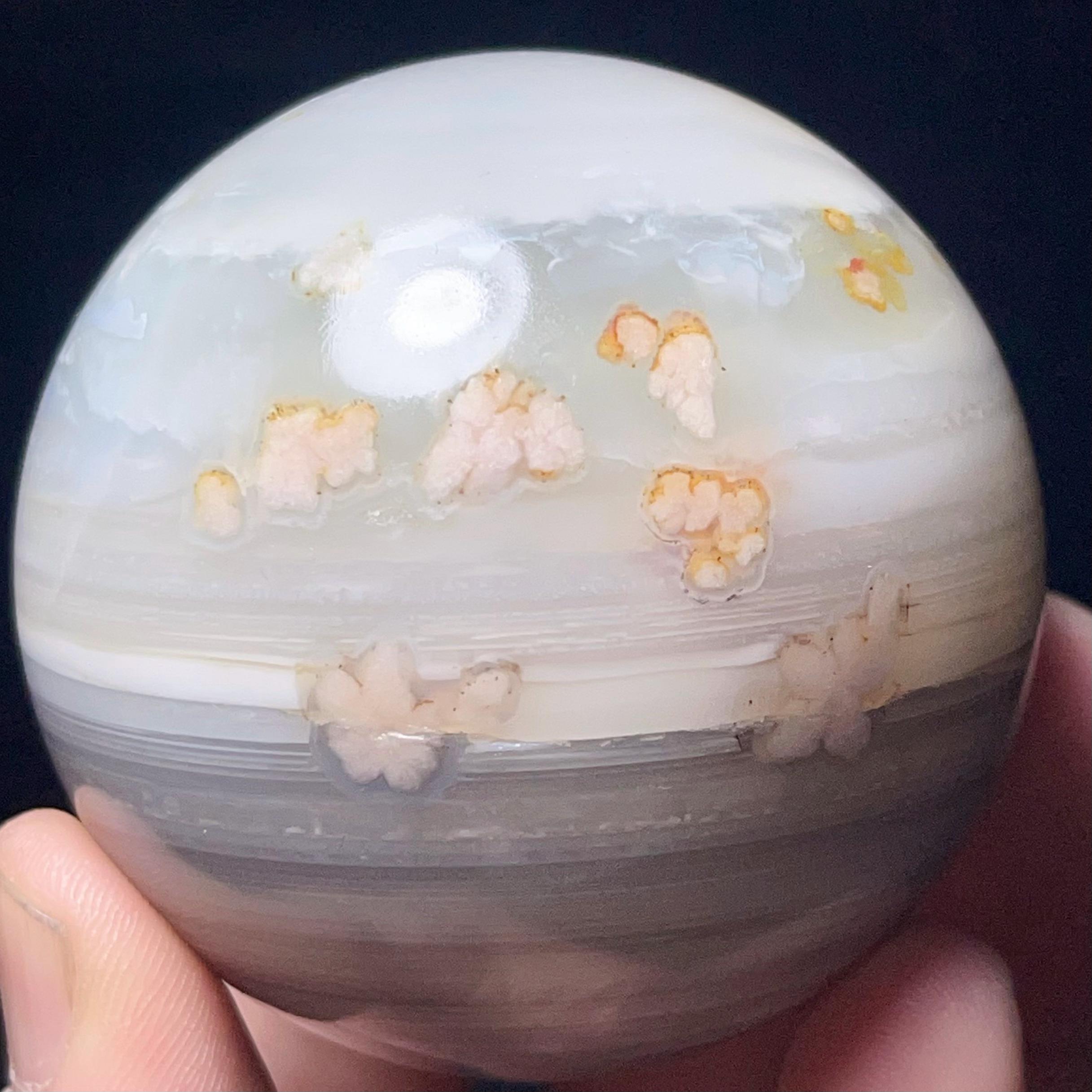 Natural Cherry Blossom Agate Sphere: Healing Stone, Energy Gift L7382