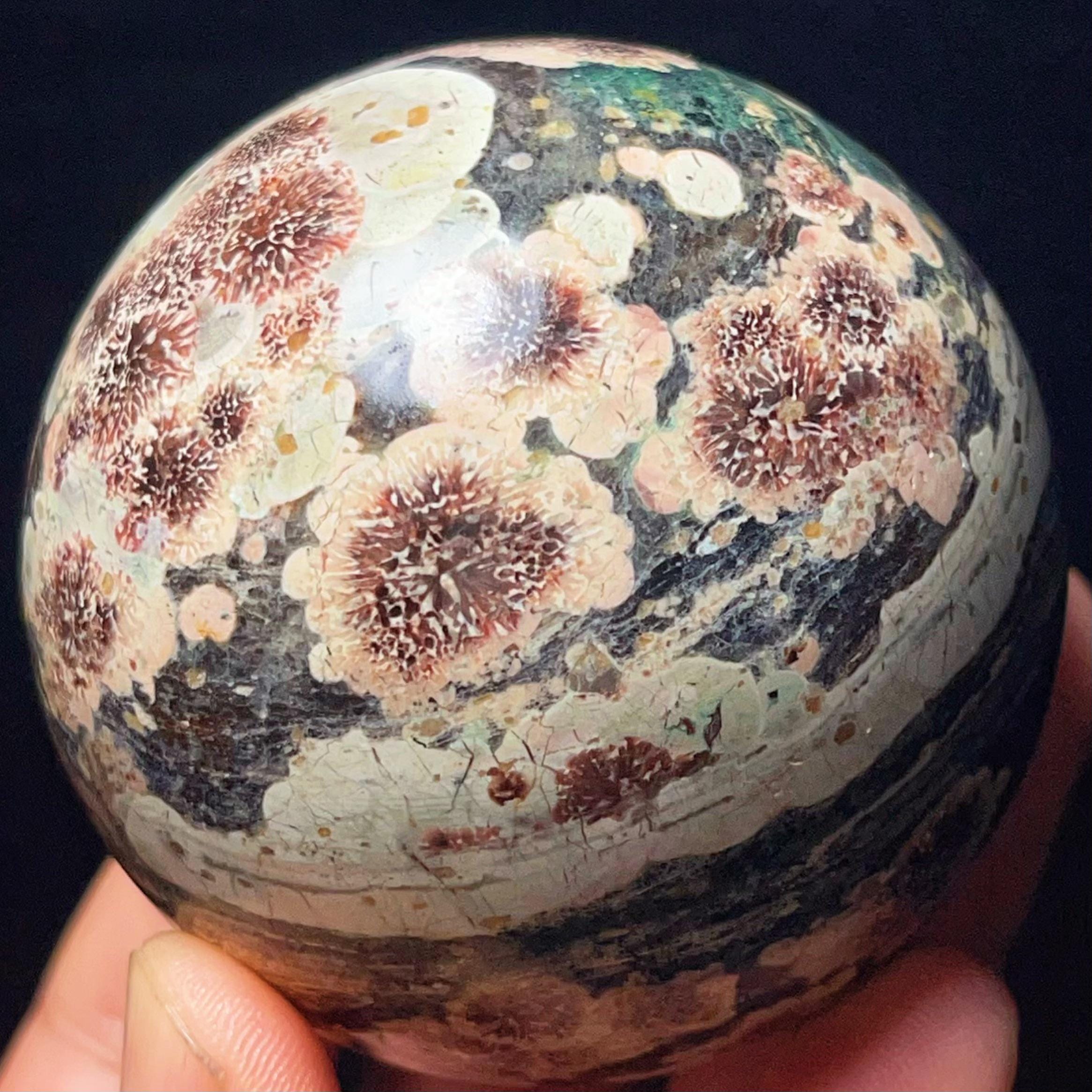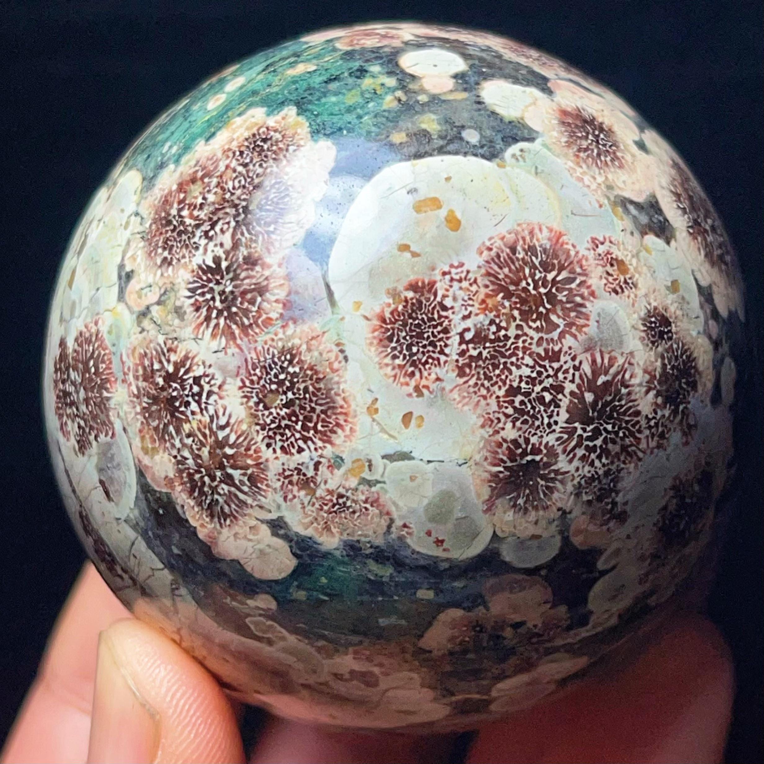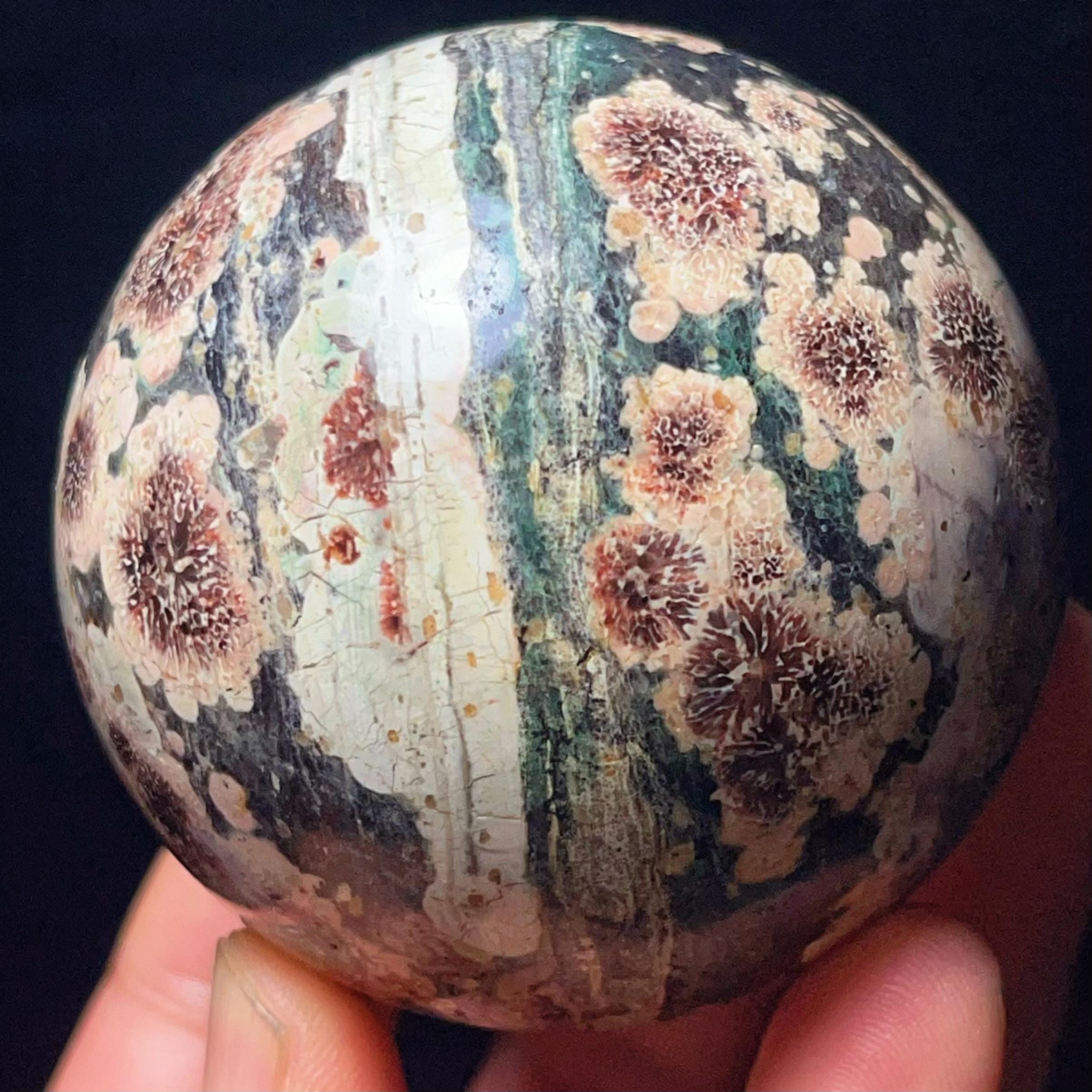 Natural Green Cherry Blossom Agate Sphere: Healing Stone, Energy Gift L7384