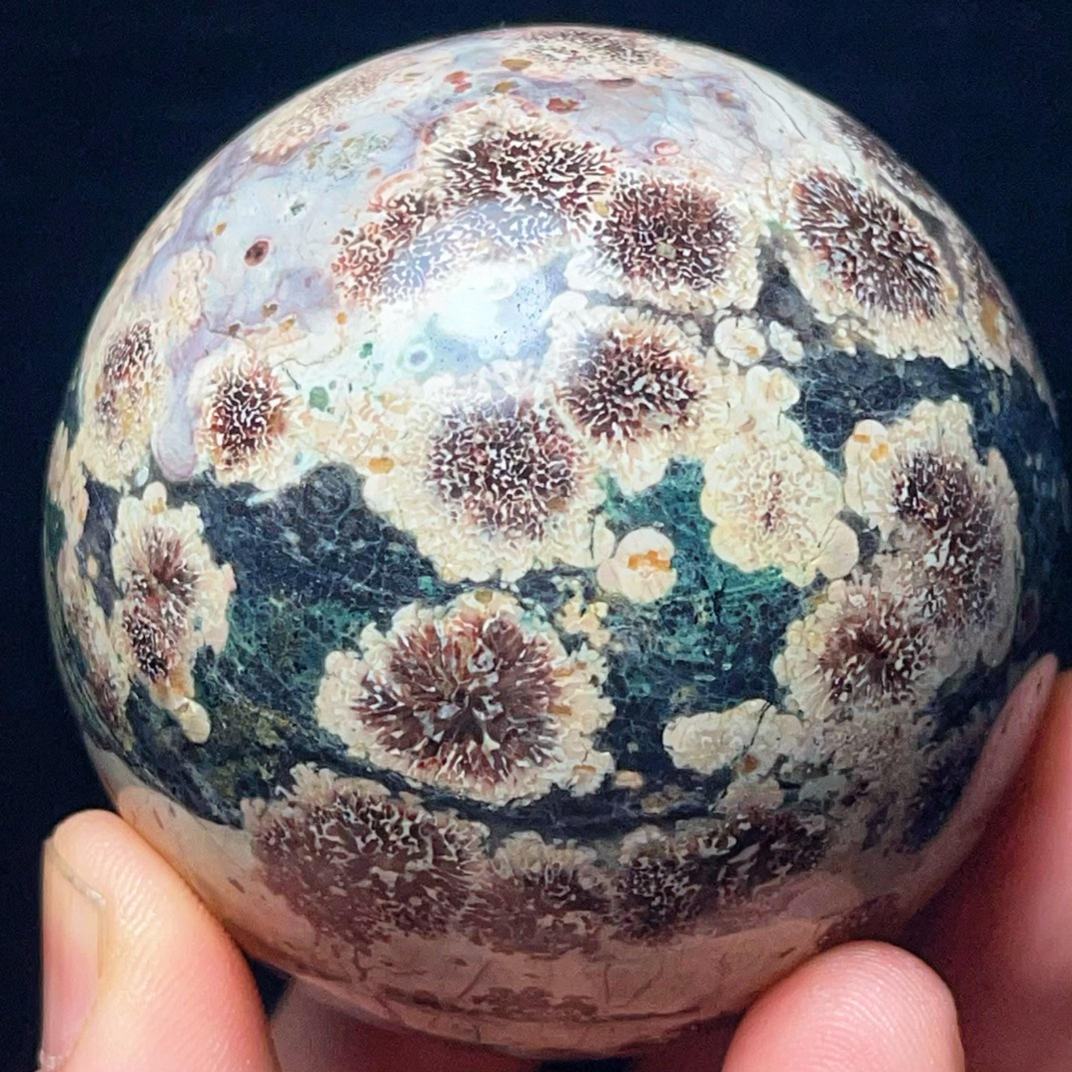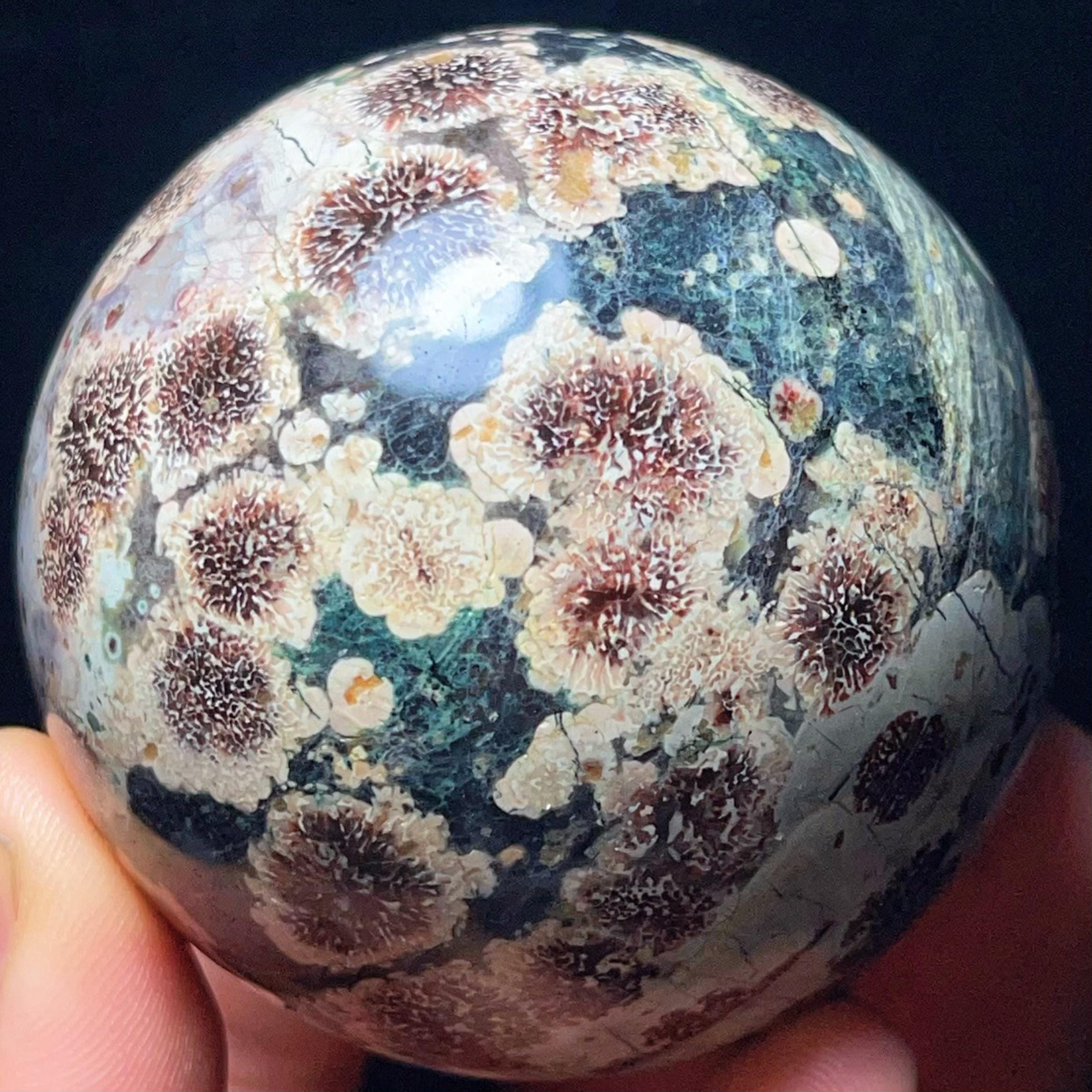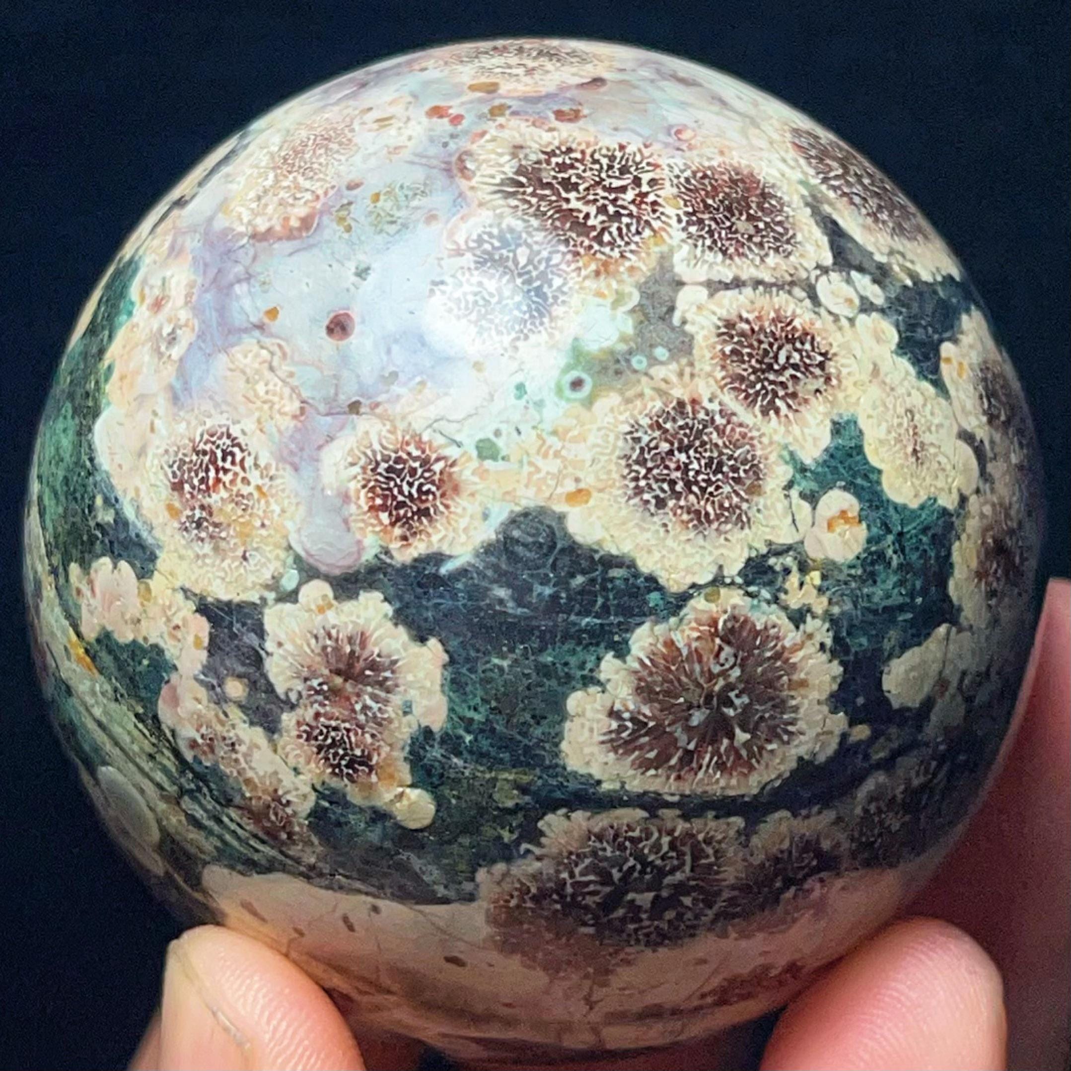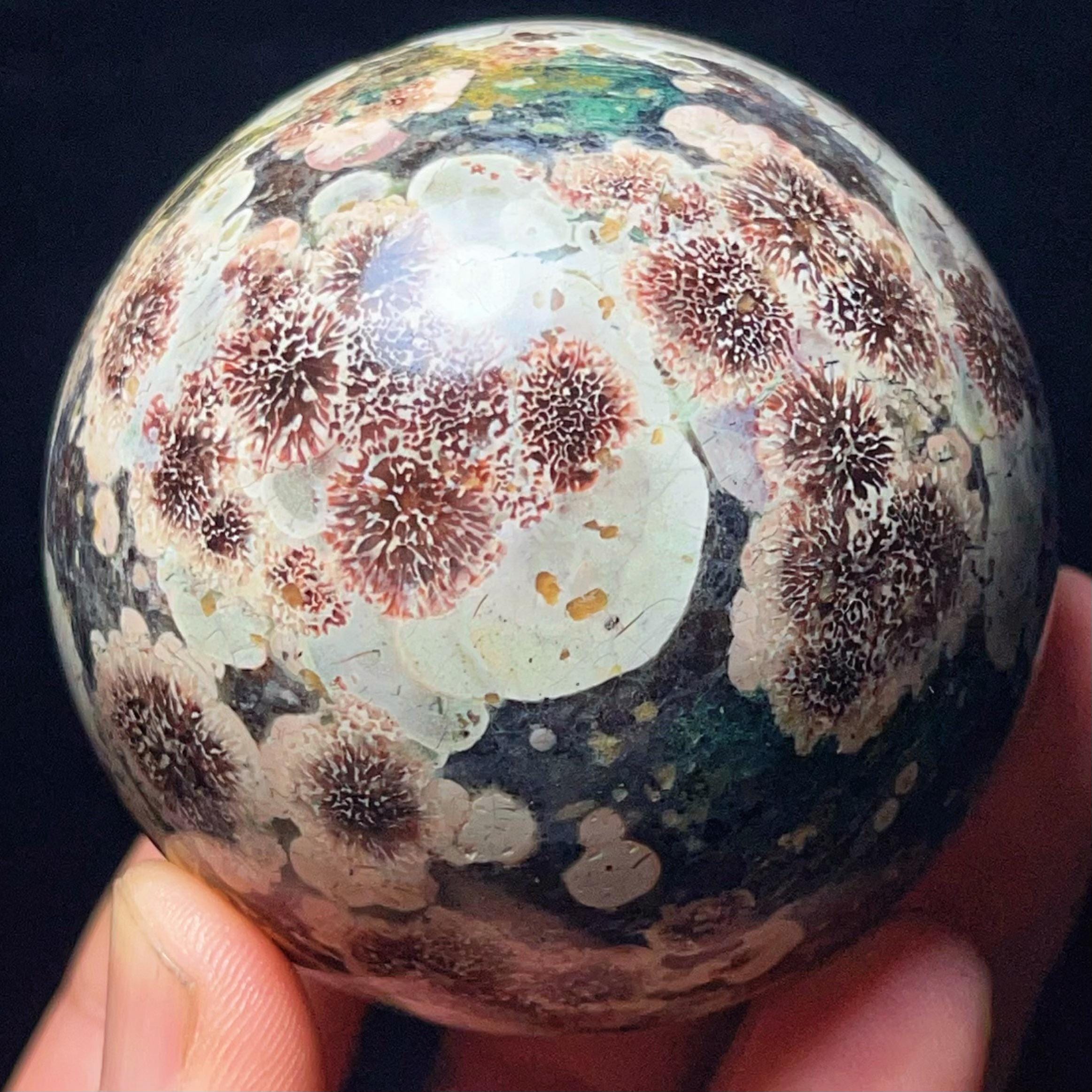 Natural Green Cherry Blossom Agate Sphere: Healing Stone, Energy Gift L7384