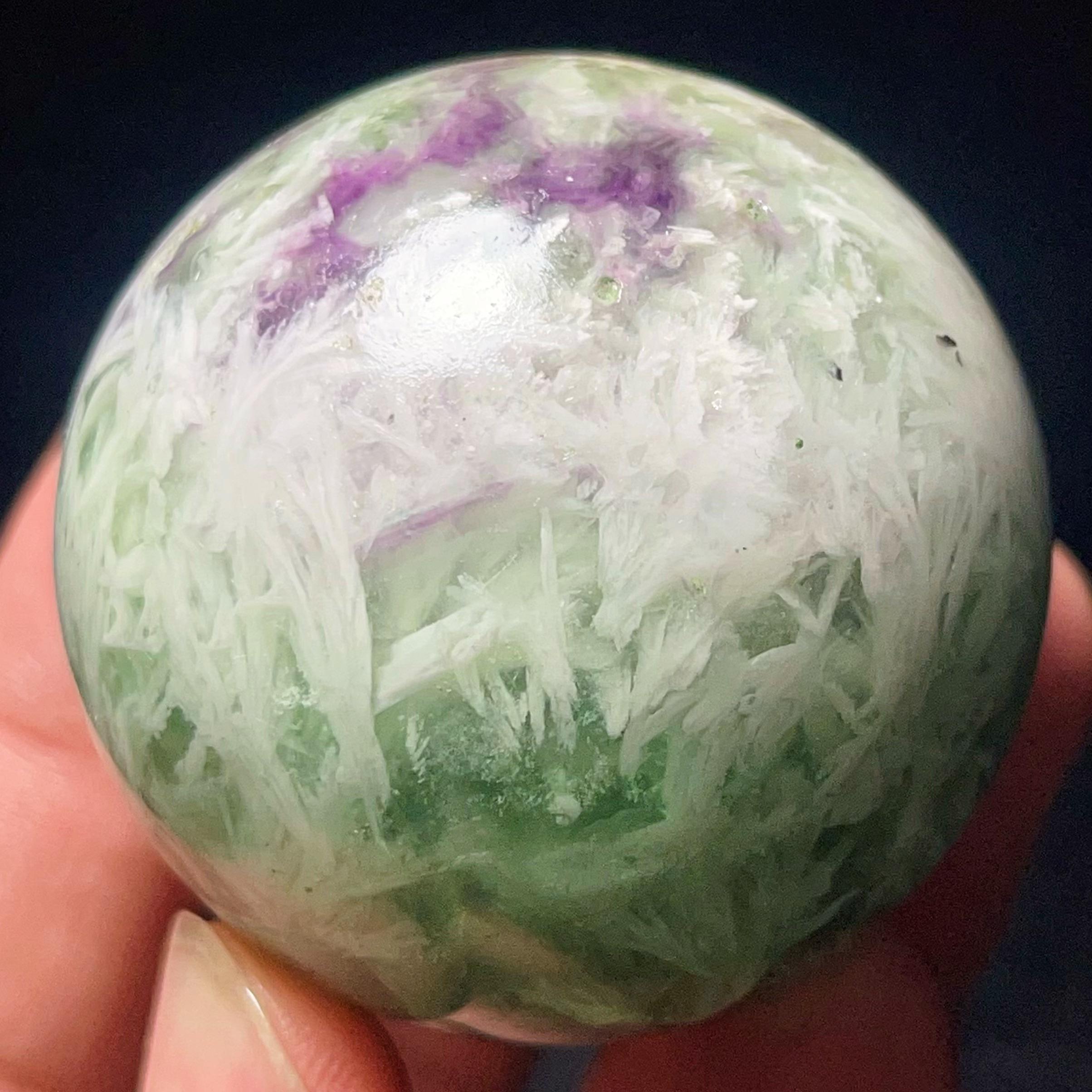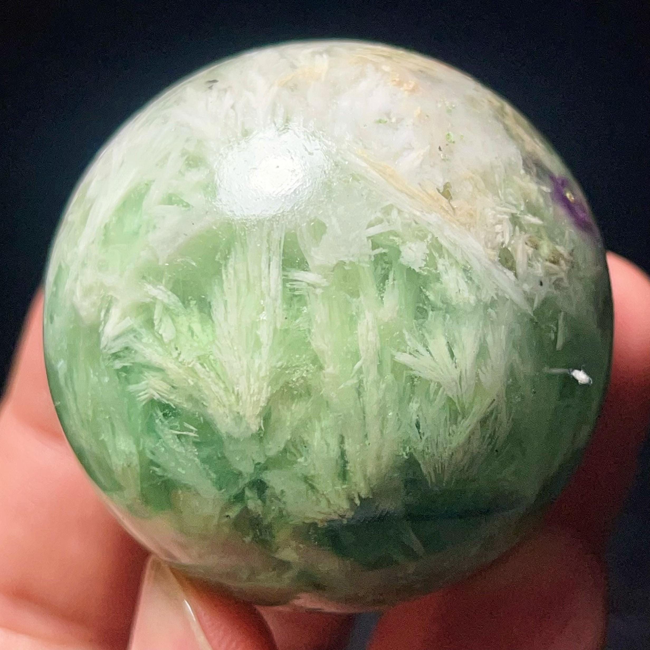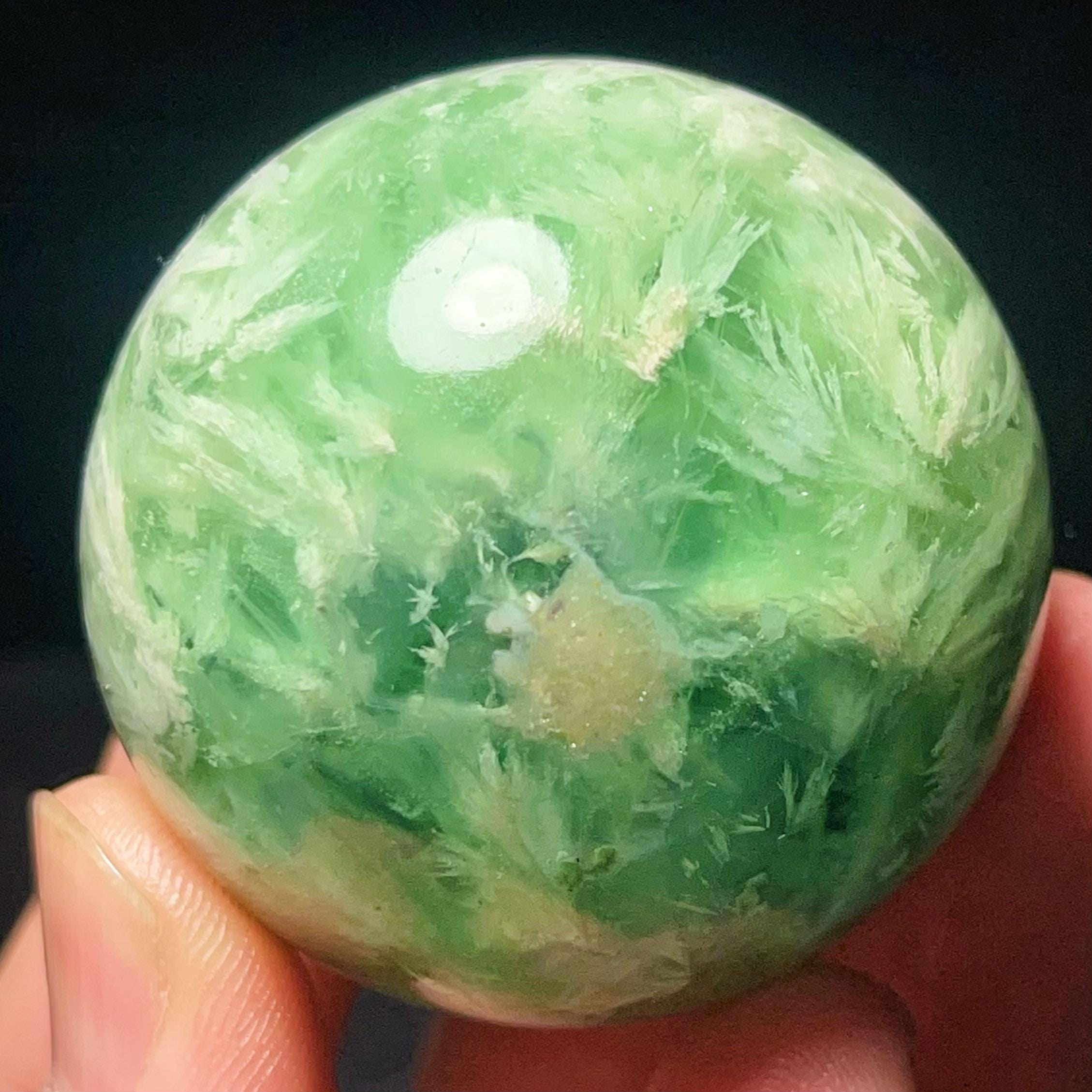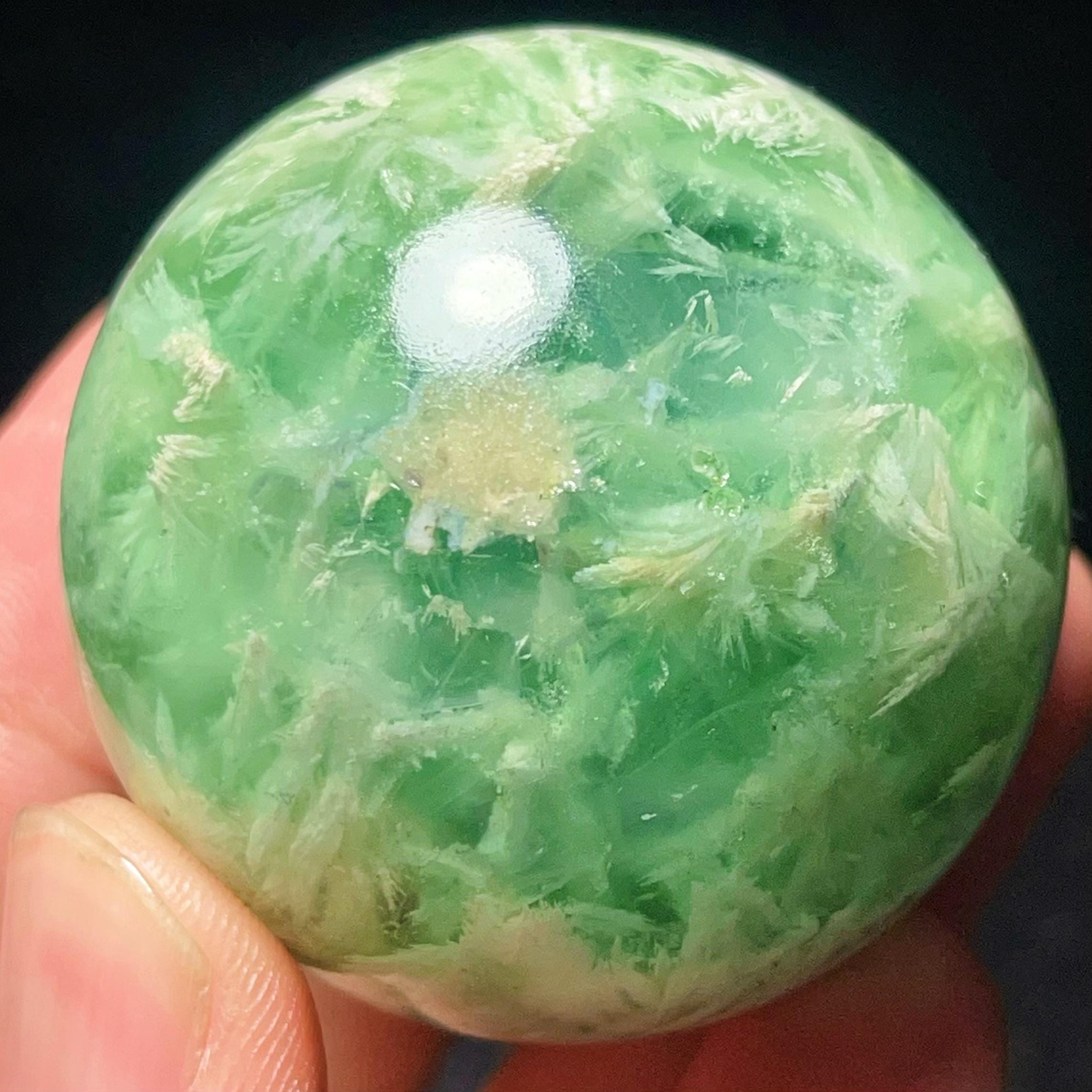Natural Feather Green Fluorite Sphere: Reiki Healing Crystal Ball L7652