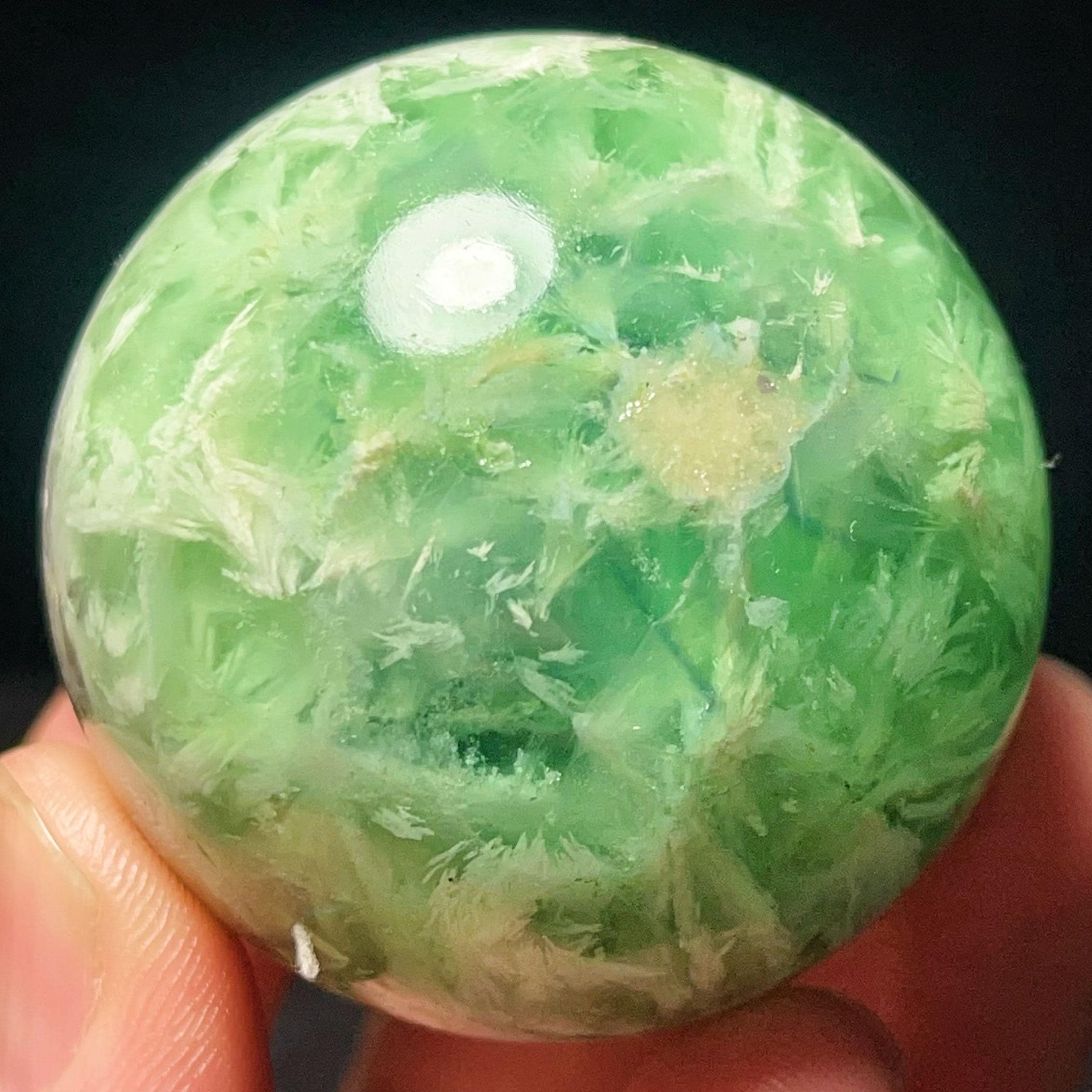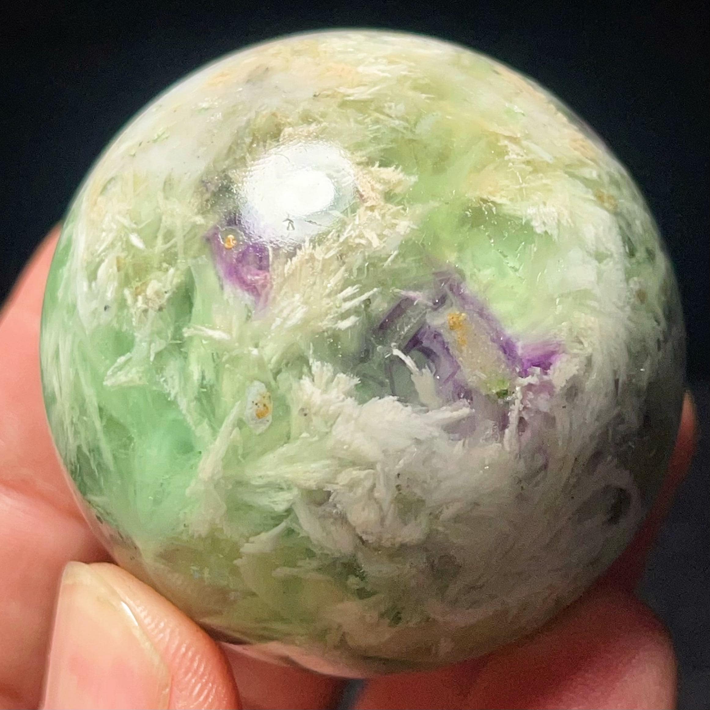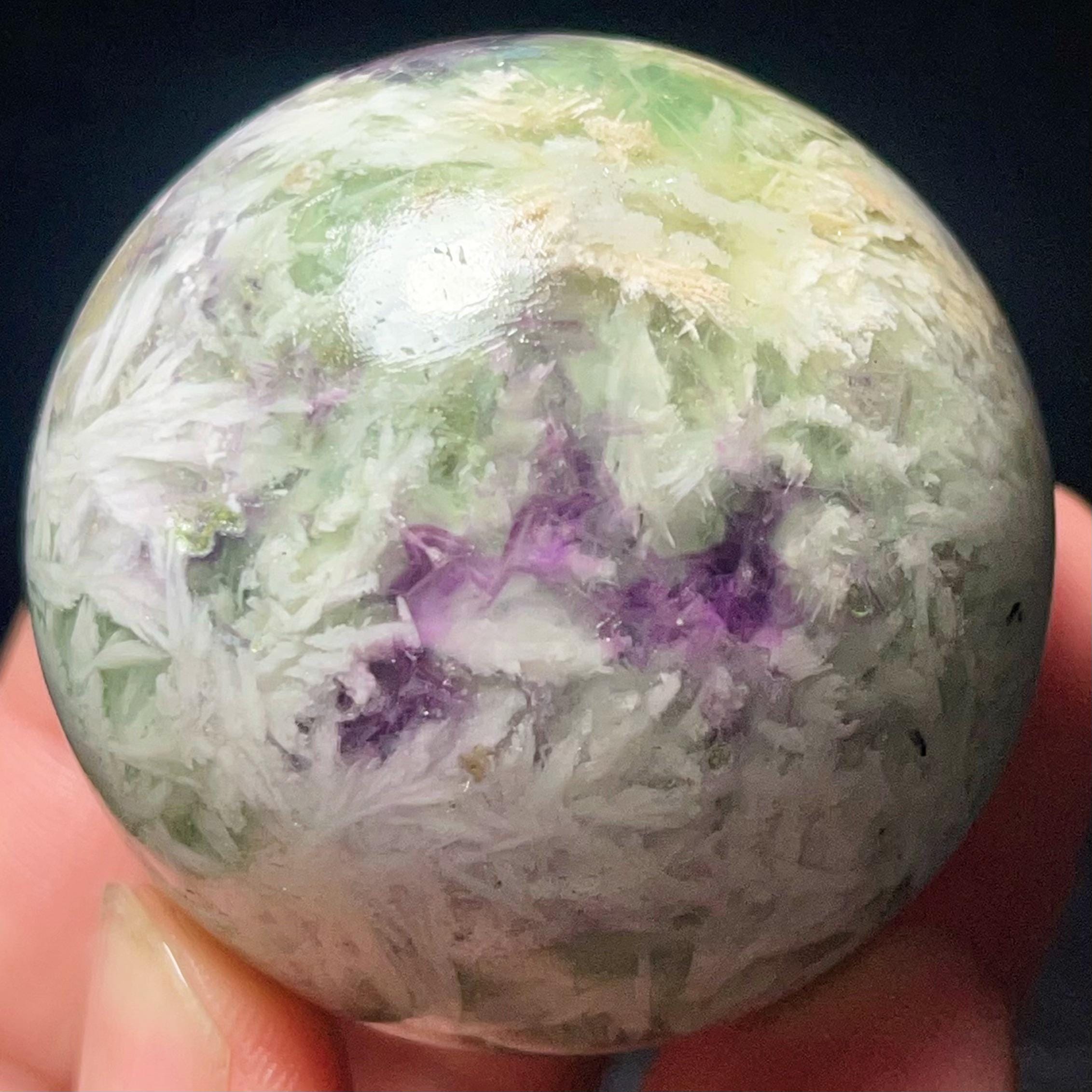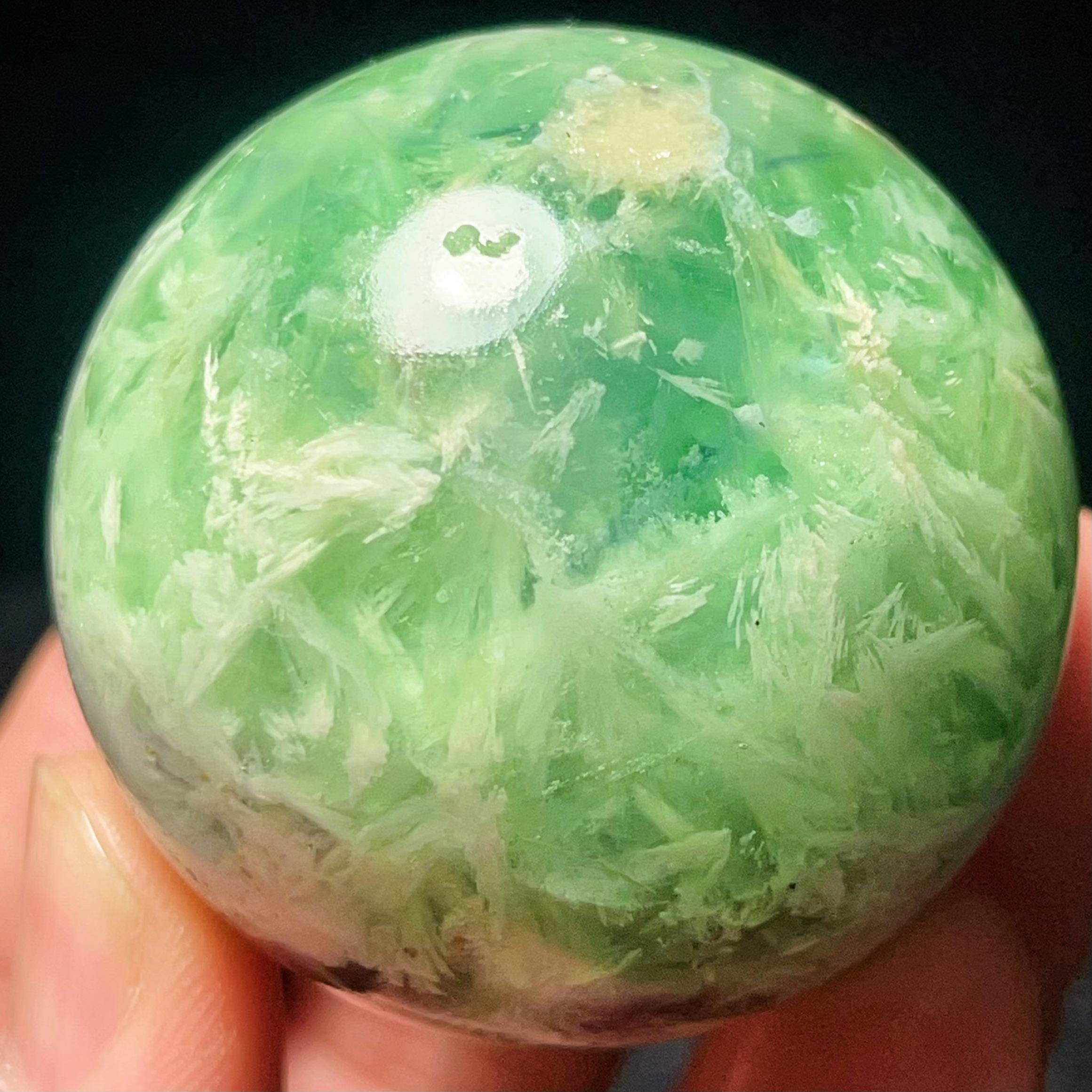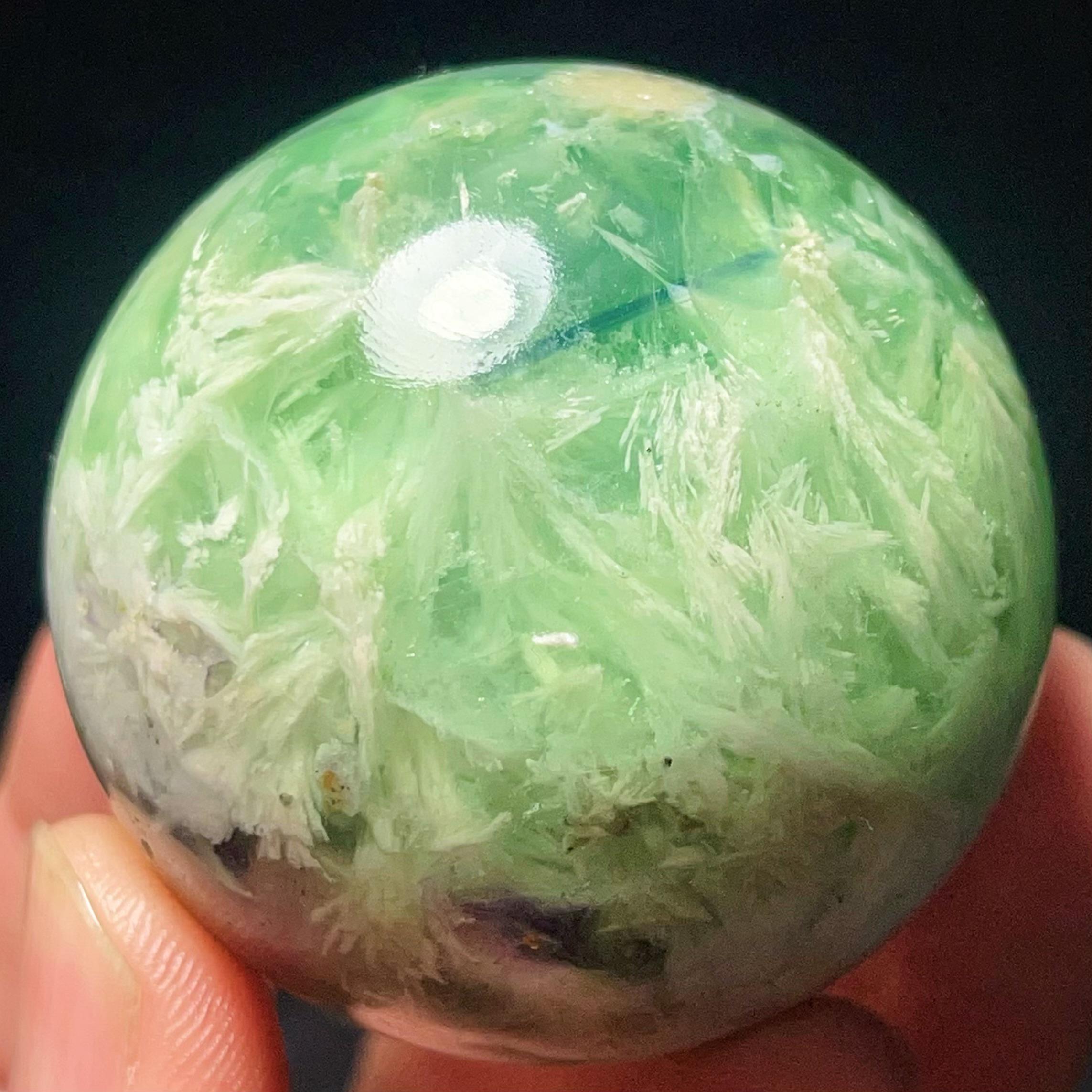 Natural Feather Green Fluorite Sphere: Reiki Healing Crystal Ball L7652