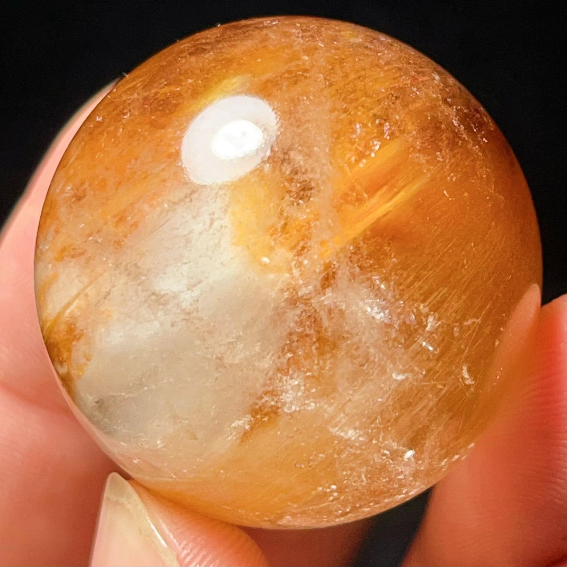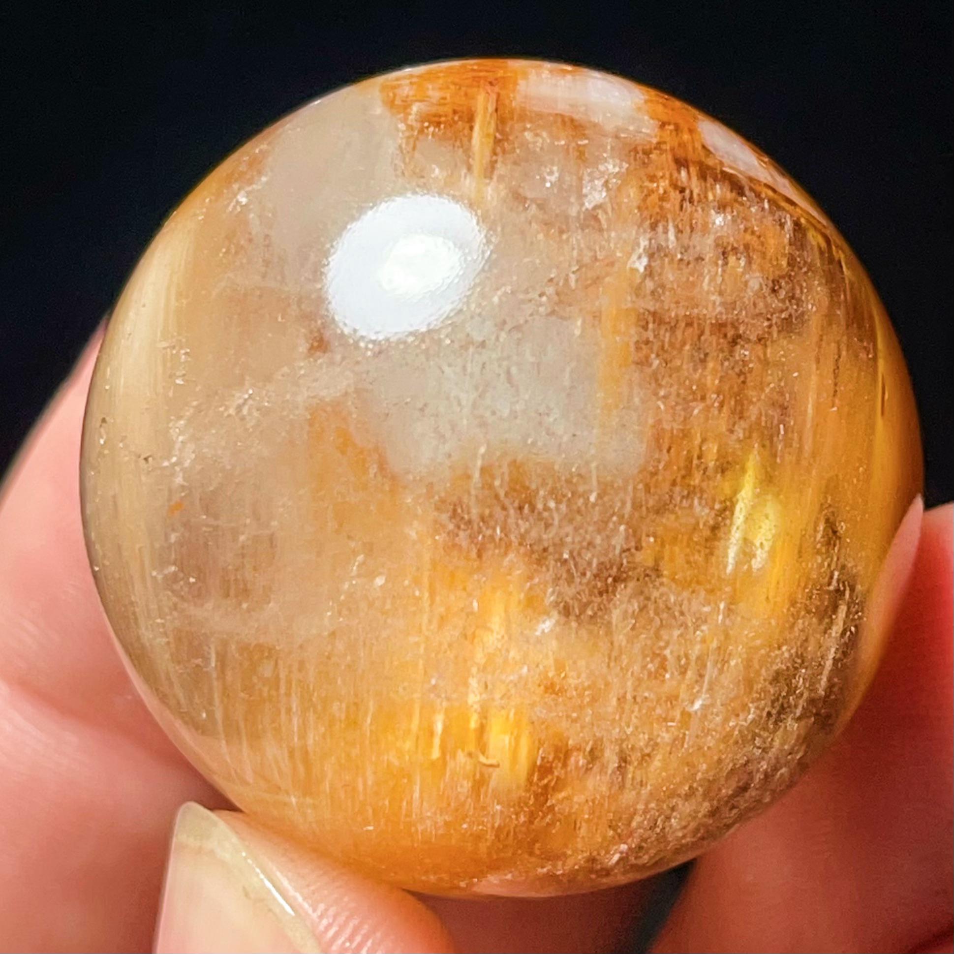 Rabbit hair Rutilated Quartz Crystal Sphere: Chakra Reiki Meditation Stone L7651