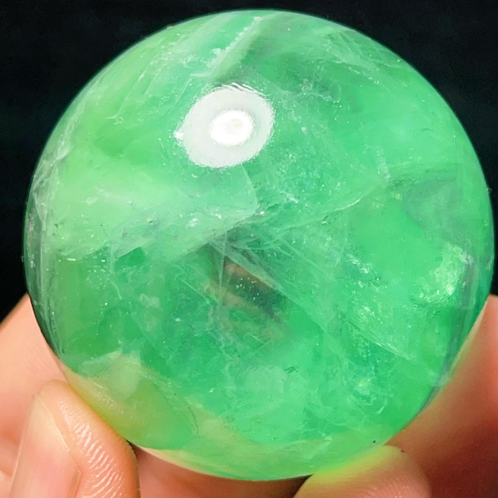 Natural Green Fluorite Sphere: Reiki Healing Crystal Ball L7783
