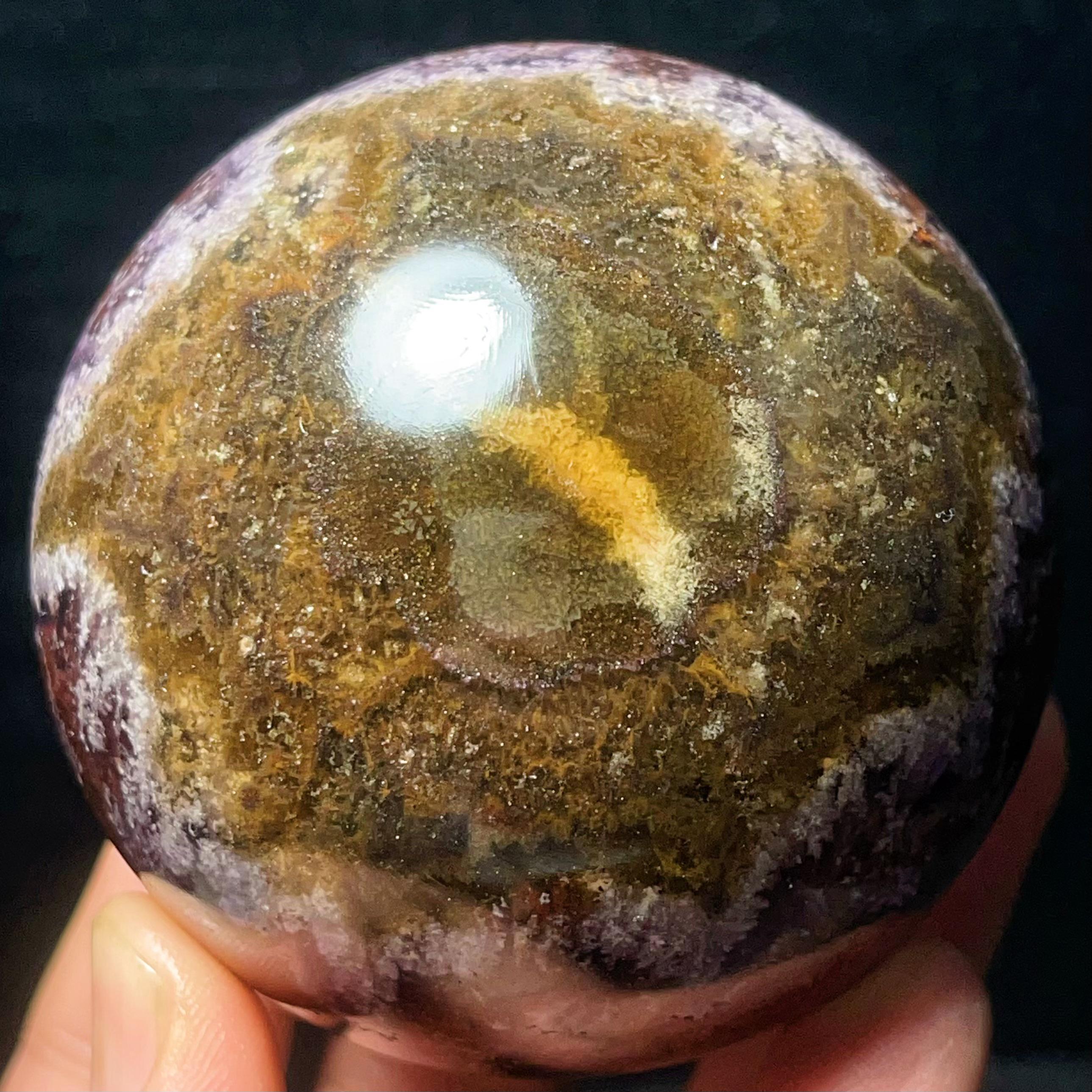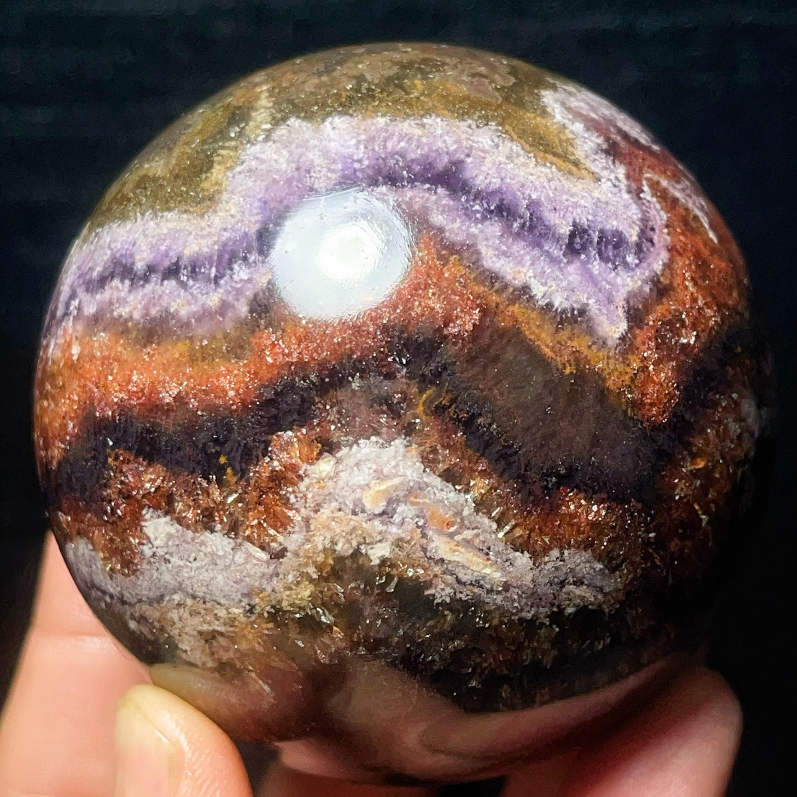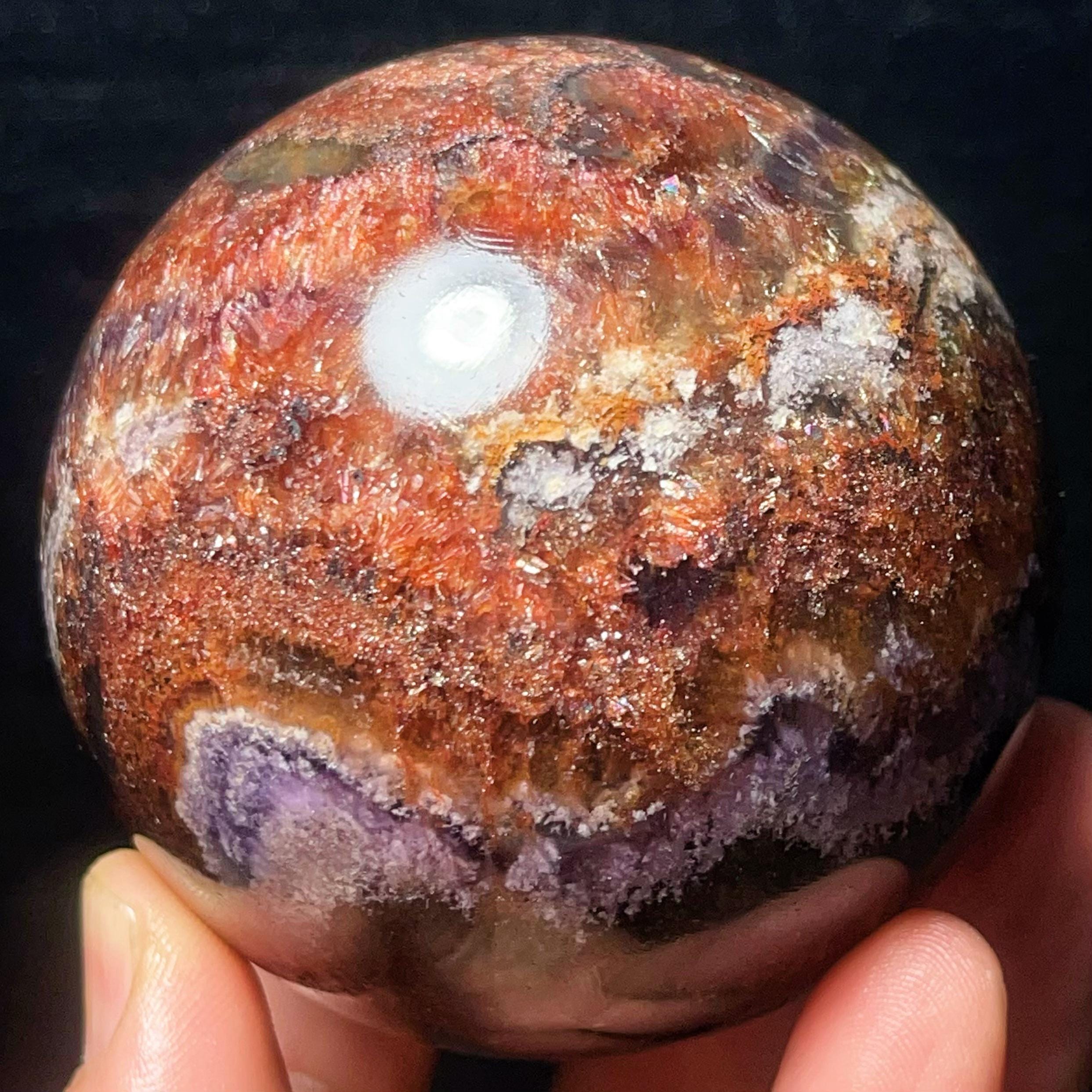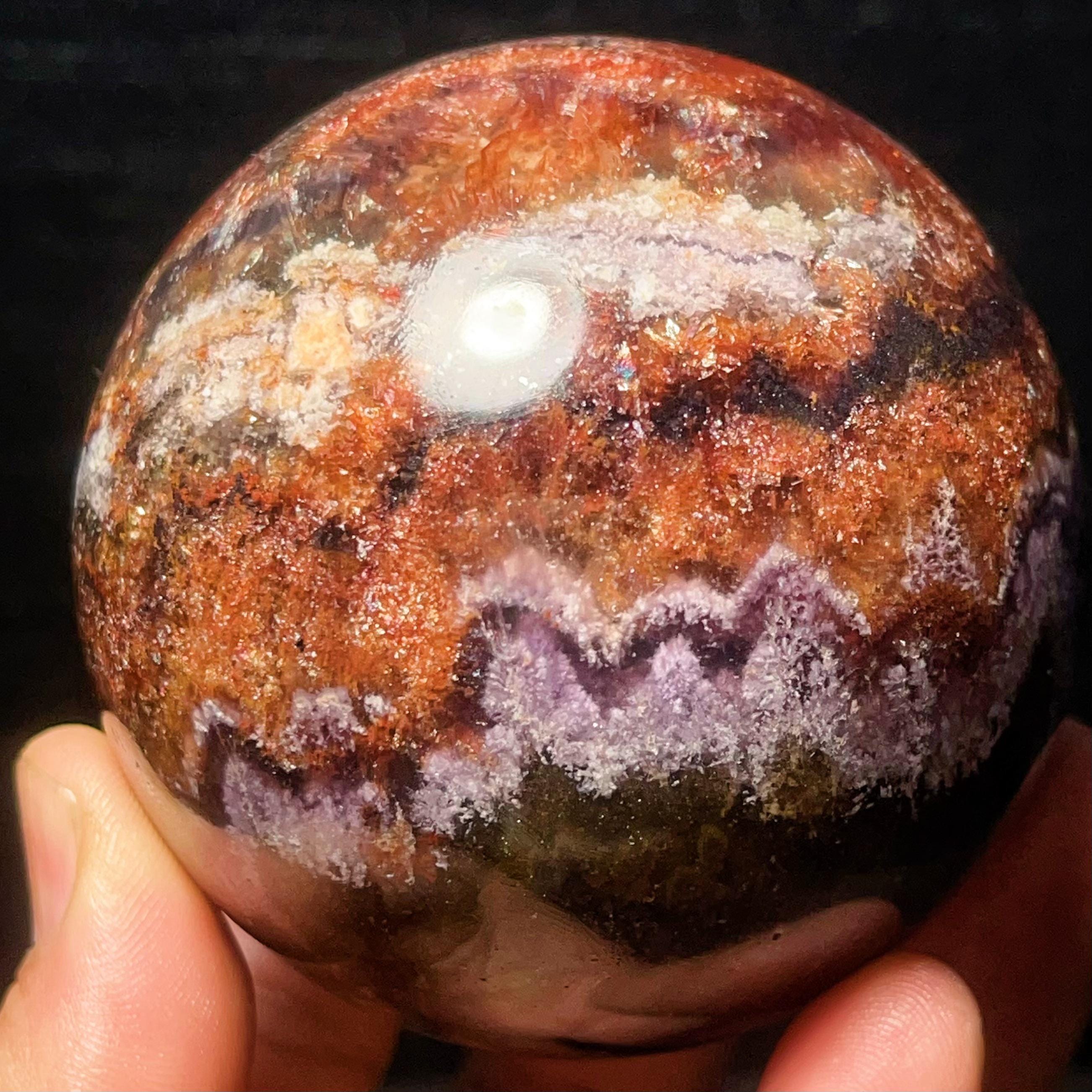 Natural Aurora Super 7 Fluorite Symbiotic Mineral Crystal Ghost Ball Sphere: Reiki Healing Crystal L7793