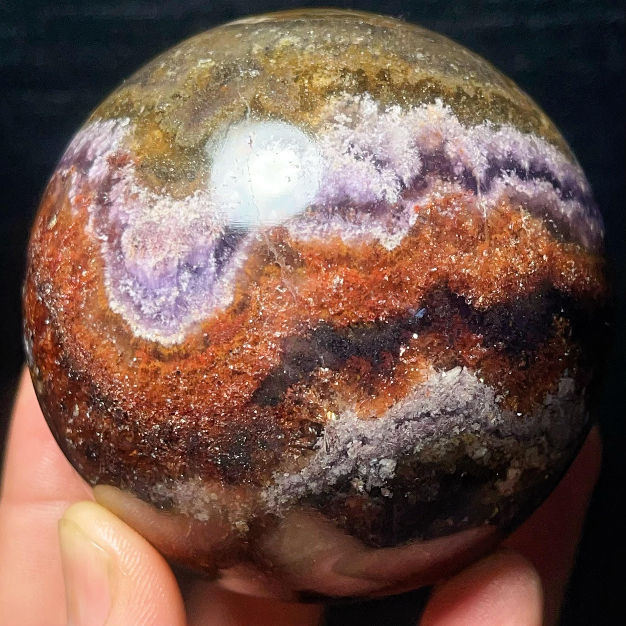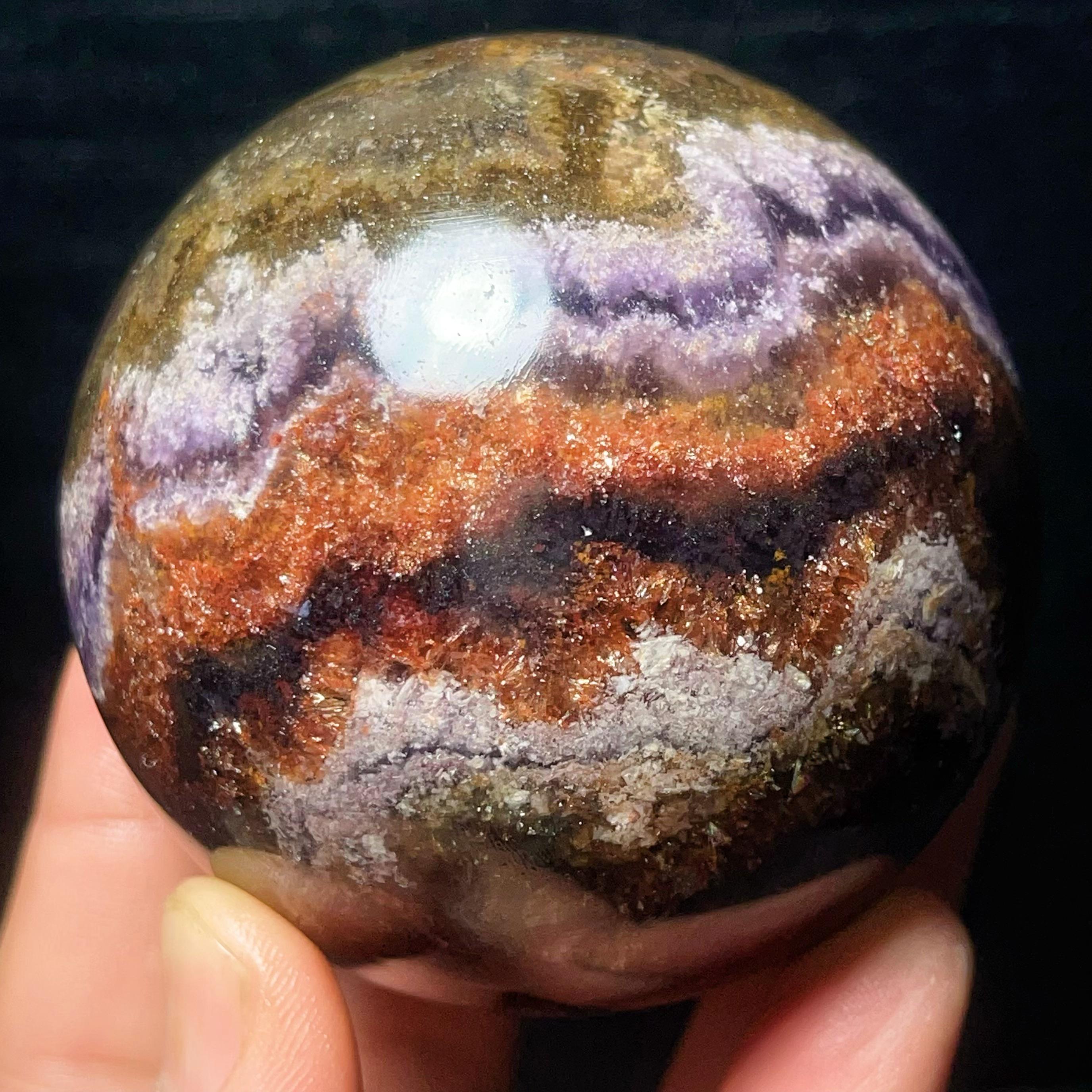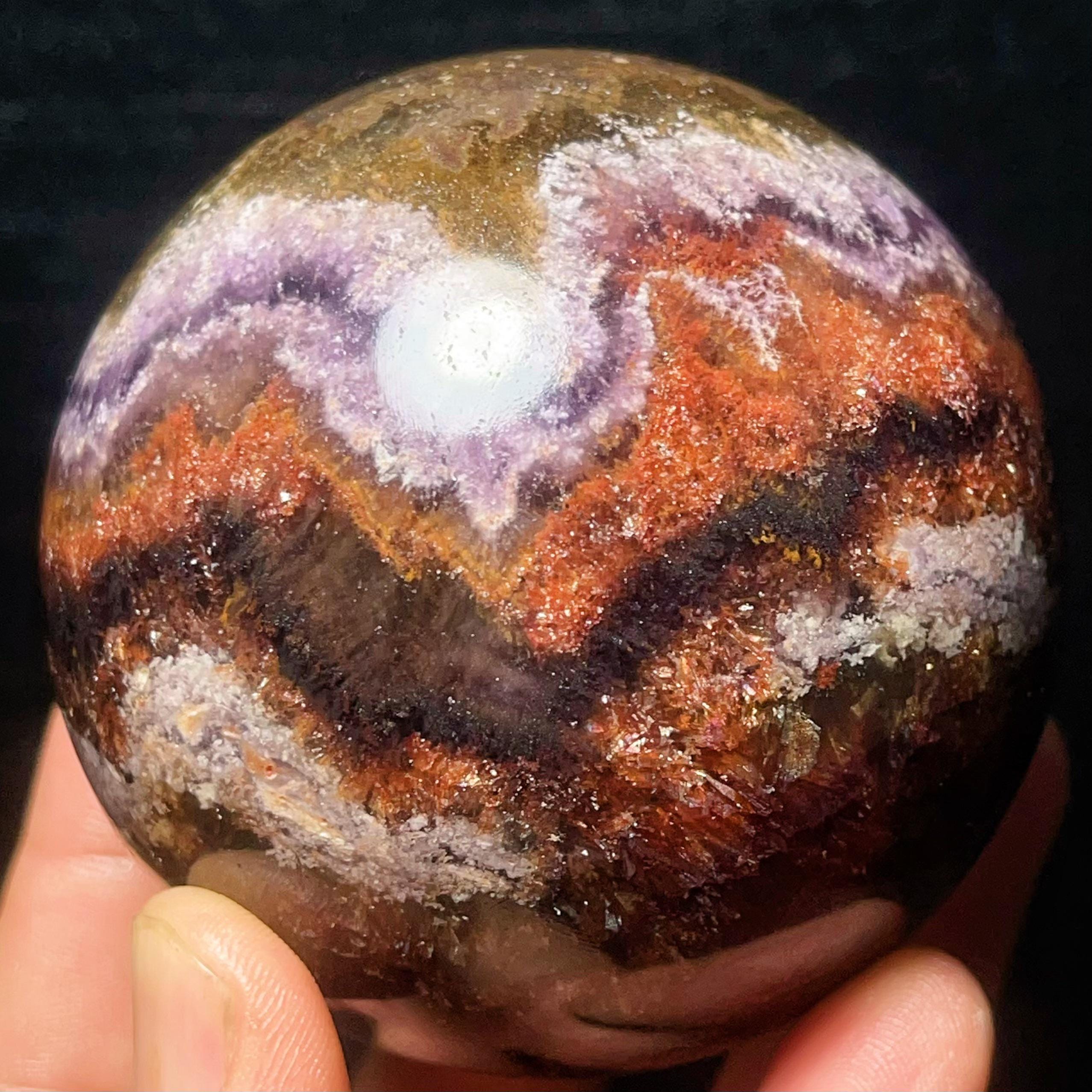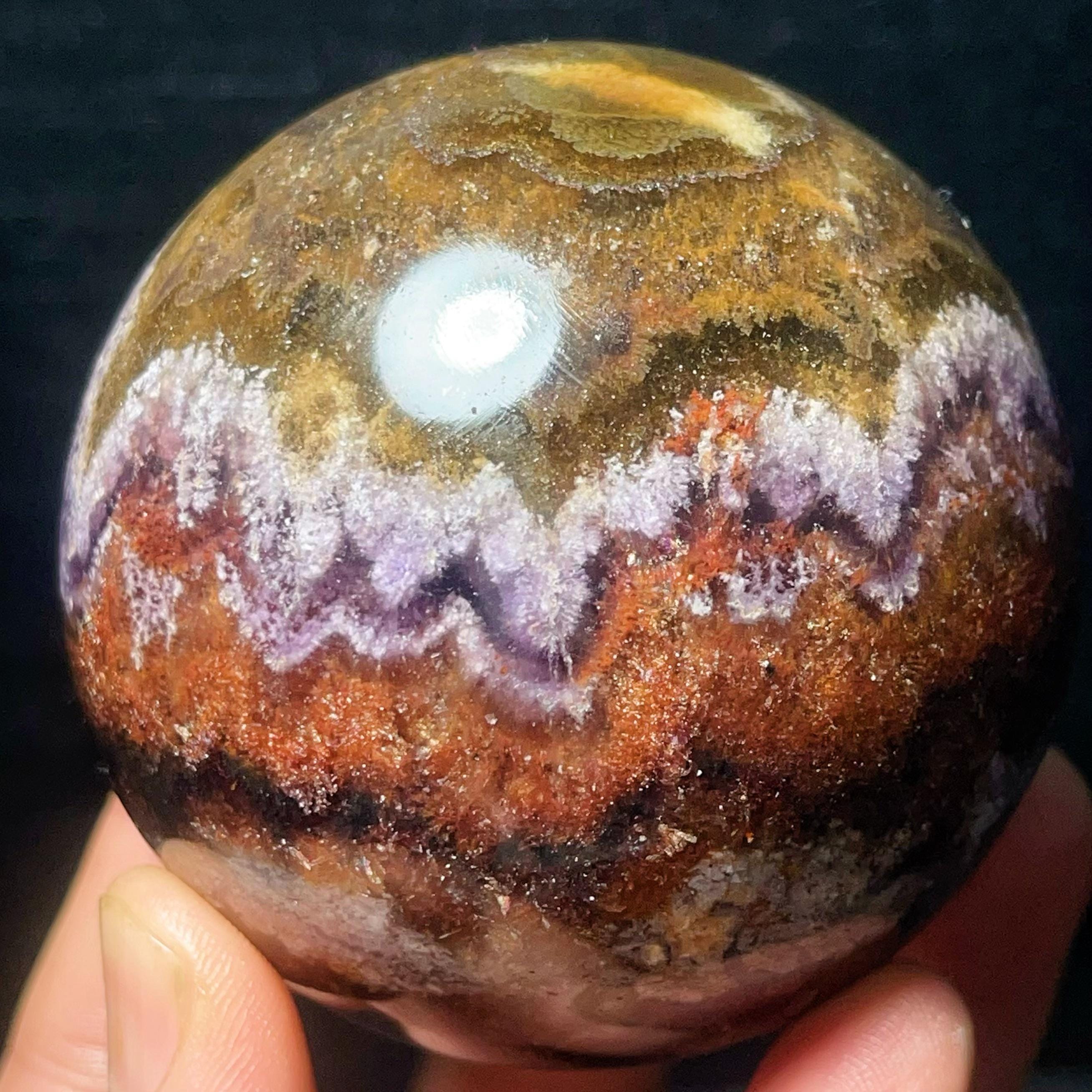 Natural Aurora Super 7 Fluorite Symbiotic Mineral Crystal Ghost Ball Sphere: Reiki Healing Crystal L7793