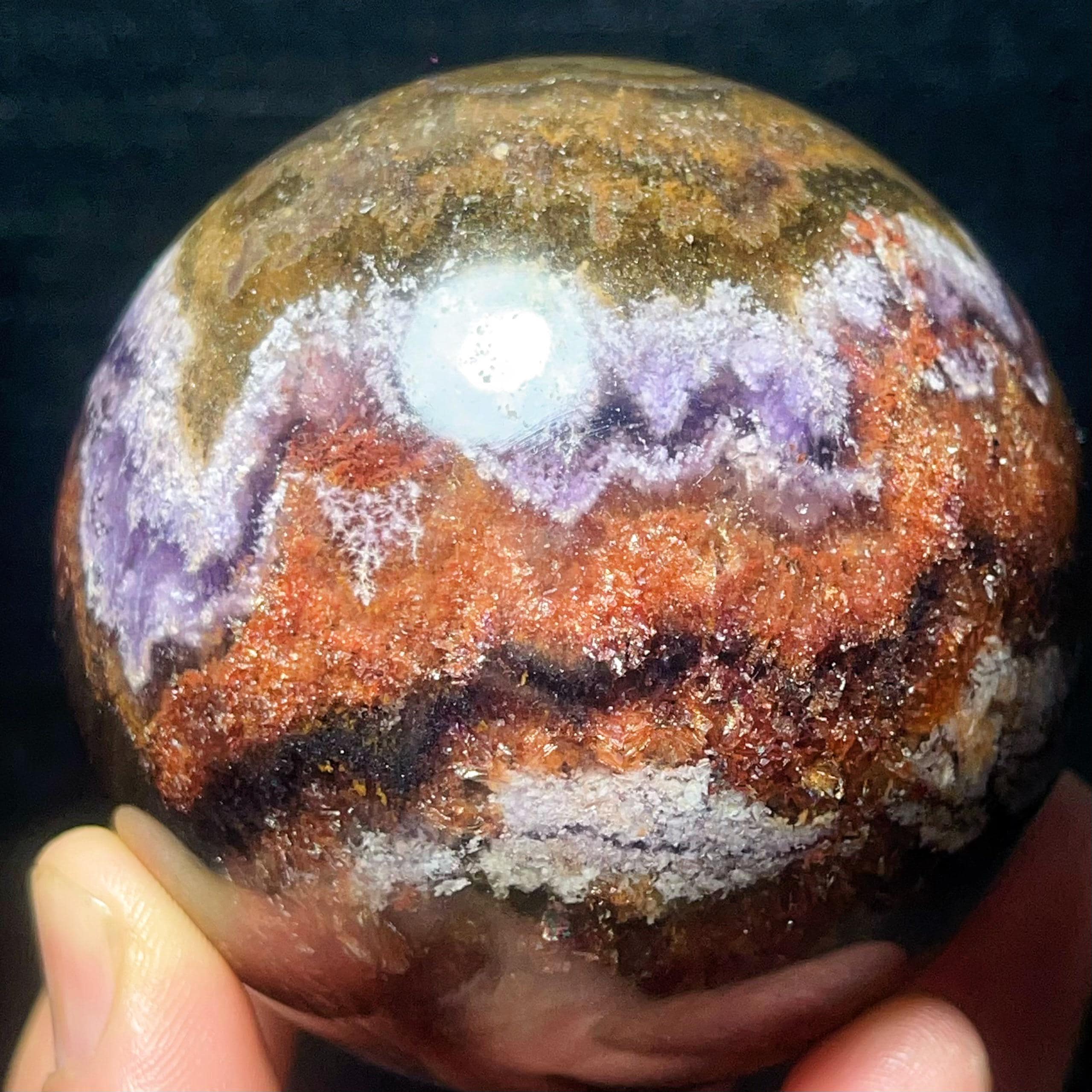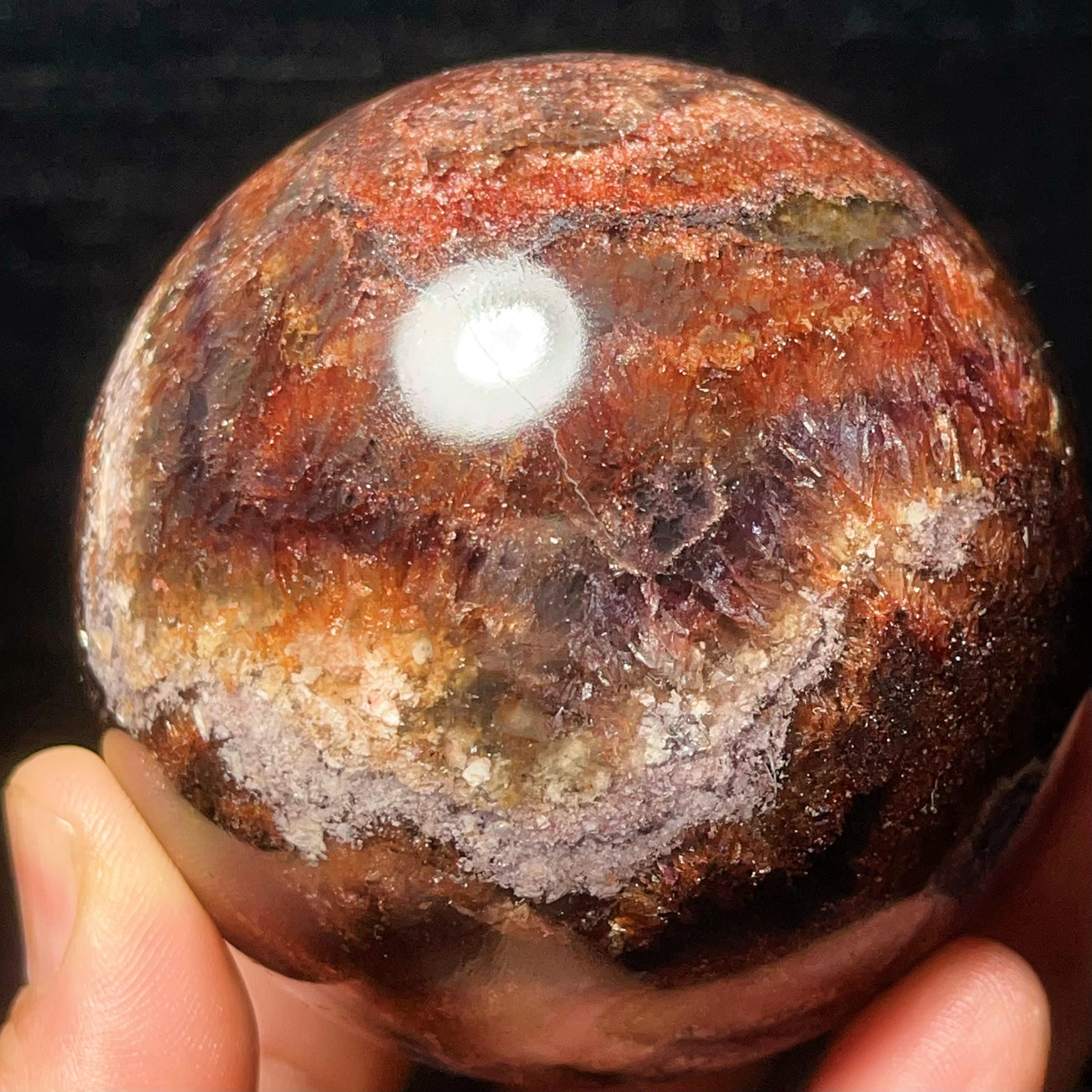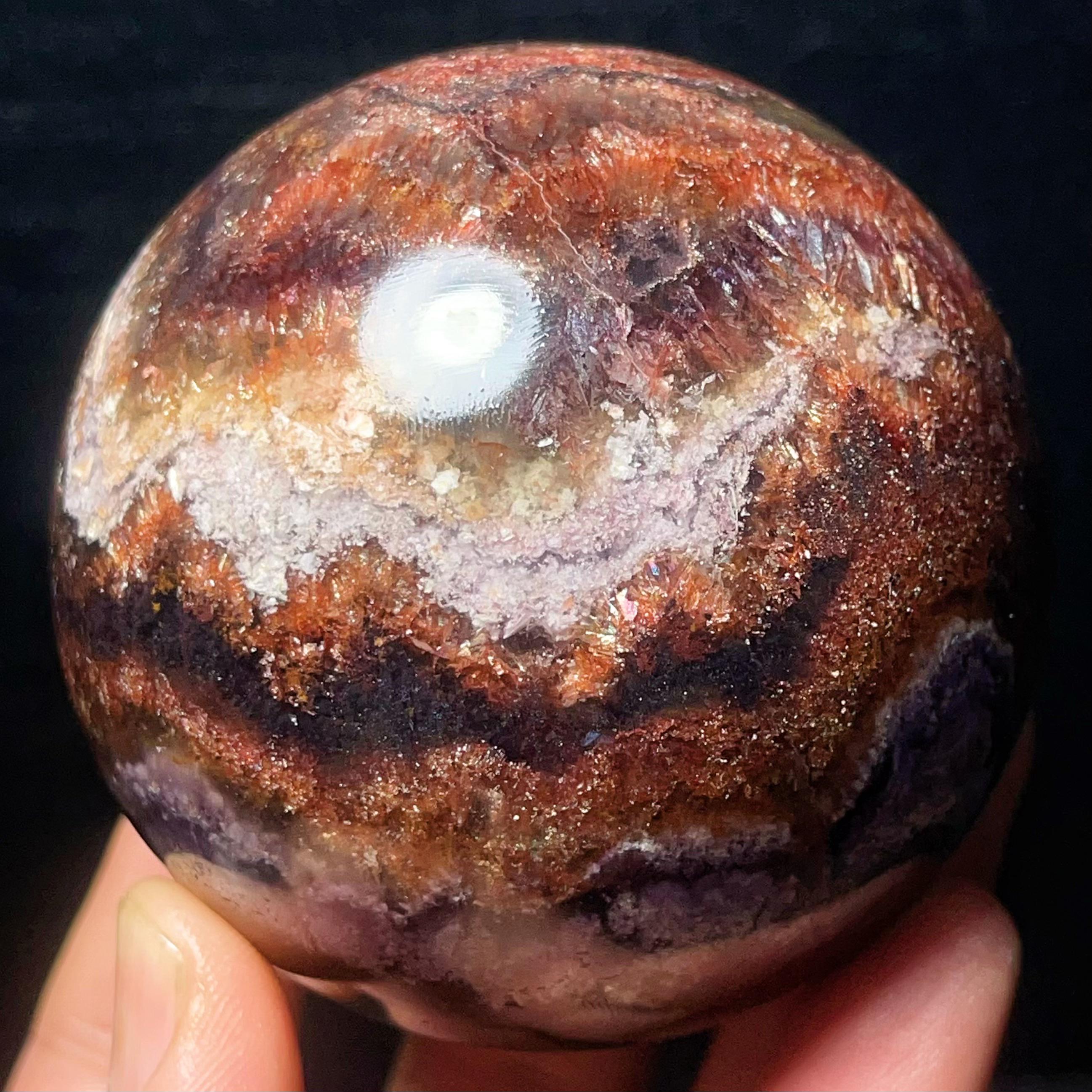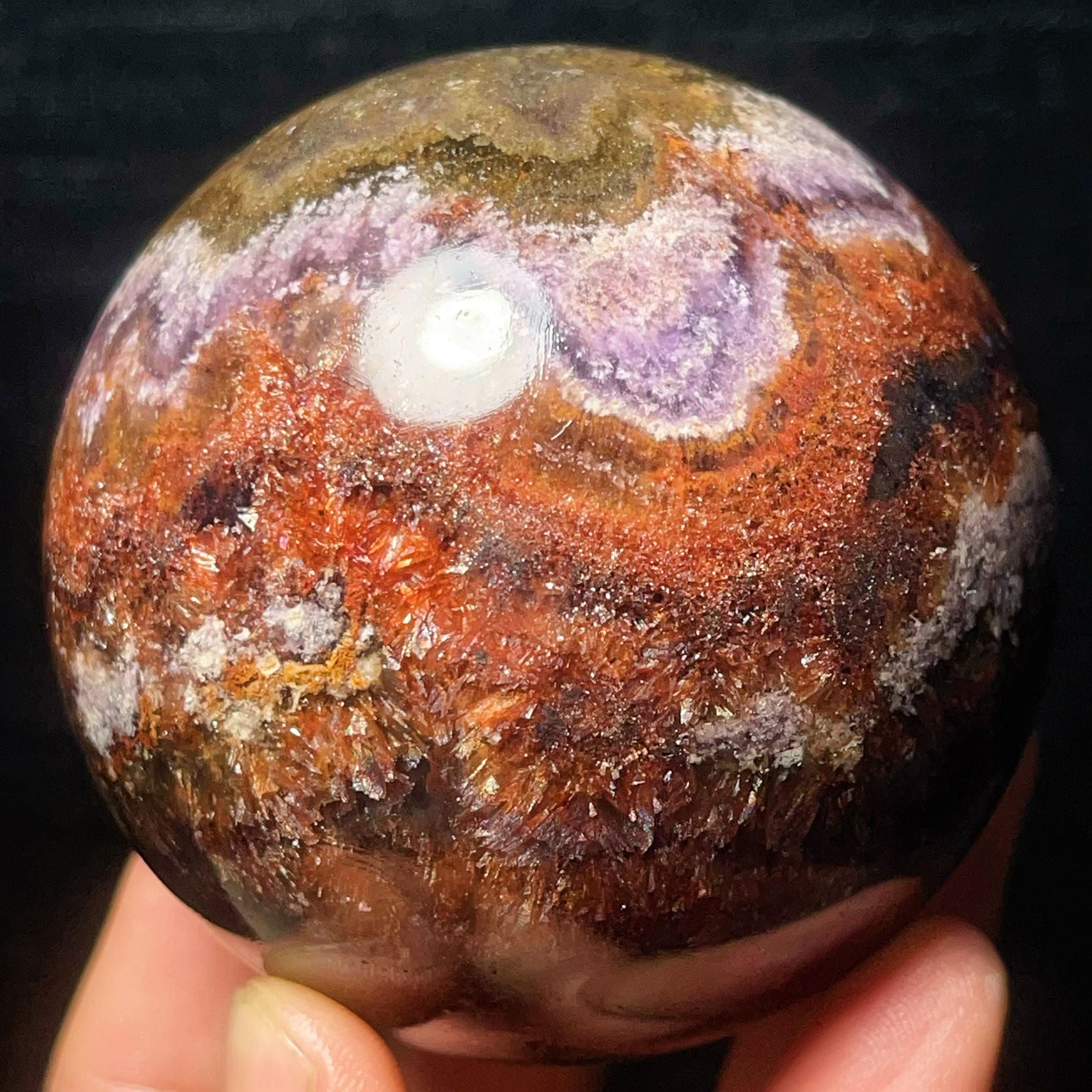 Natural Aurora Super 7 Fluorite Symbiotic Mineral Crystal Ghost Ball Sphere: Reiki Healing Crystal L7793