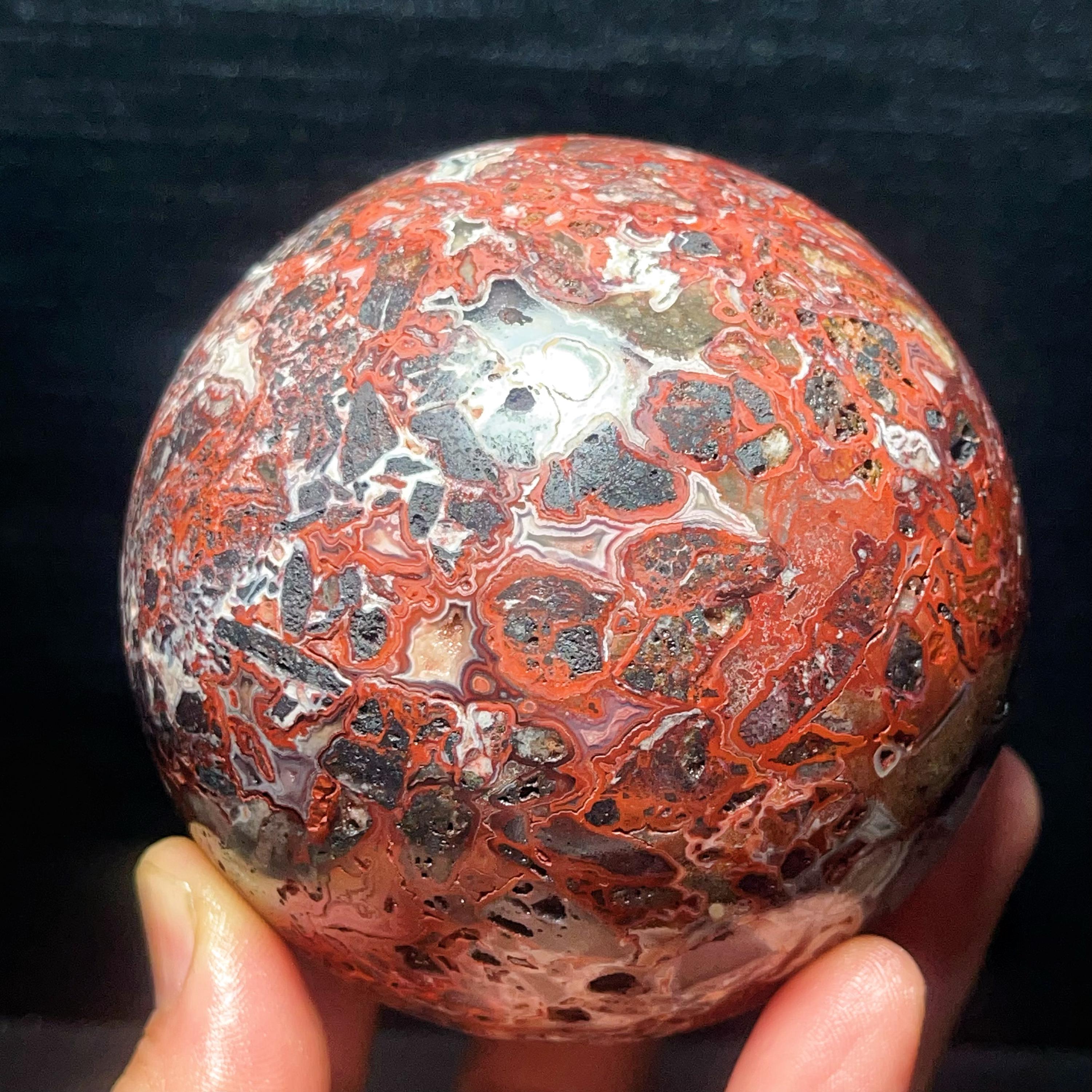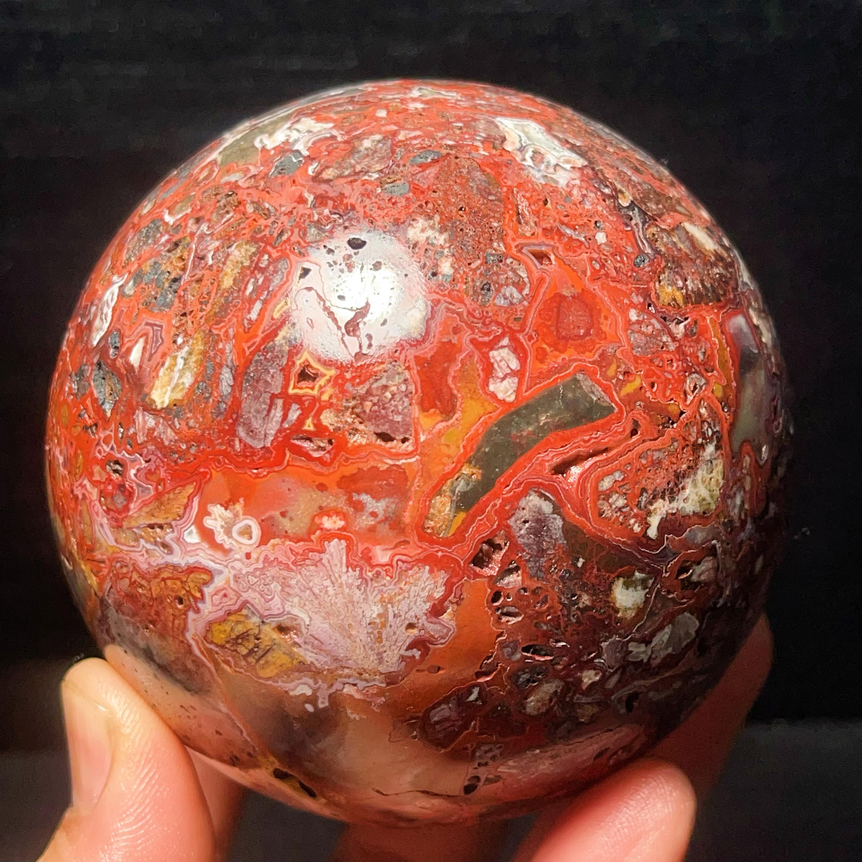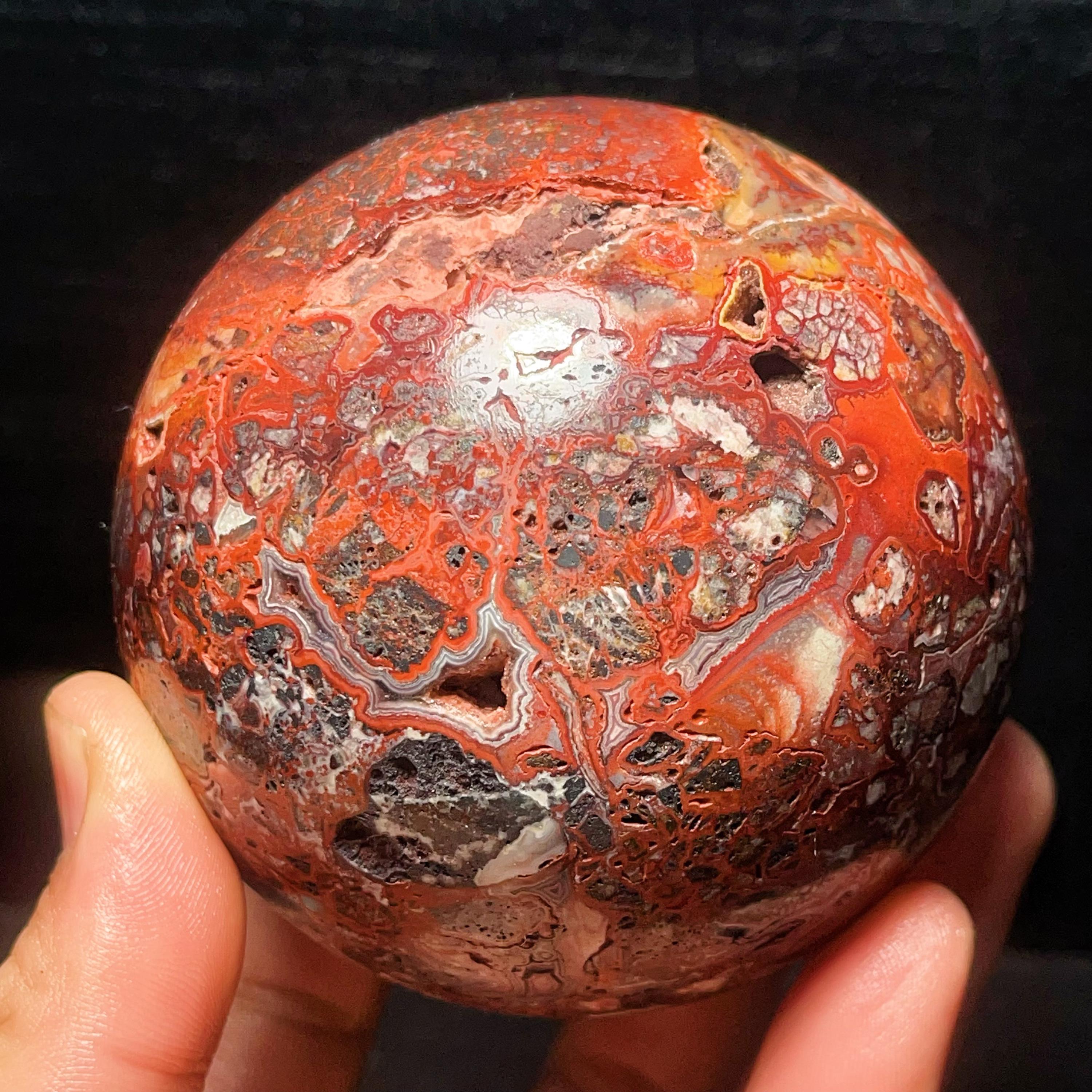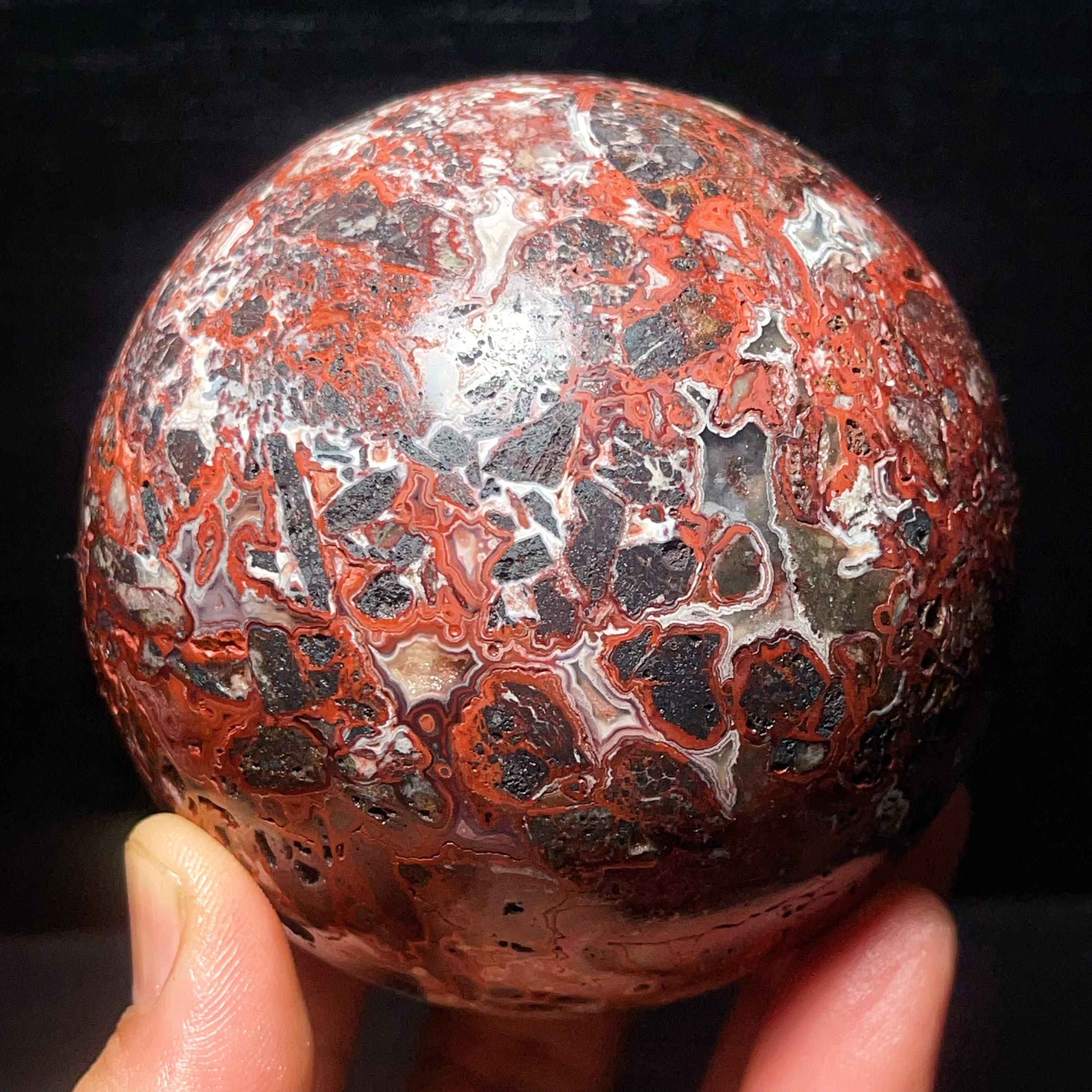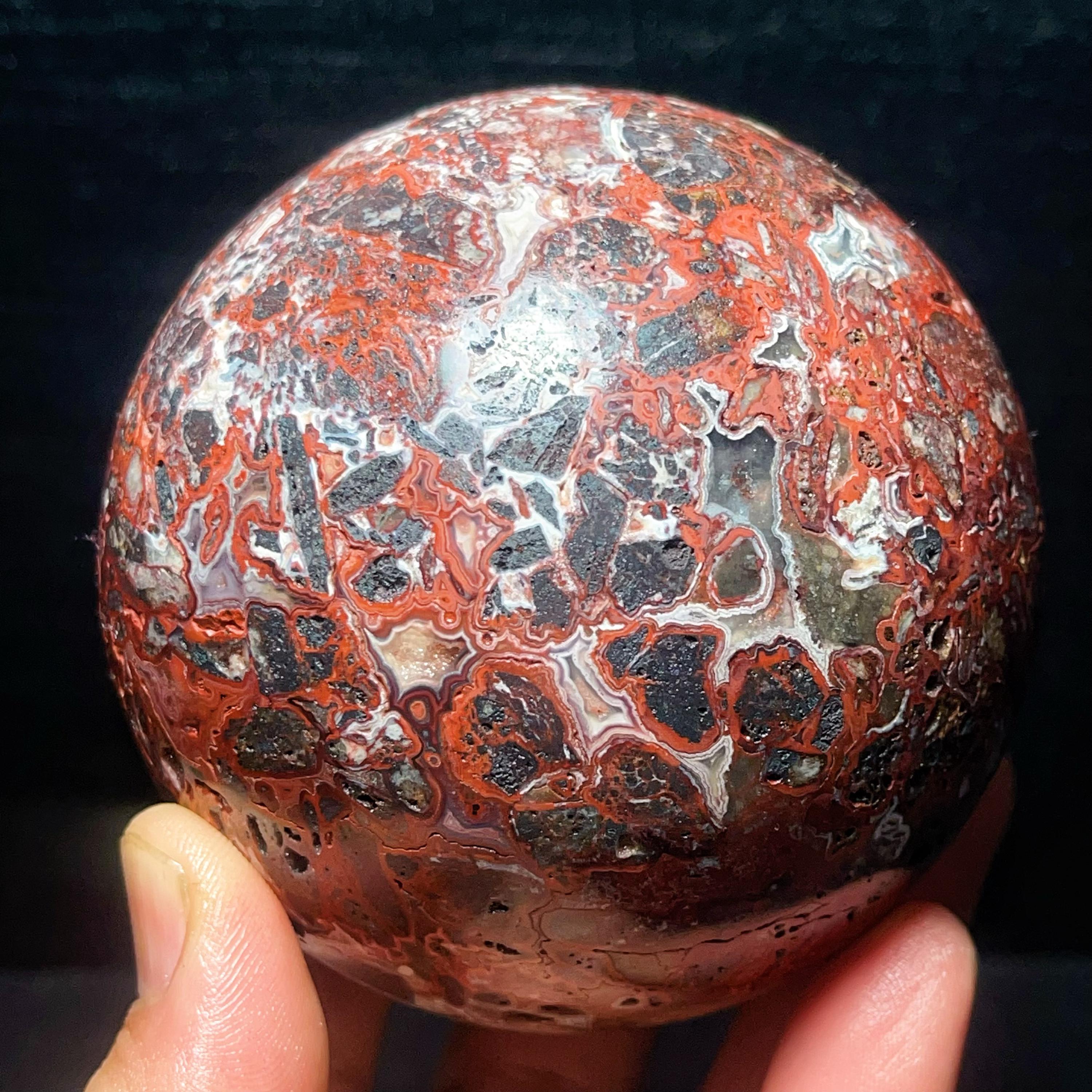Natural Crazy Agate Sphere : Crazy Onyx Sardonyx Palm Stone L7803