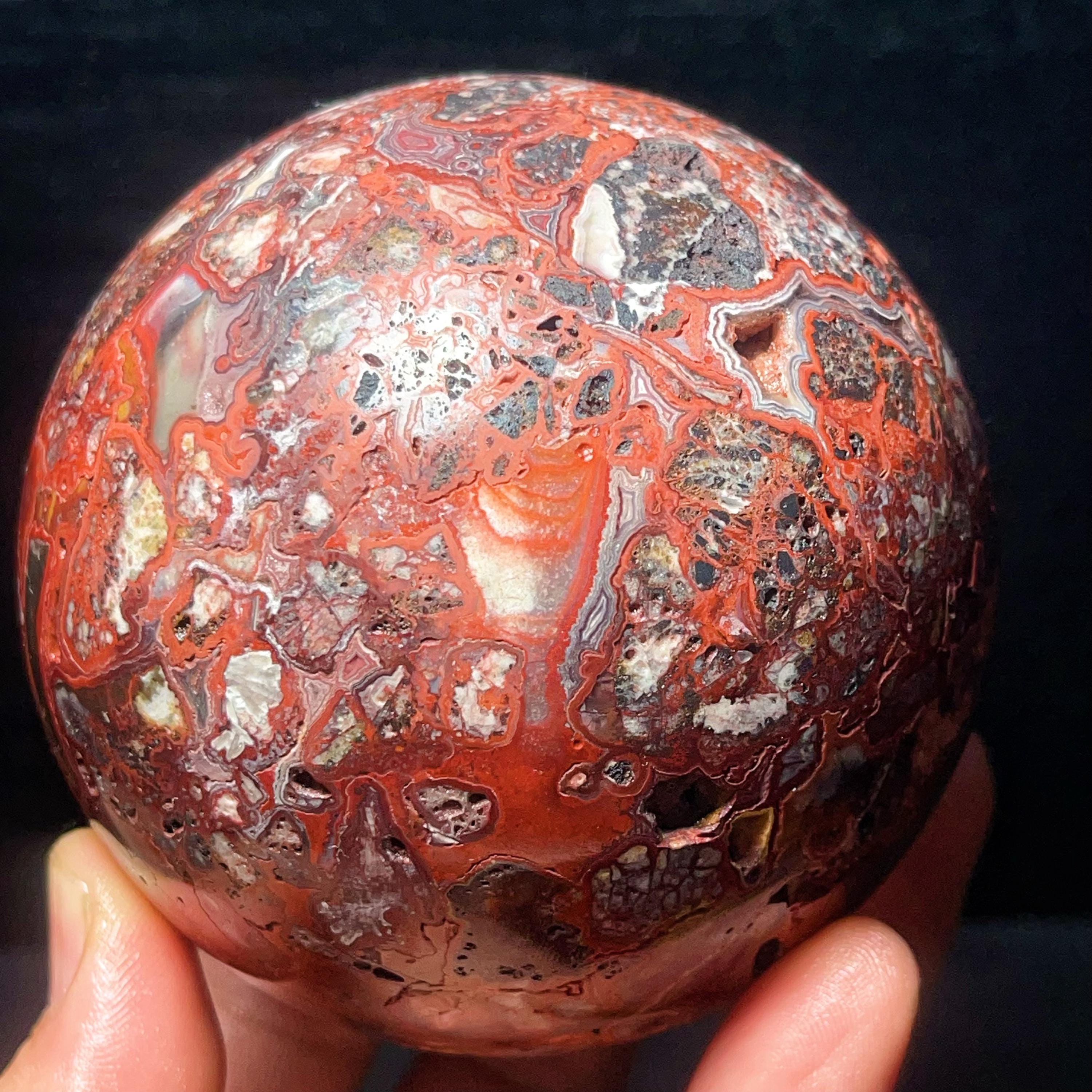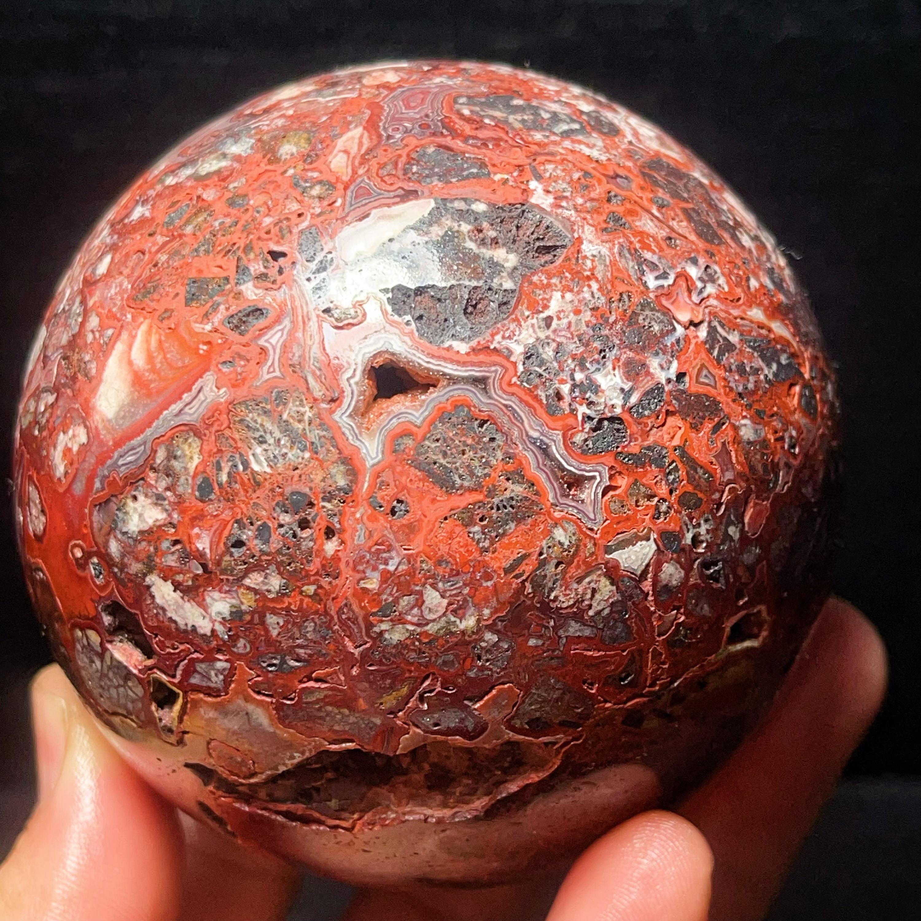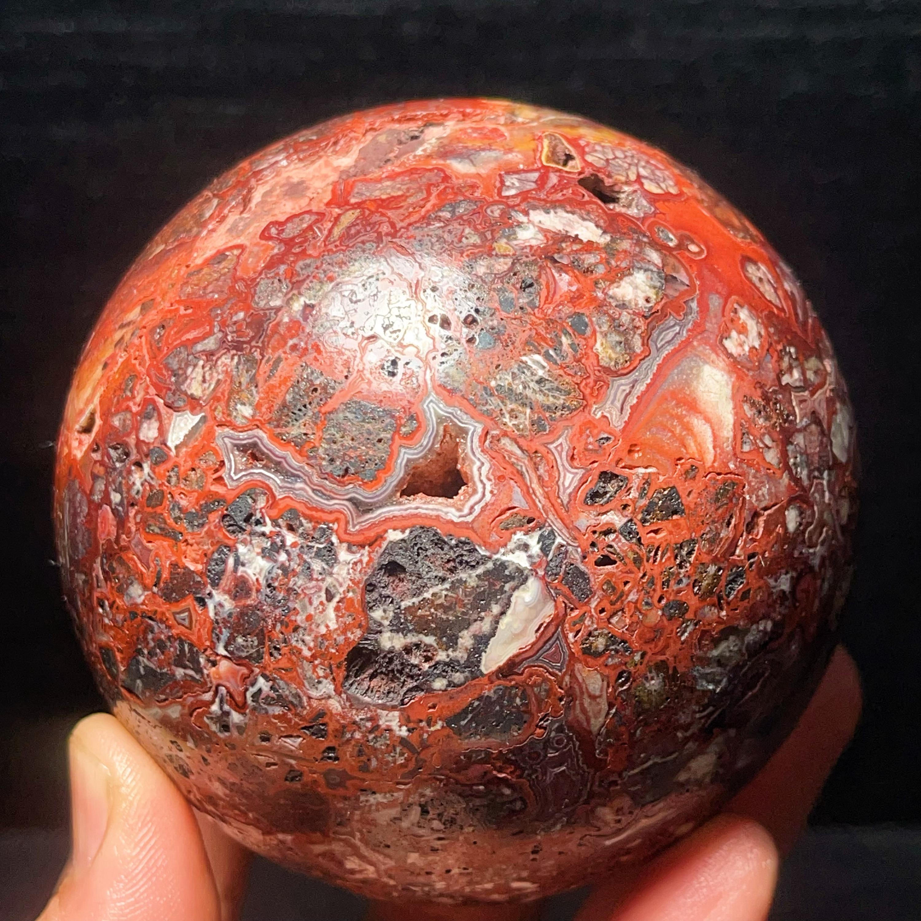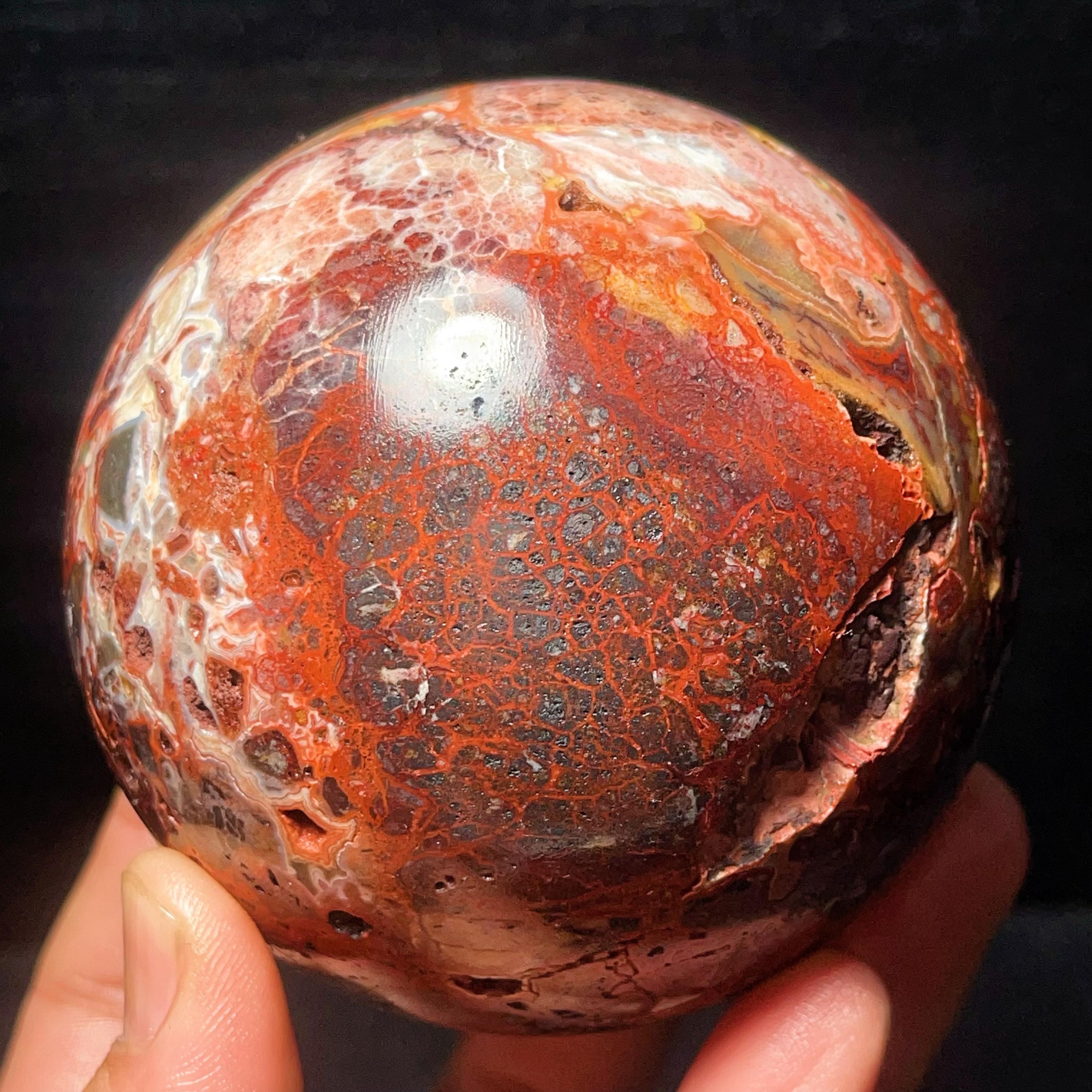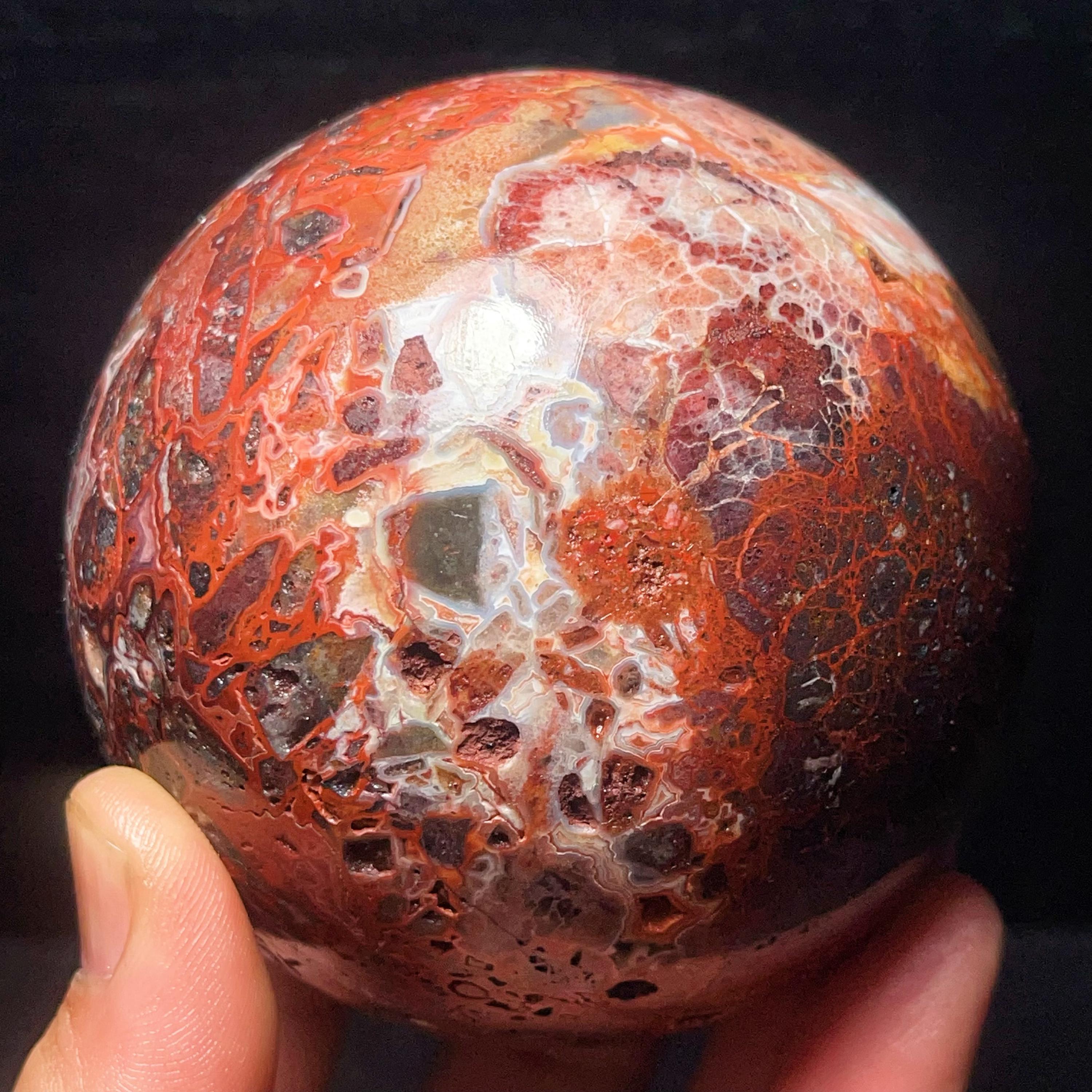 Natural Crazy Agate Sphere : Crazy Onyx Sardonyx Palm Stone L7803