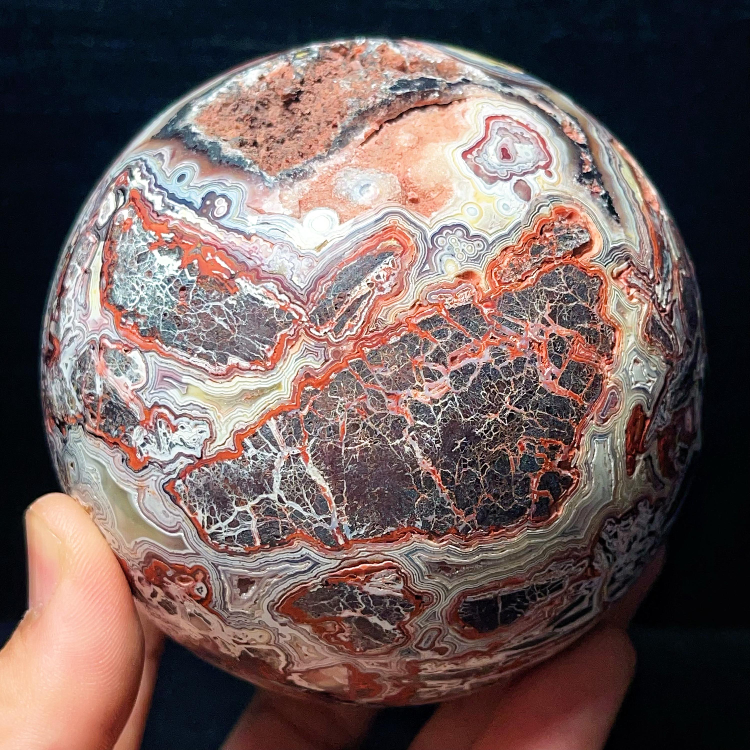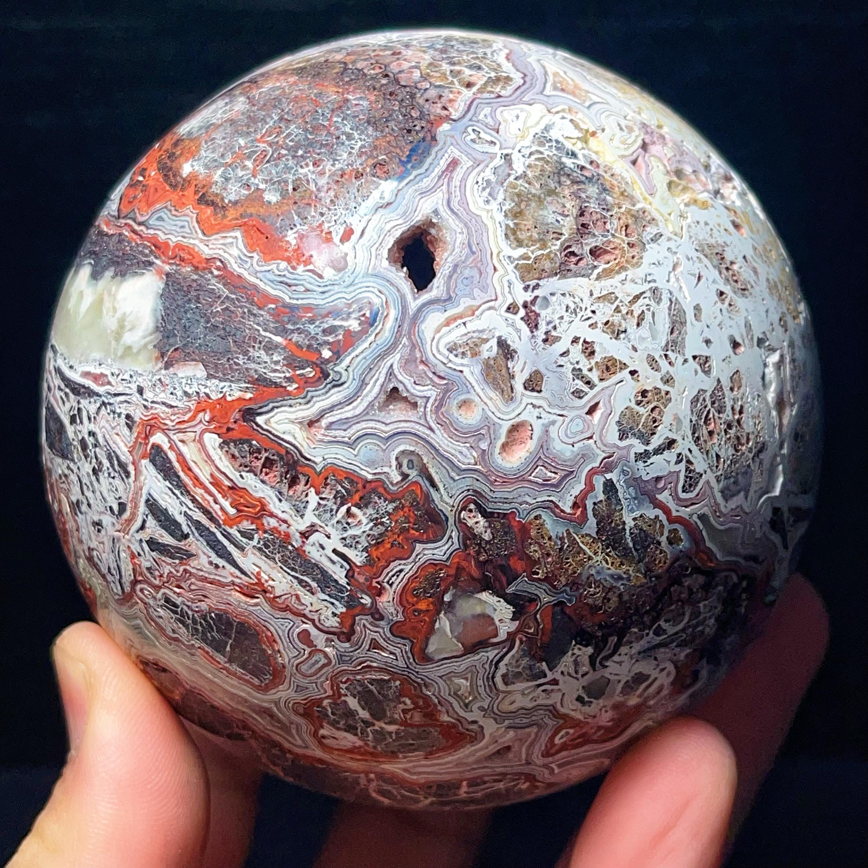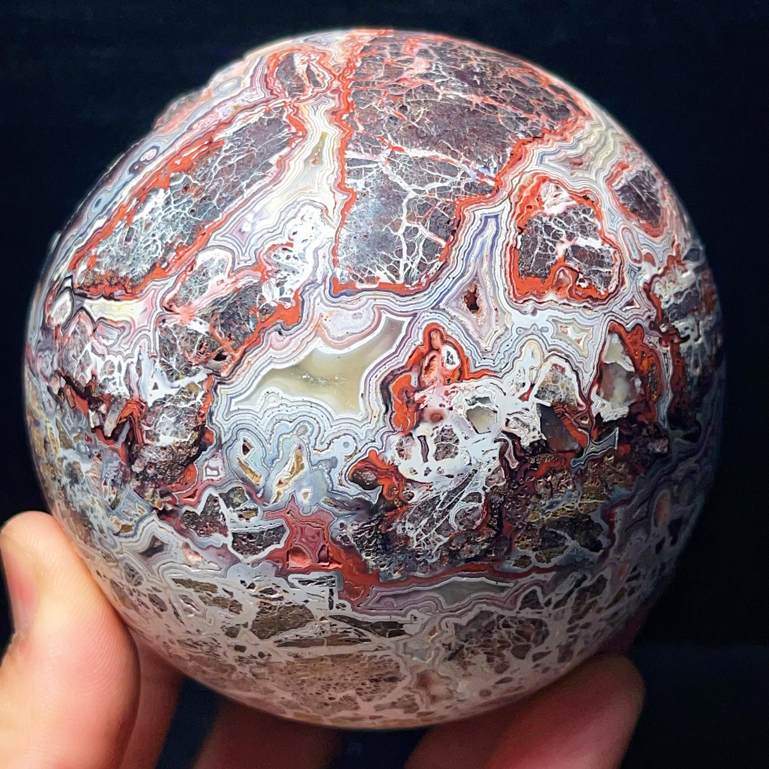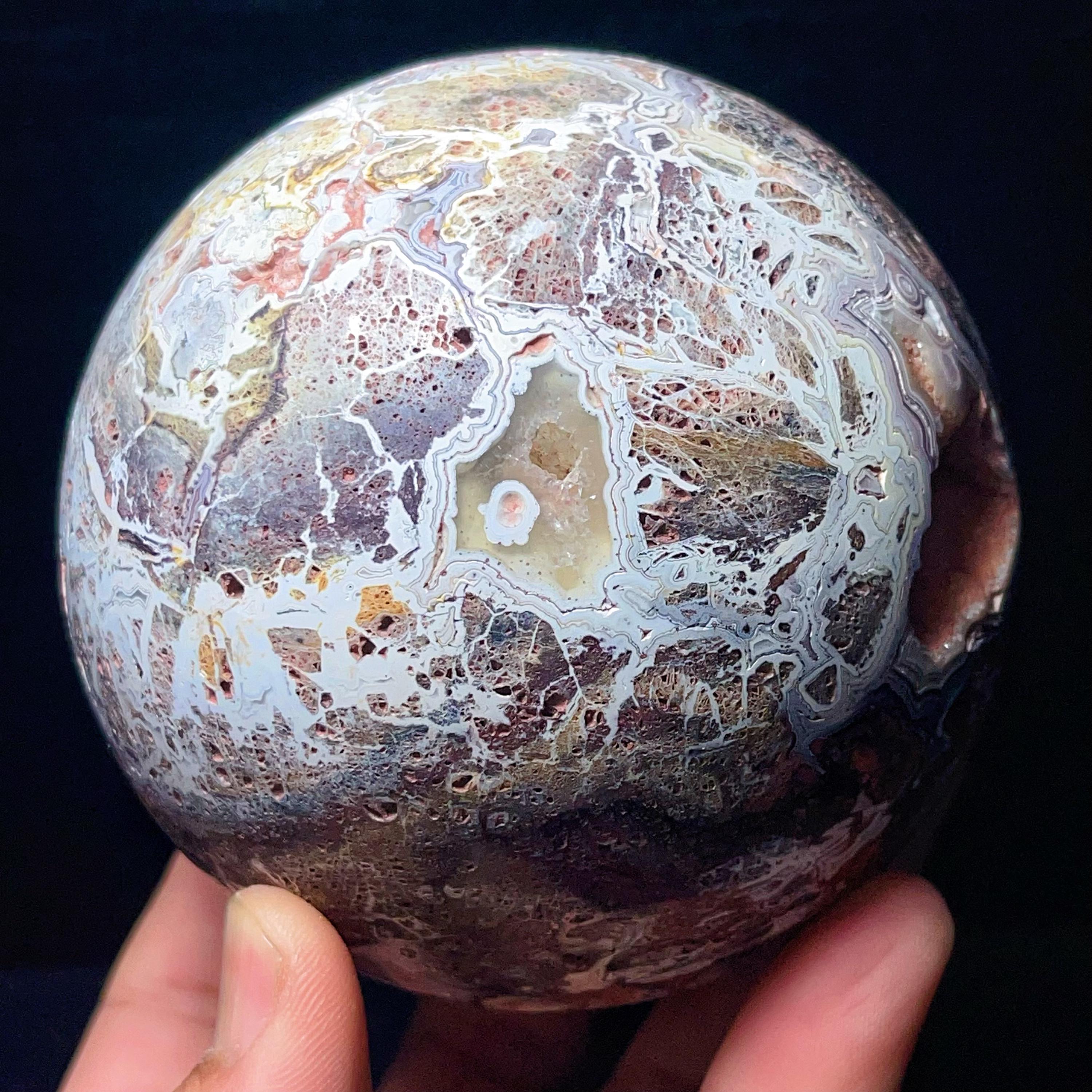 Natural Crazy Agate Sphere : Crazy Onyx Sardonyx Palm Stone L7805