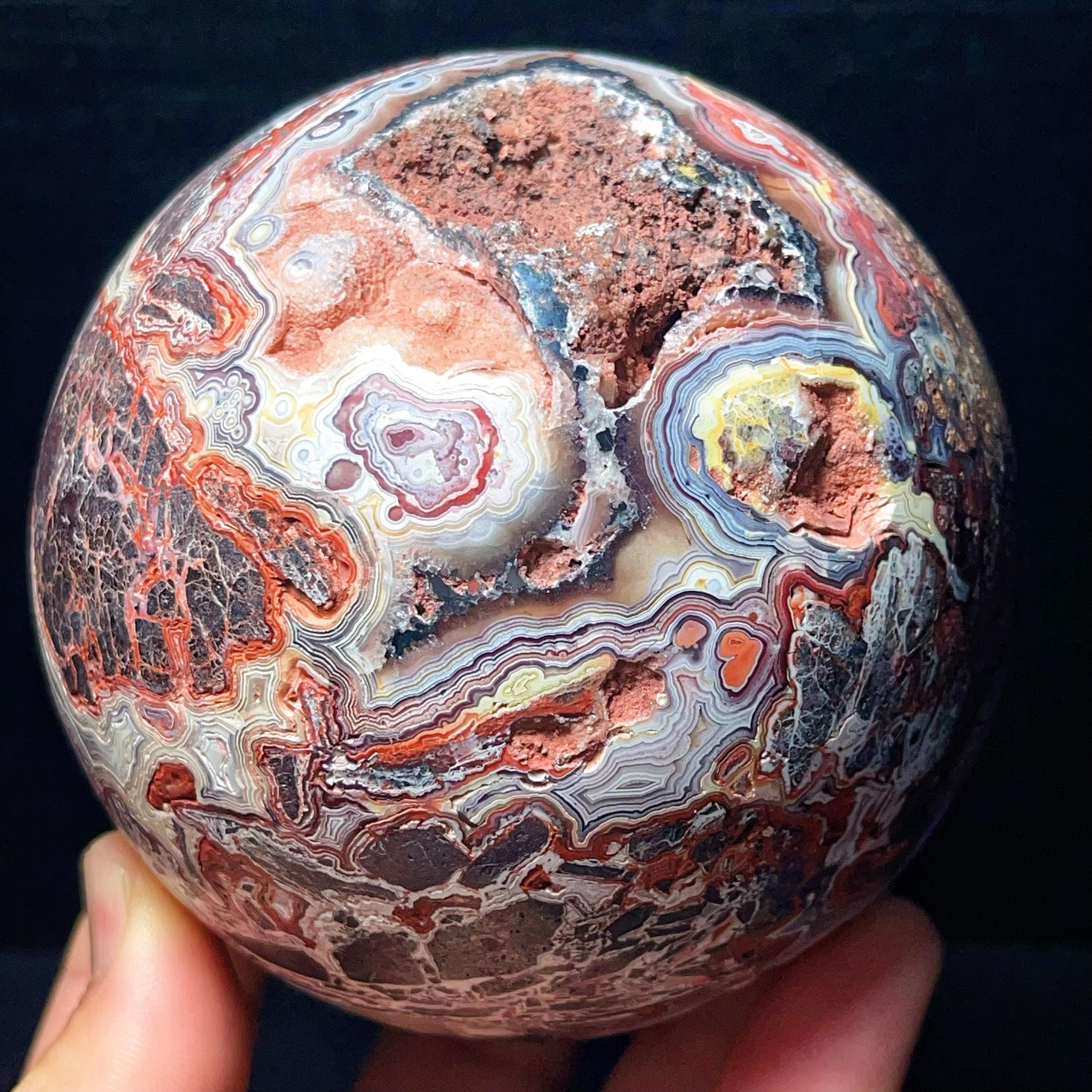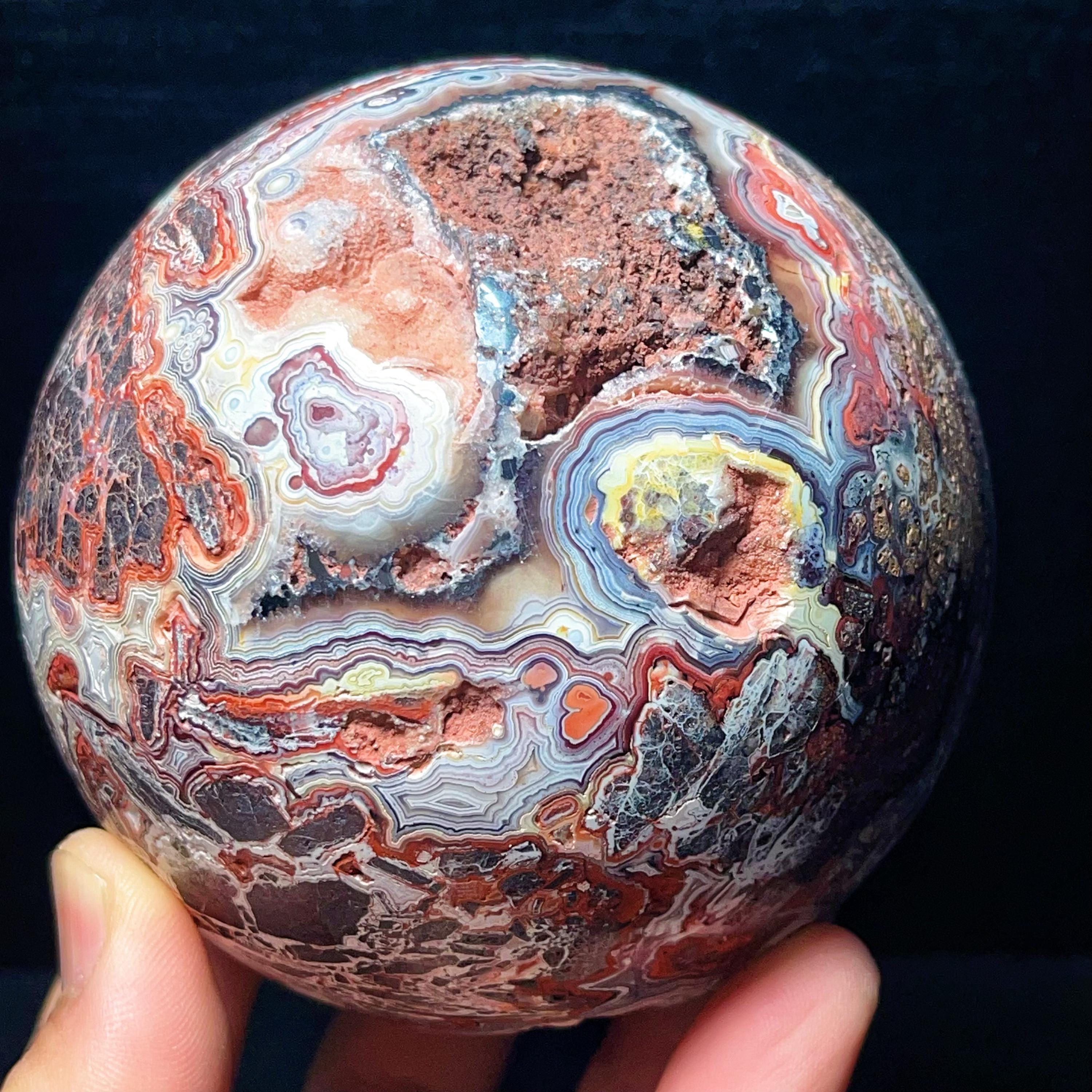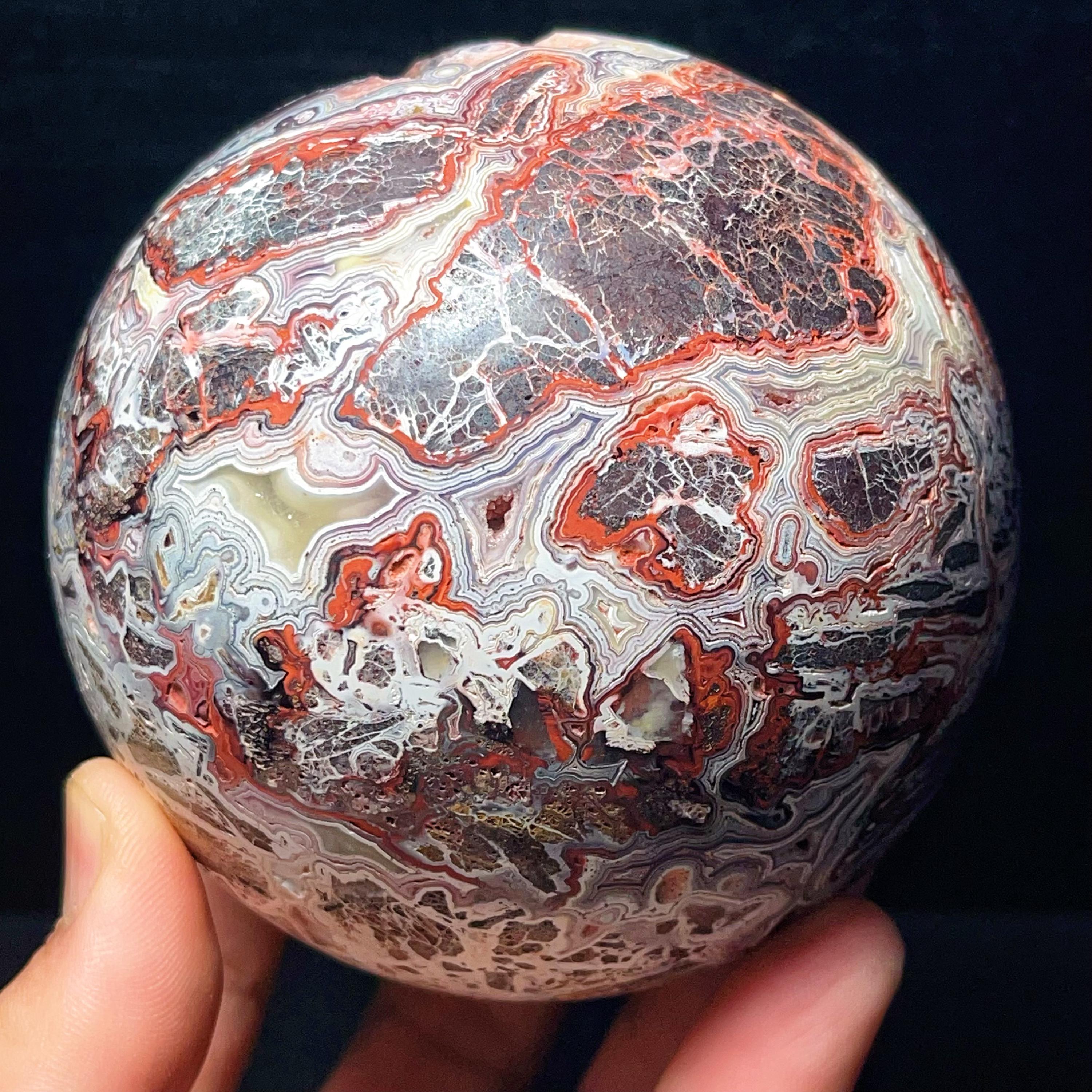 Natural Crazy Agate Sphere : Crazy Onyx Sardonyx Palm Stone L7805