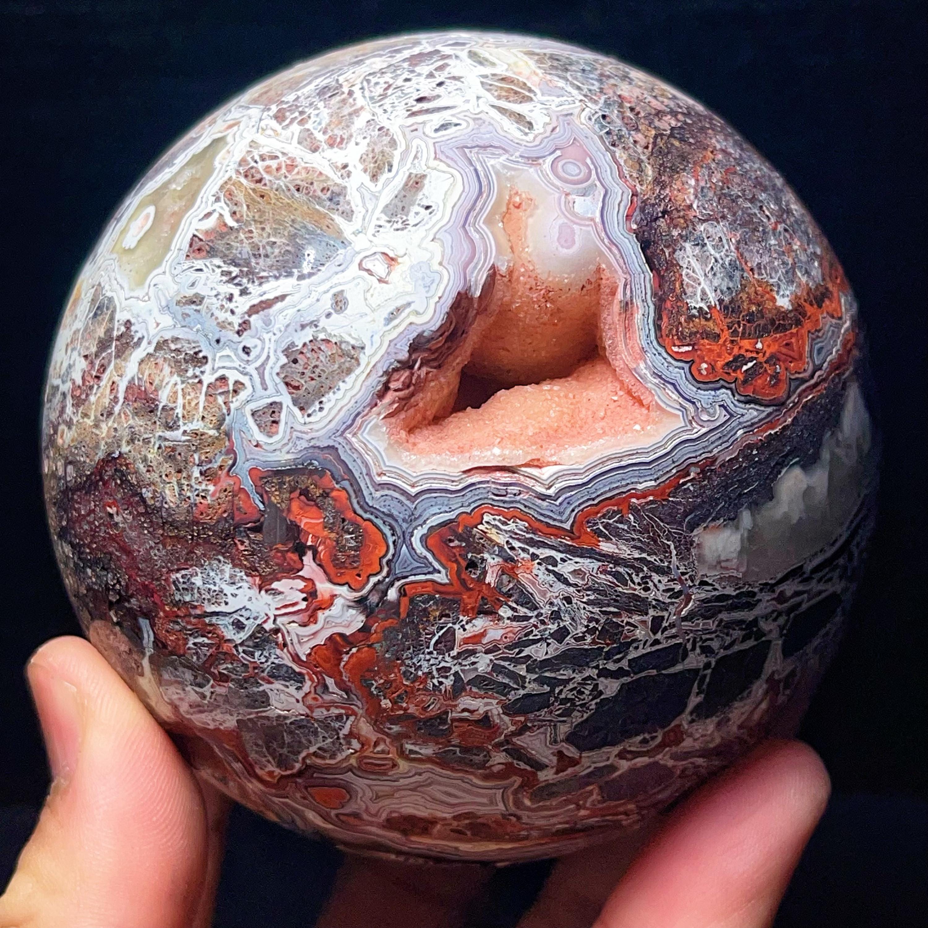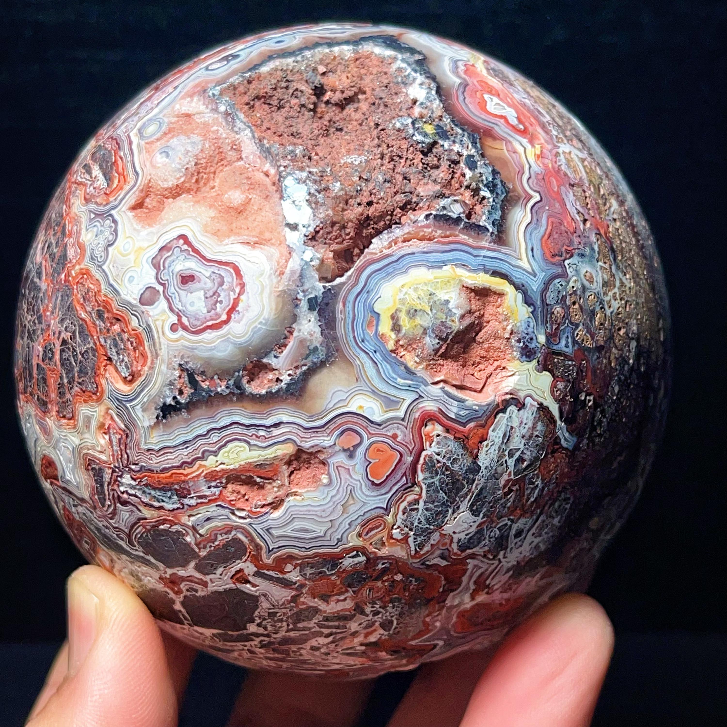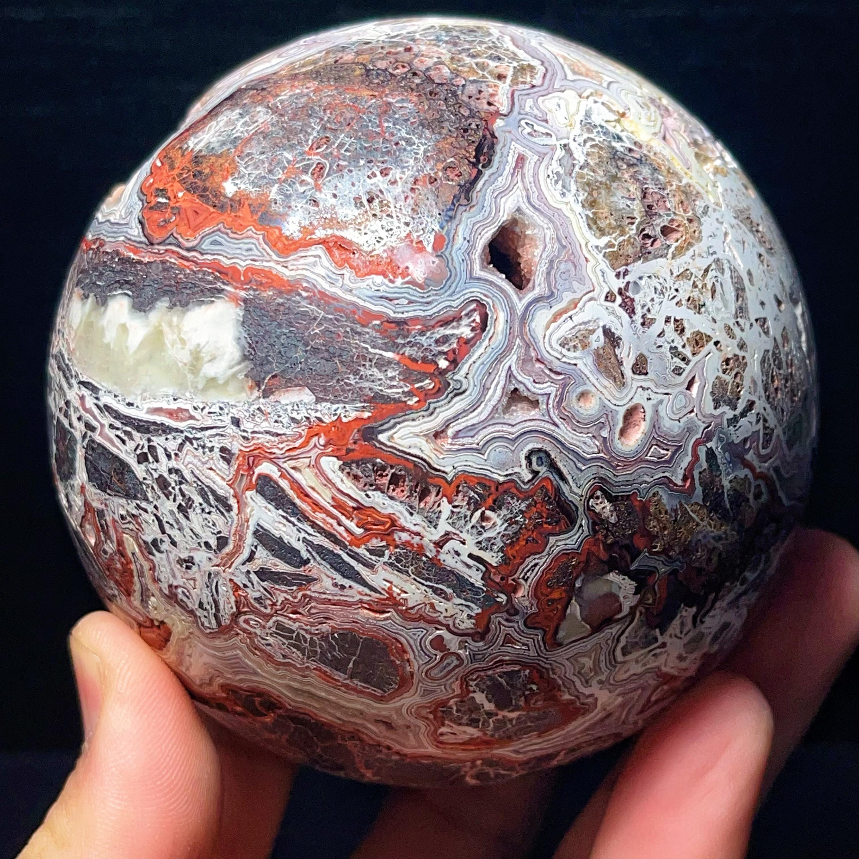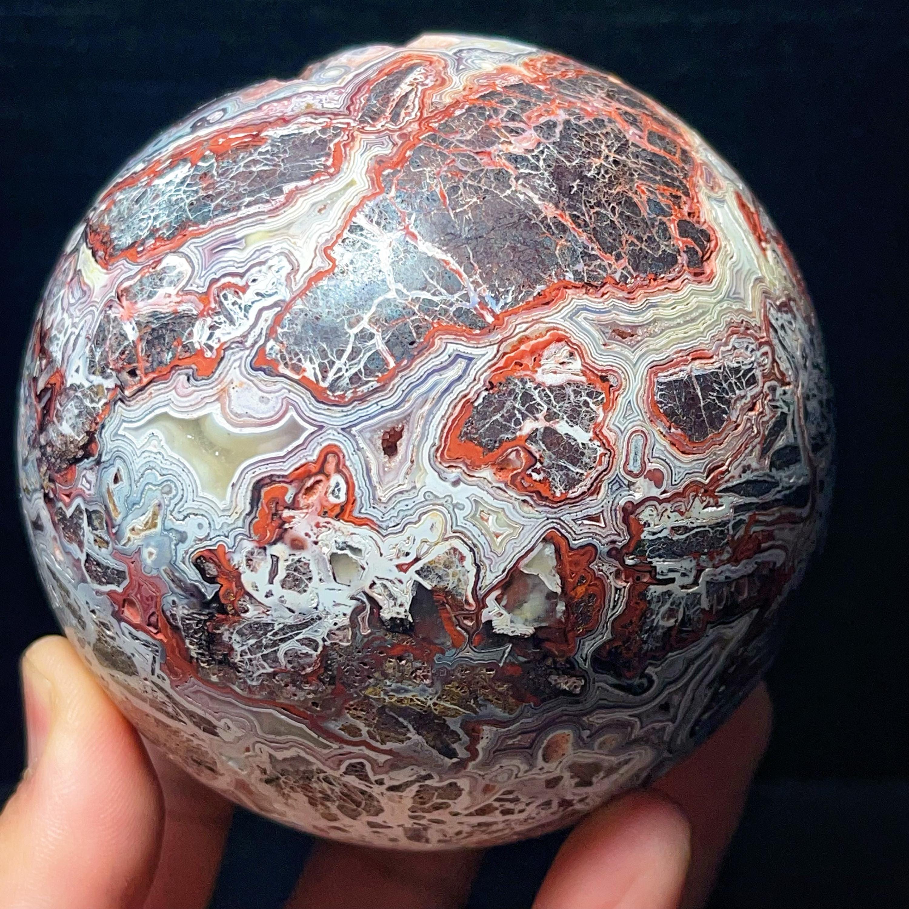 Natural Crazy Agate Sphere : Crazy Onyx Sardonyx Palm Stone L7805