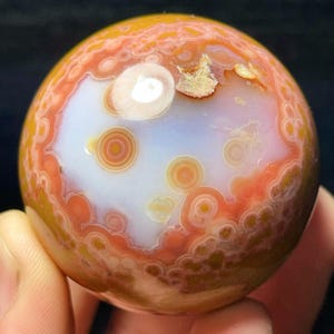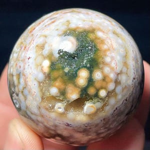 Natural Orbicular Ocean Jasper Sphere: Chakra Reiki Meditation Stone L7836