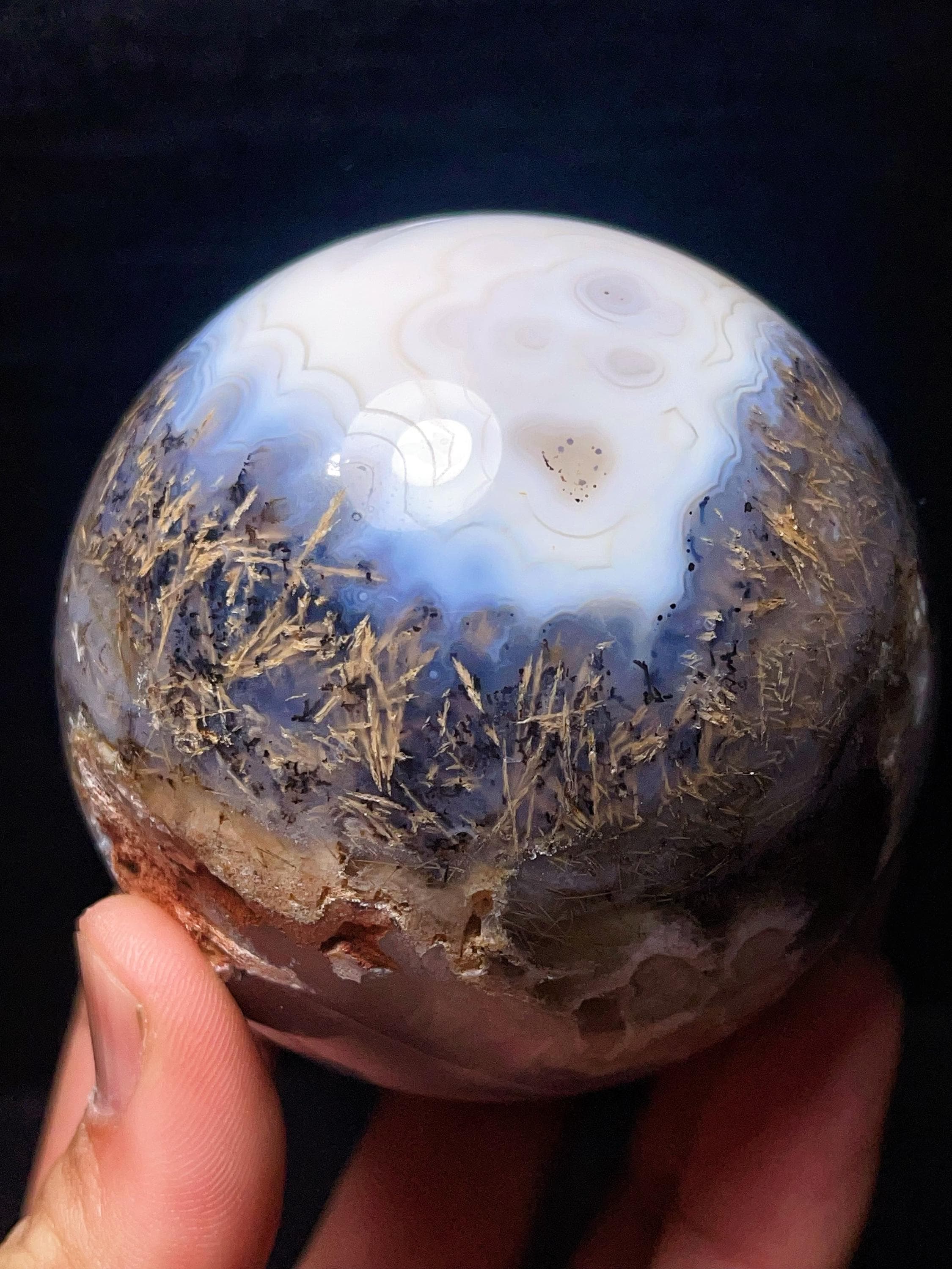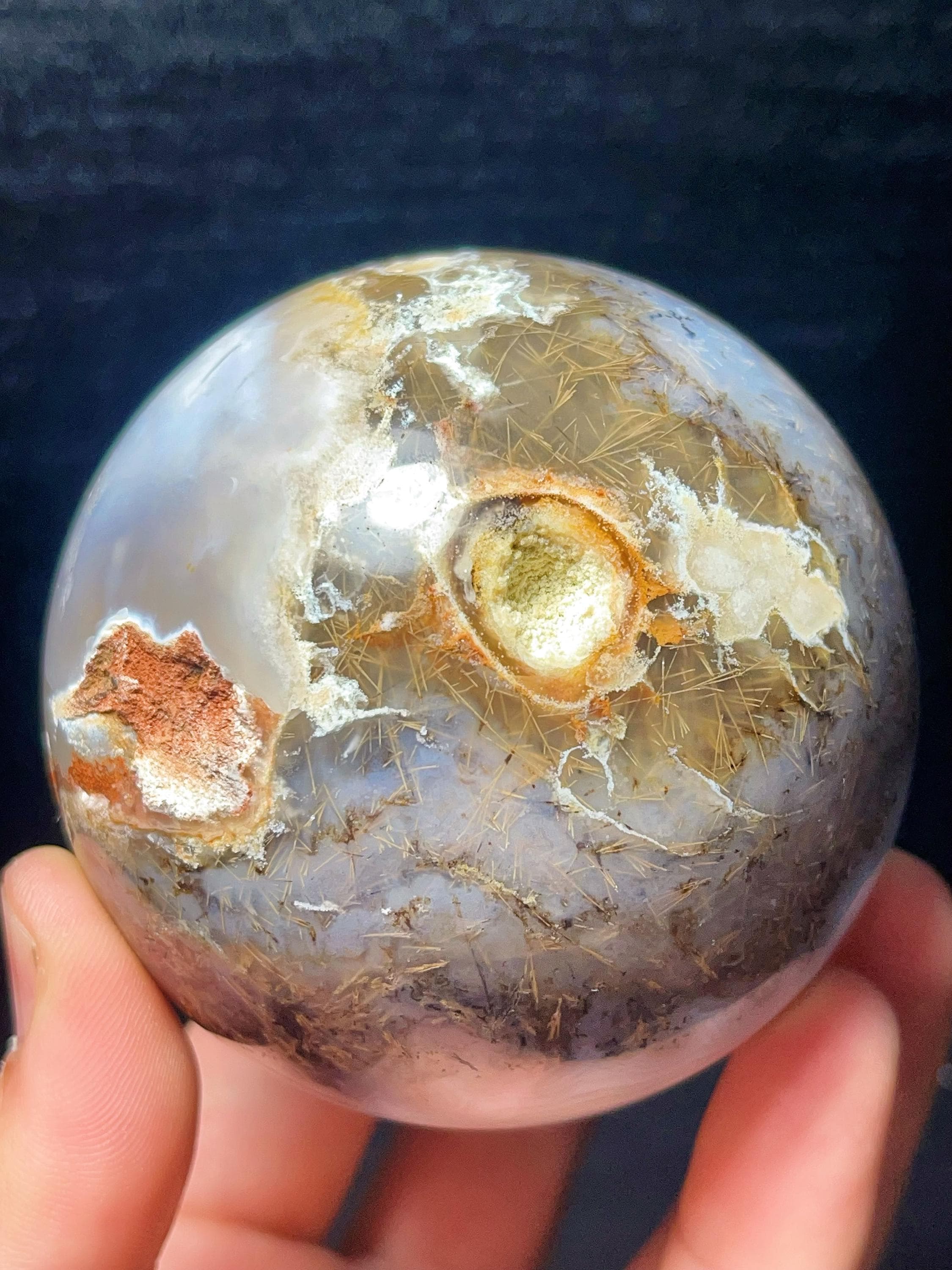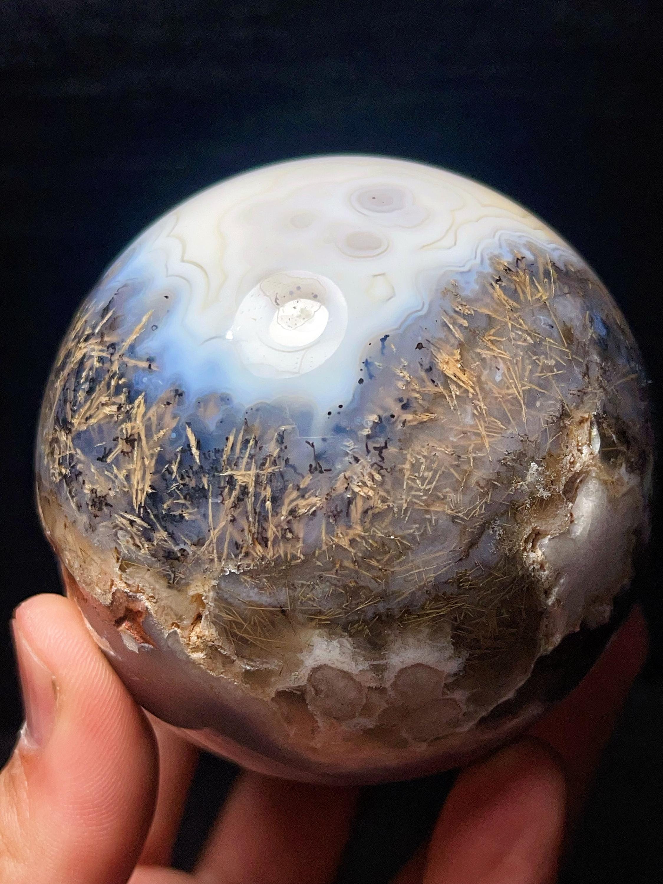 Natural Golden Rutilated Quartz Crystal Sphere: Healing Stone, Energy Gift L7928