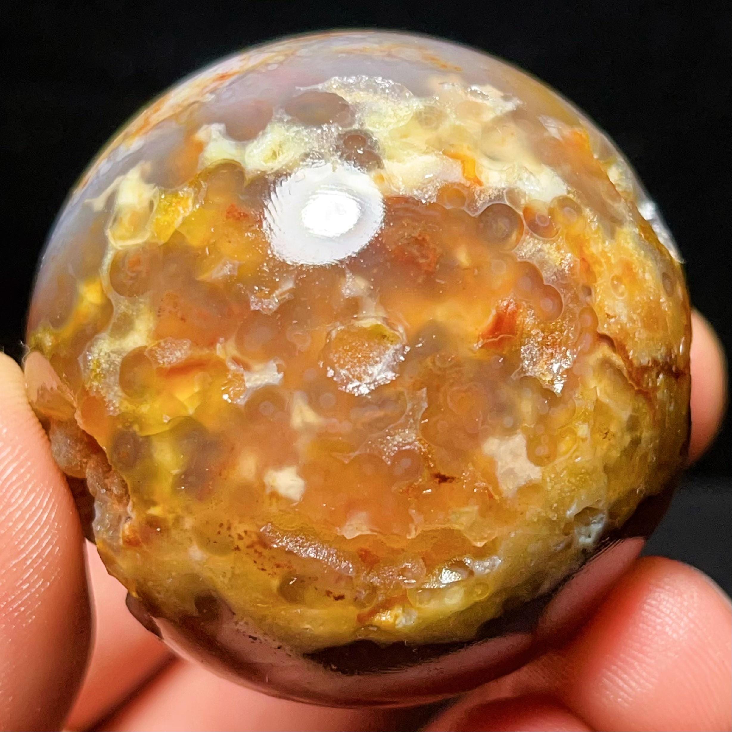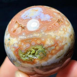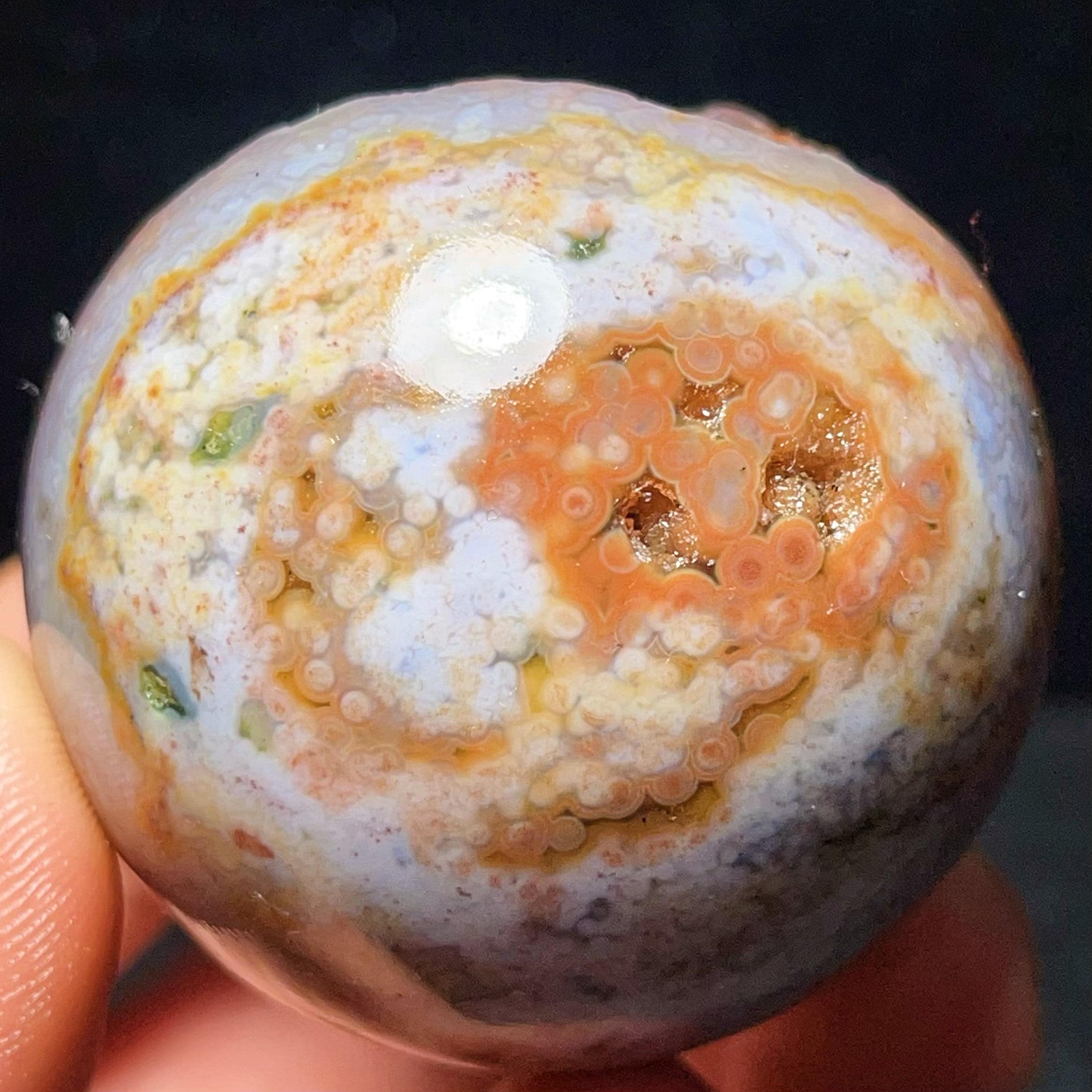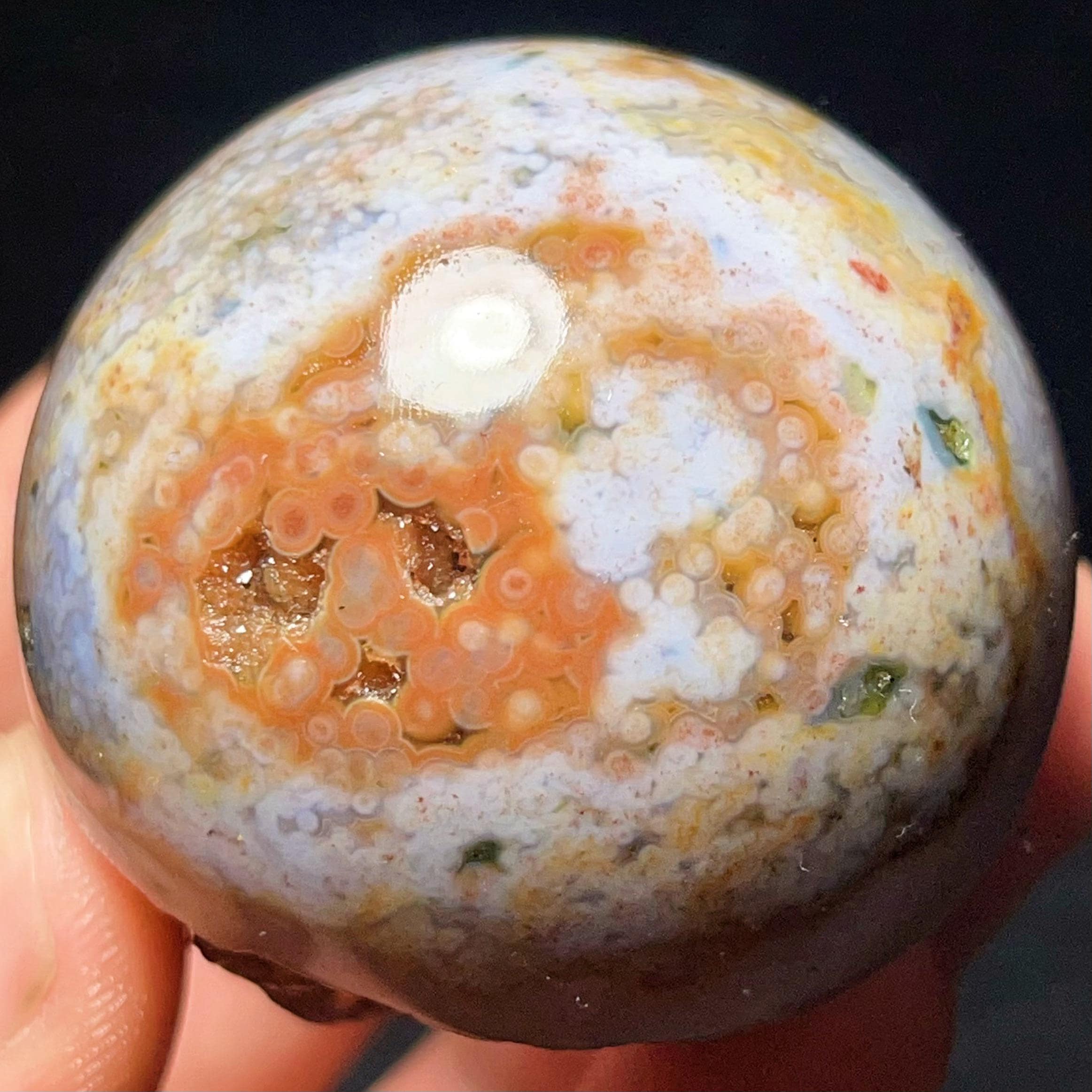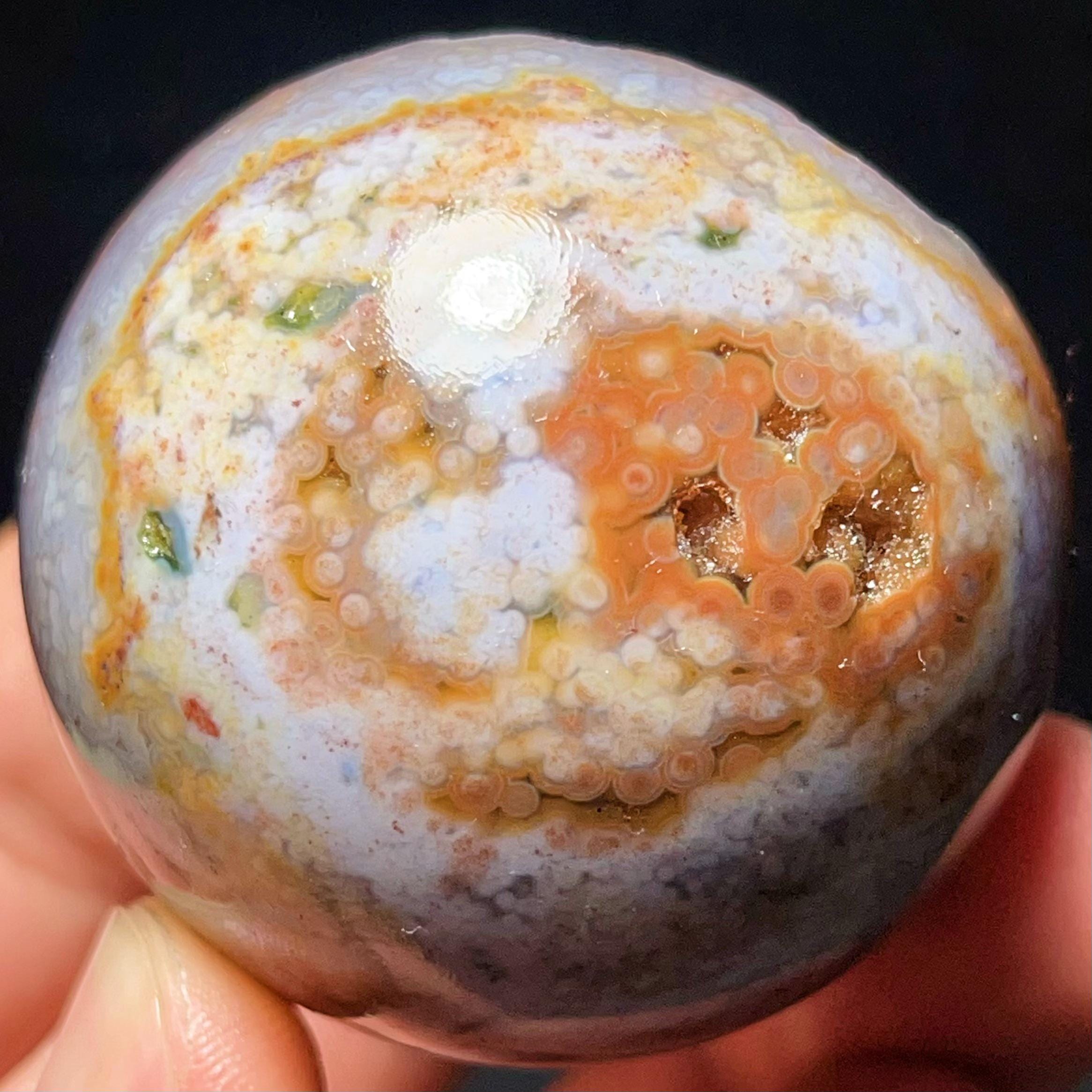 Natural Orbicular Ocean Jasper Sphere: Chakra Reiki Meditation Stone L7904